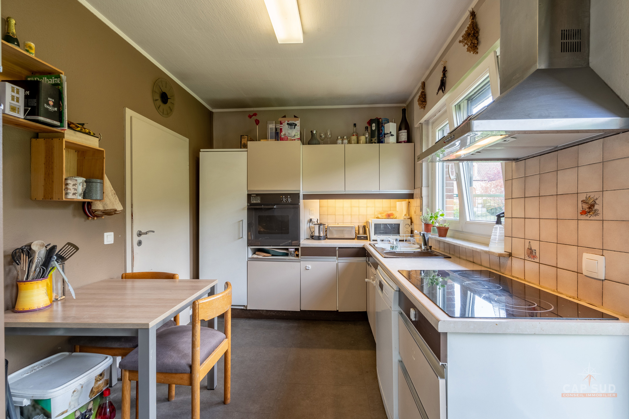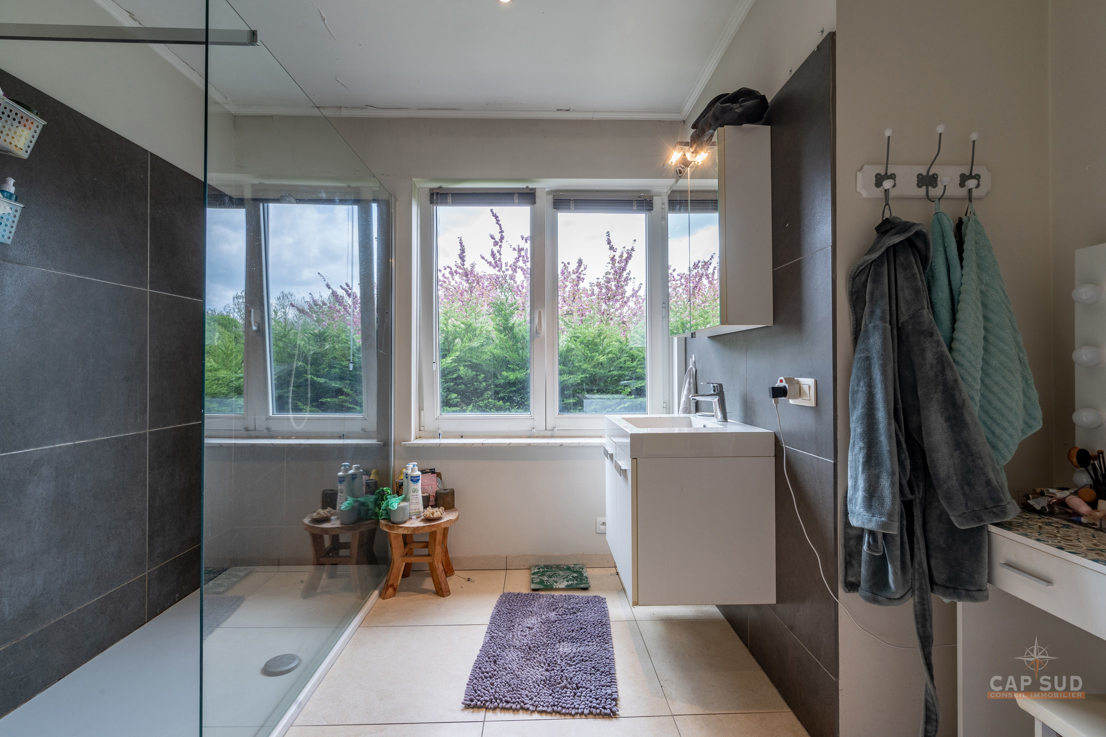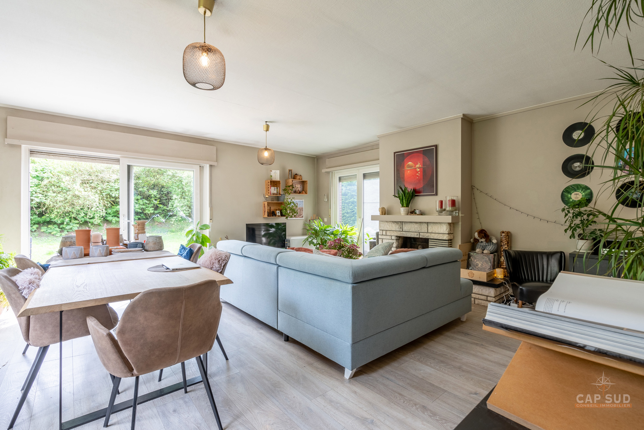 Waterloo – Chenois, dans un quartier résidentiel arboré et à proximité de toutes facilités (écoles, gare, commerces et grands axes), CAP SUD vous propose cette villa atypique de 140m2 à rafraichir sise sur un terrain de 8,03ares orienté Sud. Au rez, vous trouverez un vaste hall d’entrée (avec vestiaire et local WC) donnant sur un lumineux living de 38m2 avec FO et une cuisine équipée de 10m2. En descendant quelques marches, vous avez une grande chambre (ou bureau) de 16m2 et un garage de 23m2 avec porte automatique sécurisée. Au 1er, le hall de nuit dessert 2 belles chambres (de 10 et 13m2), une salle de douche (douche XL et lavabo) et une salle de bains (baignoire, lavabo et wc). Grenier de rangement non aménageable. Beau jardin arboré autour de la villa sans vis-à-vis et grande terrasse orientée Sud. Volets au rez, boiler 300l, PEB D : 322 kWh/m2.an, bi-horaire, chaudière Viessmann (2017), châssis PVC (2017), système d’alarme…PRIX: 448.000€ sauf offre supérieure…A découvrir rapidement !