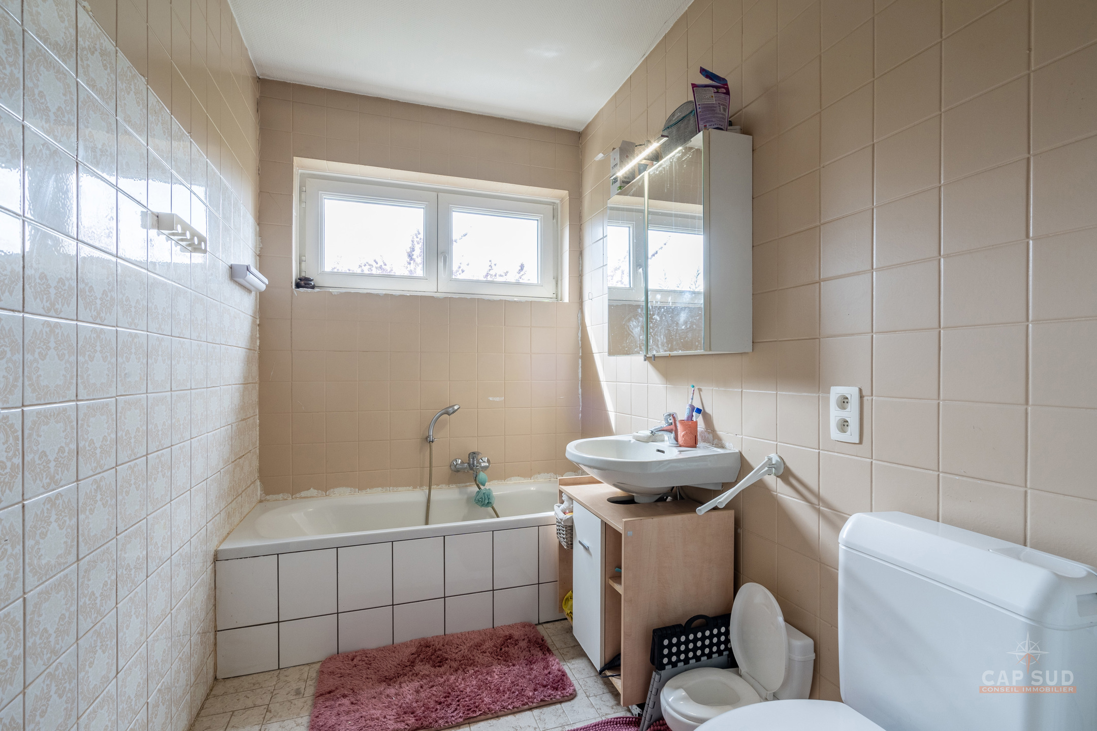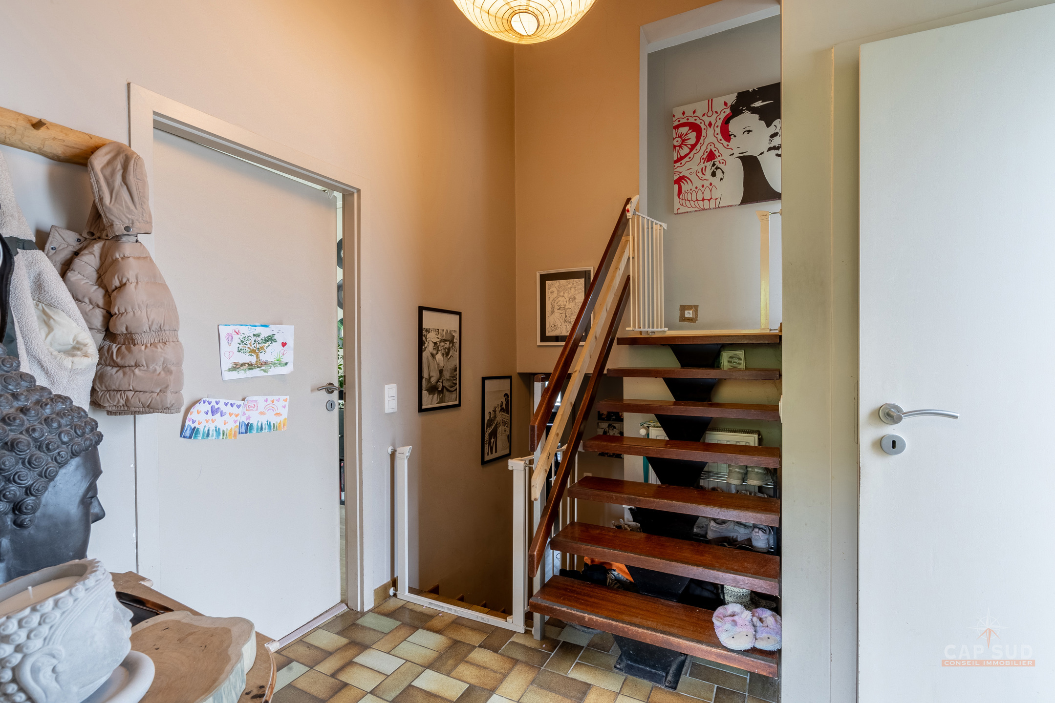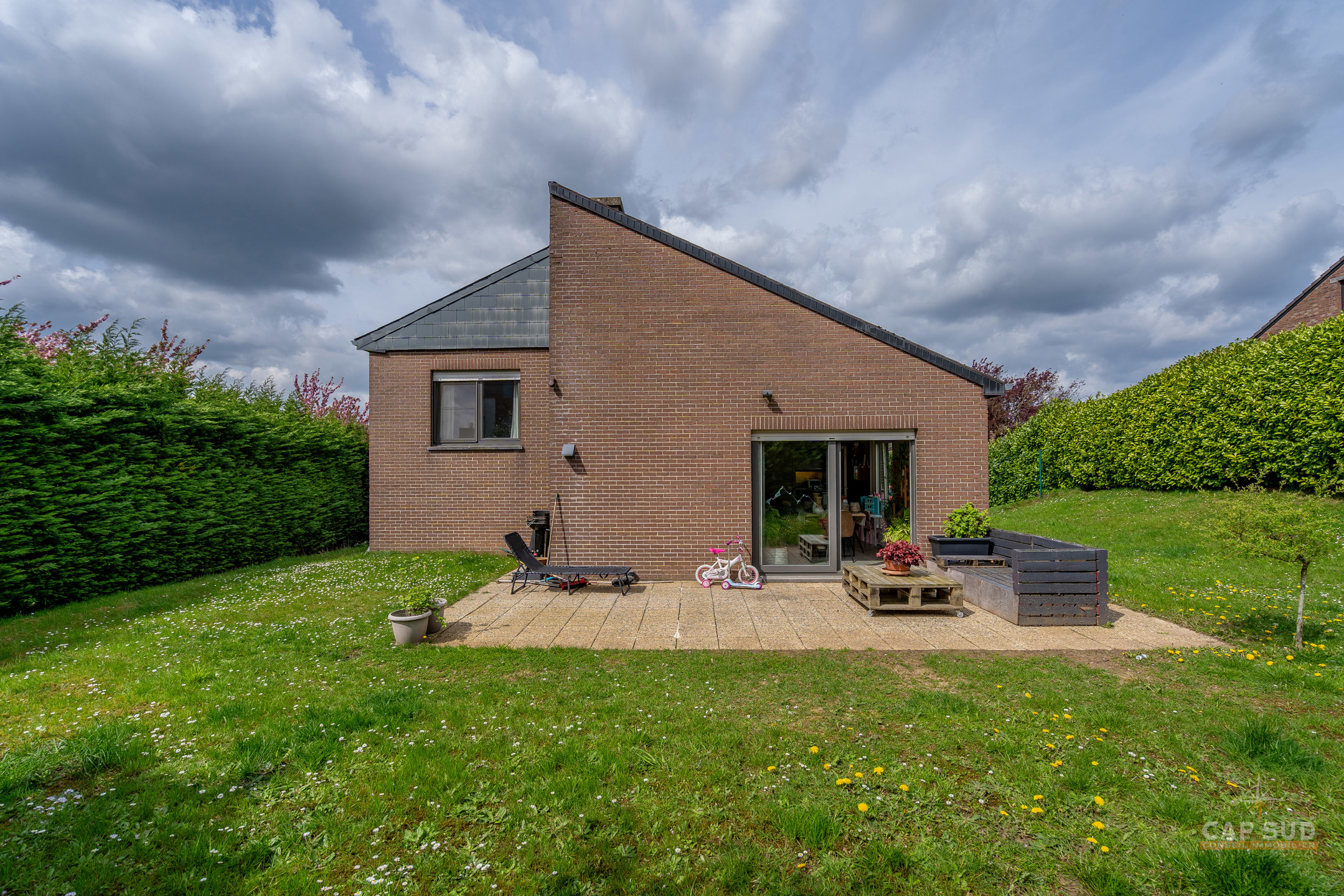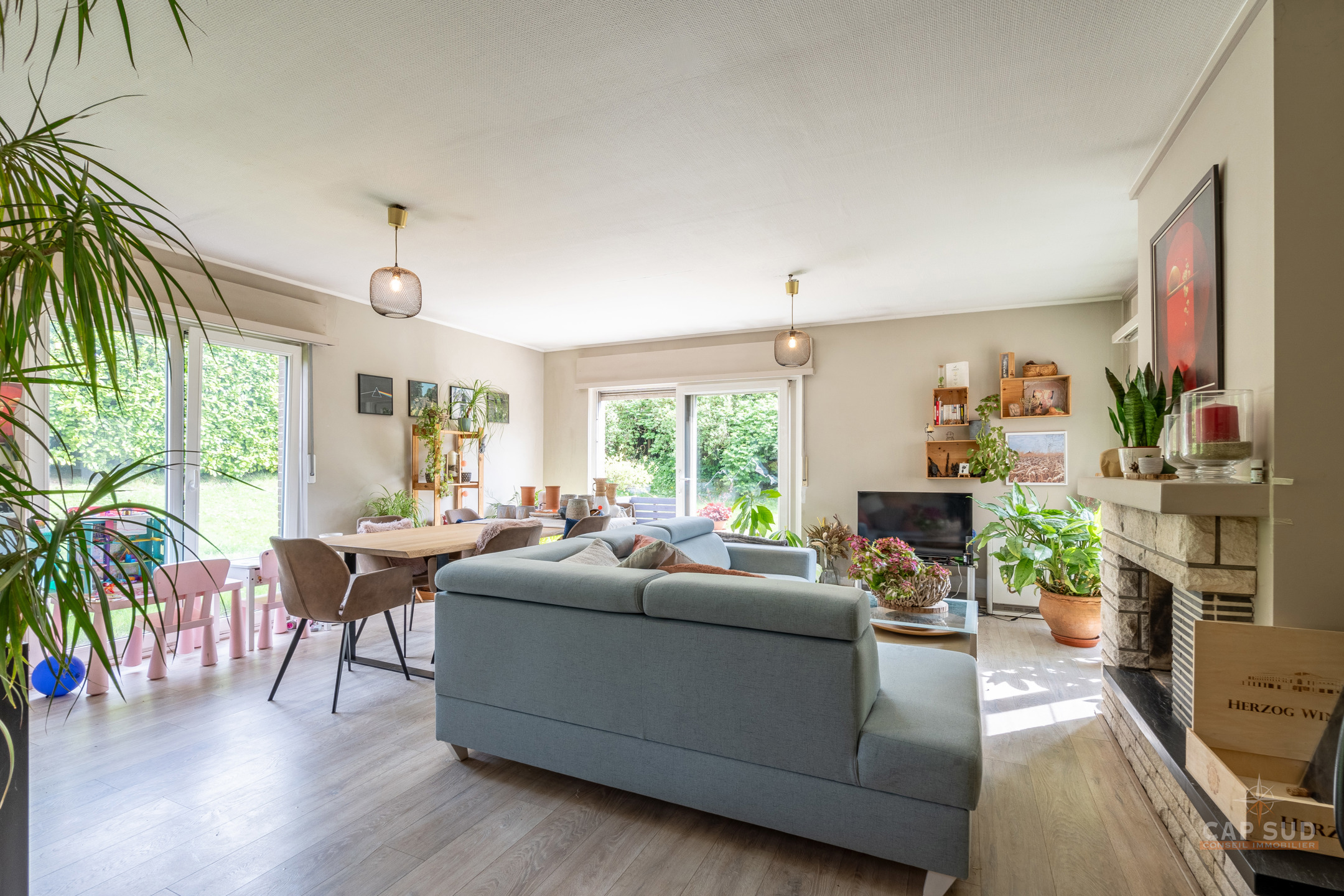 Waterloo – Chenois, dans un quartier résidentiel arboré et à proximité de toutes facilités (écoles, gare, commerces et grands axes), CAP SUD vous propose cette villa atypique de 140m2 à rafraichir sise sur un terrain de 8,03ares orienté Sud. Au rez, vous trouverez un vaste hall d’entrée (avec vestiaire et local WC) donnant sur un lumineux living de 38m2 avec FO et une cuisine équipée de 10m2. En descendant quelques marches, vous avez une grande chambre (ou bureau) de 16m2 et un garage de 23m2 avec porte automatique sécurisée. Au 1er, le hall de nuit dessert 2 belles chambres (de 10 et 13m2), une salle de douche (douche XL et lavabo) et une salle de bains (baignoire, lavabo et wc). Grenier de rangement non aménageable. Beau jardin arboré autour de la villa sans vis-à-vis et grande terrasse orientée Sud. Volets au rez, boiler 300l, PEB D : 322 kWh/m2.an, bi-horaire, chaudière Viessmann (2017), châssis PVC (2017), système d’alarme…PRIX: 448.000€ sauf offre supérieure…A découvrir rapidement !