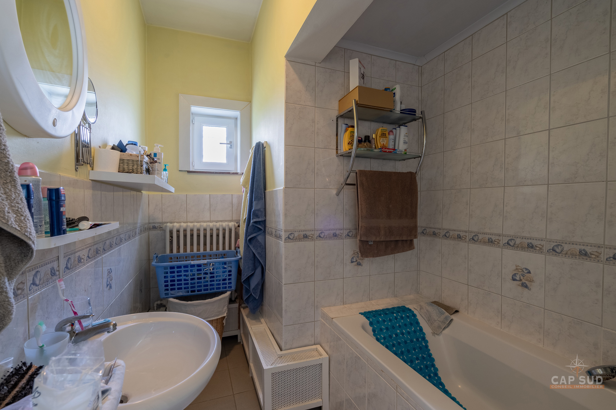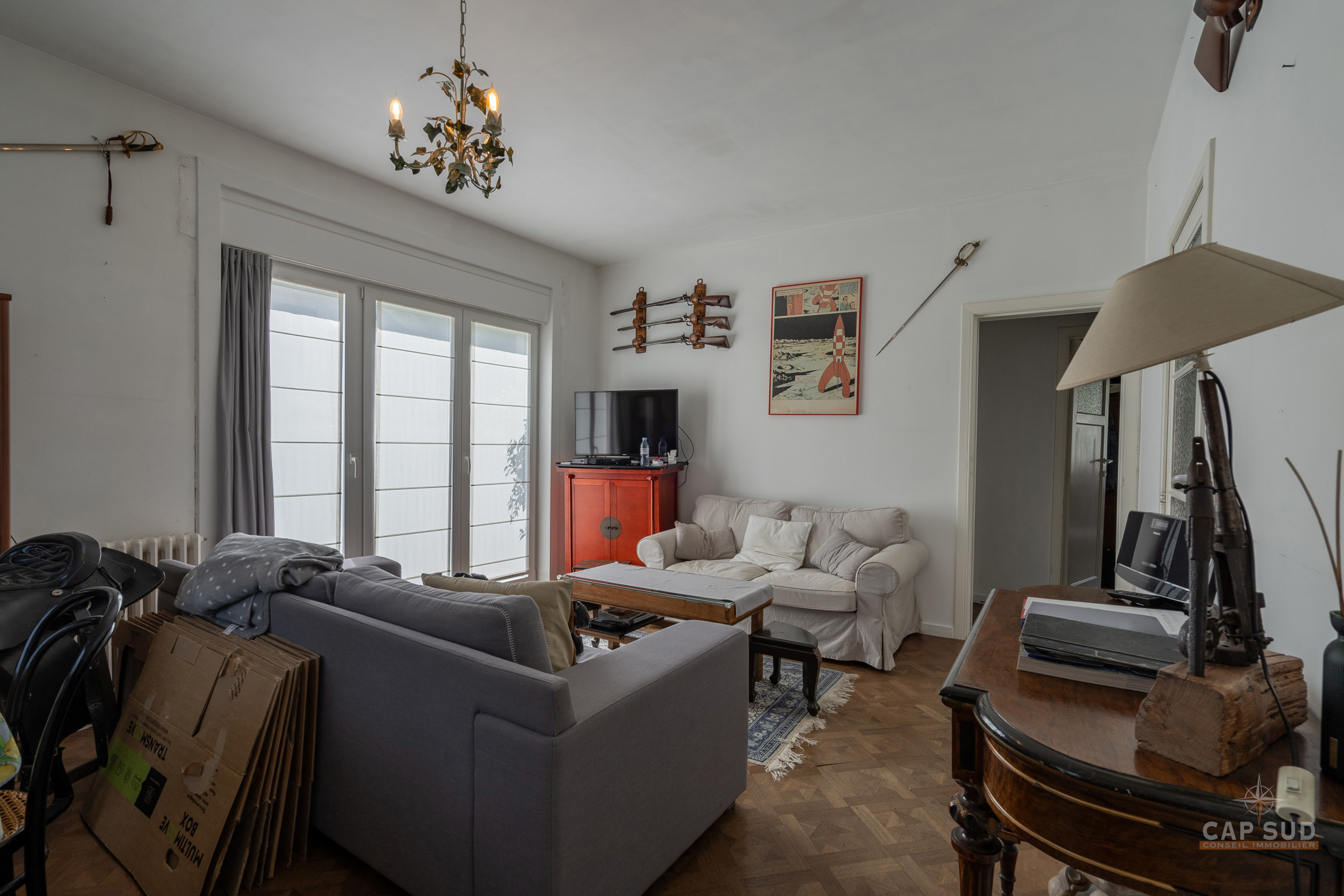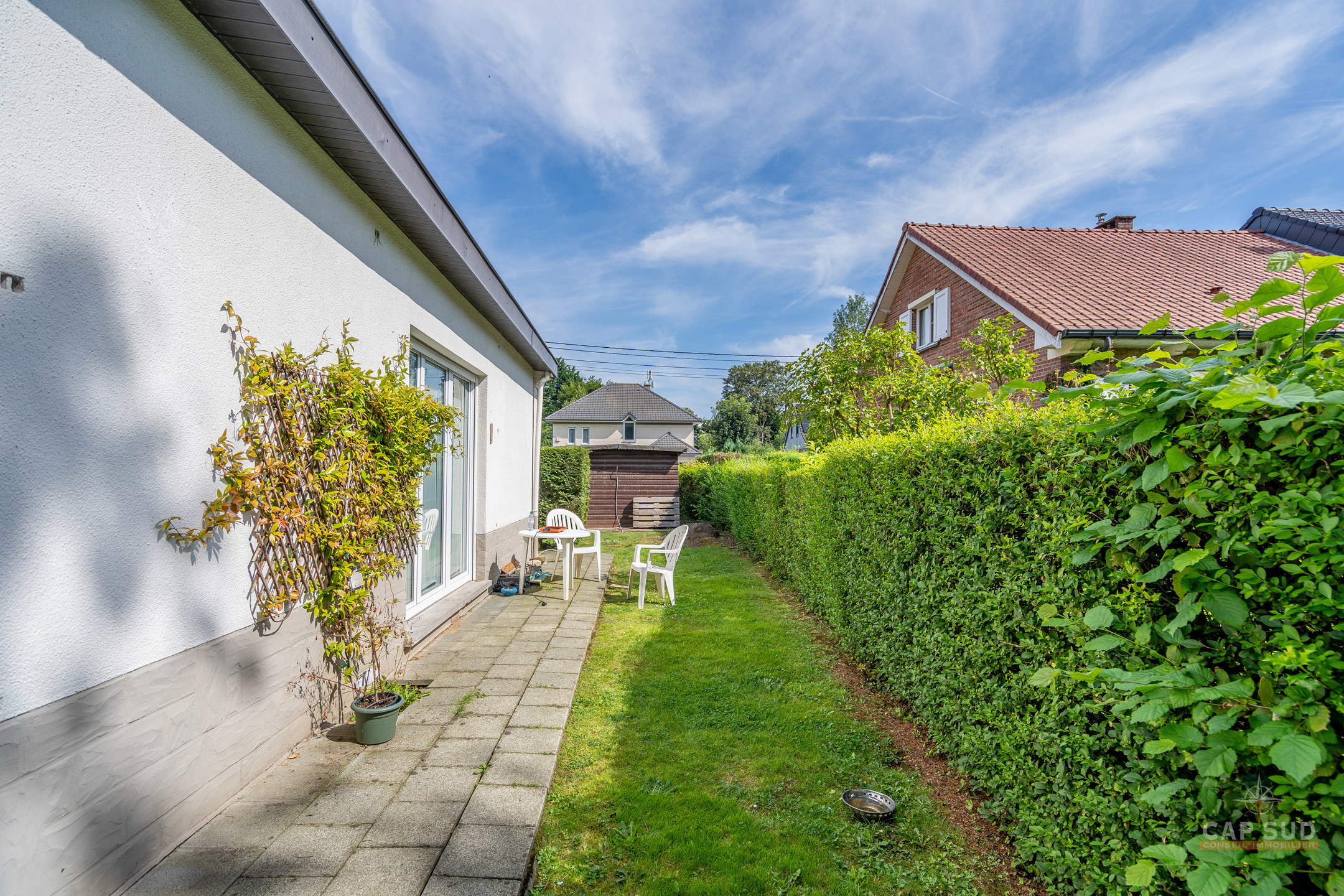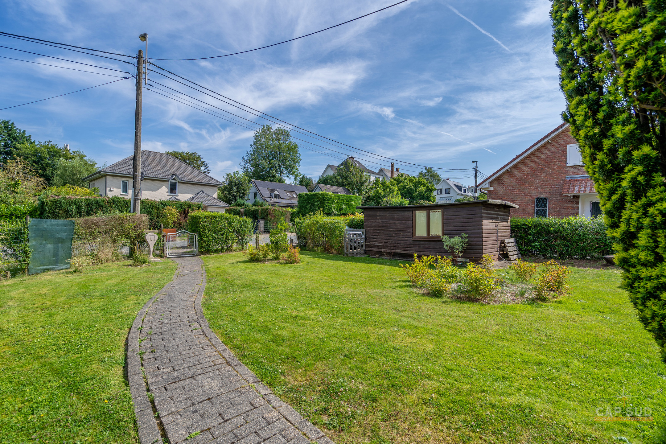 Waterloo – Faubourg, dans un quartier calme et aéré, à proximité de toutes facilités, jolie petite villa de +-155m2 rénovée en 2016 sise sur un terrain de 8ares orienté Sud. Habitable de plain-pied, vous trouverez au rez-de-chaussée, un hall d’entrée avec un local WC, un lumineux living de +-24m2 avec possibilité de feu ouvert, une cuisine de +-10m2, 2 chambres de +-11m2 et une salle de bains de +-5m2 (comprenant une baignoire et lavabo). A l’étage, il y a la possibilité d’aménager 1 (ou 2) chambre(s) supplémentaire(s) avec une salle d’eau (actuellement grenier de +-56m2). Au sous-sol, une buanderie et une cave de rangement pour un total de +-20m2 viendront compléter ce bien. Garage 1voiture, chalet de jardin, chaudière au gaz Vaillant 2016, châssis PVC 1989 et 2023, volets, boiler 2016…Sympathique jardin joliment arboré sans vis-à-vis ! A découvrir rapidement…