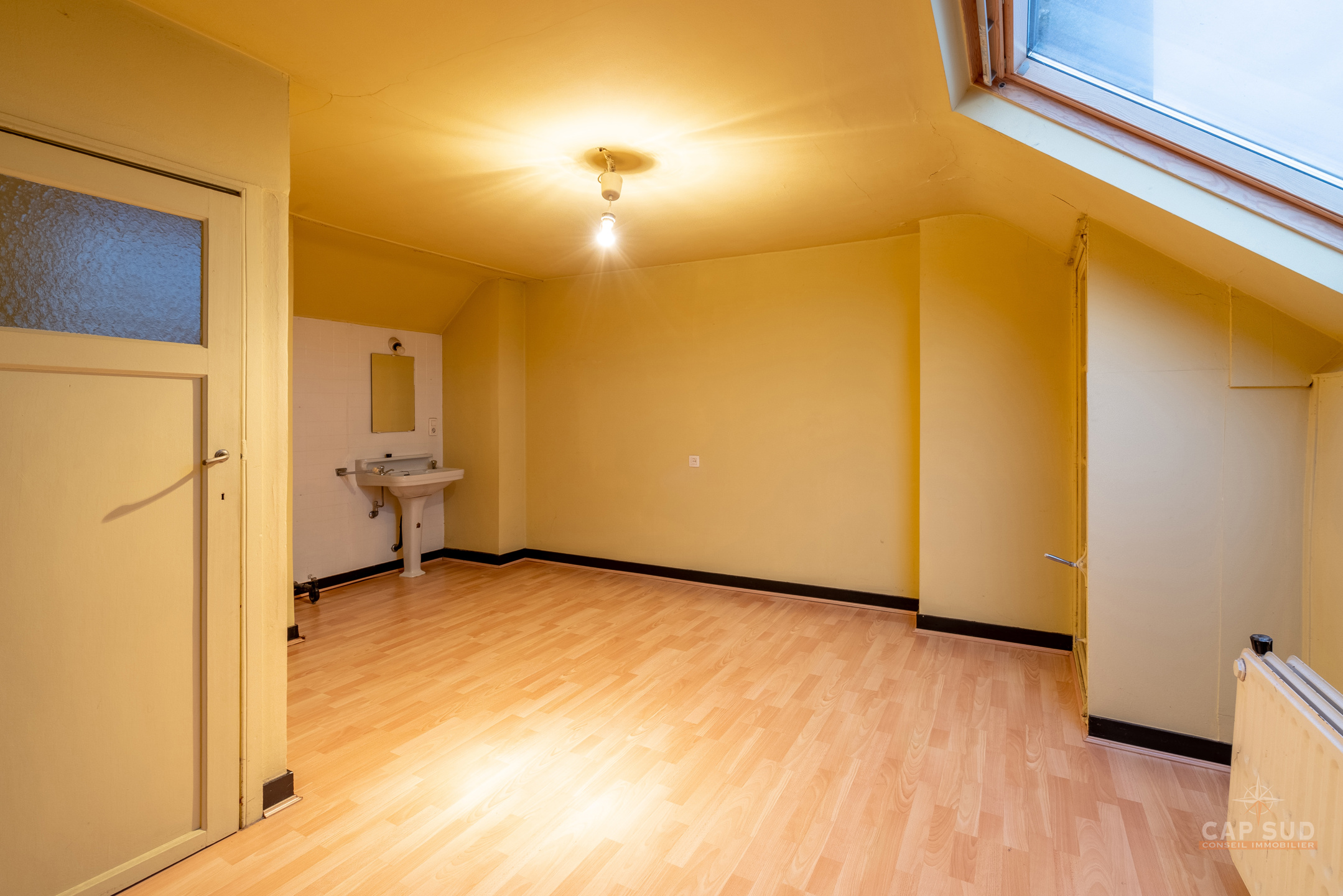 SOUS OPTION, Merci à la propriétaire pour sa confiance ! Waterloo, à 50 mètres de l’église du centre de Waterloo, des galeries commerçantes, des transports et (in fine) de la gare également, CAP SUD vous propose cette sympathique petite maison A RENOVER de 162m2 sise sur 3ares. Au rez, vous trouverez le hall qui donne sur un lumineux living de 25m2, une cuisine équipée, une véranda de 17m2 avec son local WC. Au 1er, le hall dessert 2 belles chambres de 12 et 20m2 et une salle de bains au palier. Au 2ème, une grande chambre de 25m2 et un mini grenier de rangement. Au sous-sol, la maison est entièrement sous caves. Beau jardin calme orienté Nord mais toujours ensoleillé ! Parking extérieur 1voiture, châssis récents PVC 2010 avec volet au rez, chaudière au gaz Vaillant 2017. SITUATION EXCEPTIONNELLE, INVESTISSEMENT IDEAL ! A découvrir rapidement…