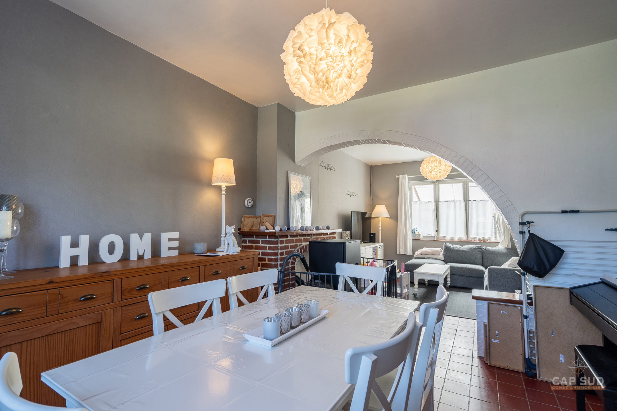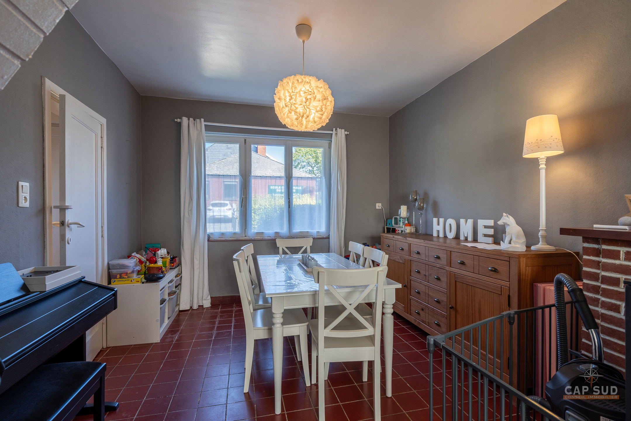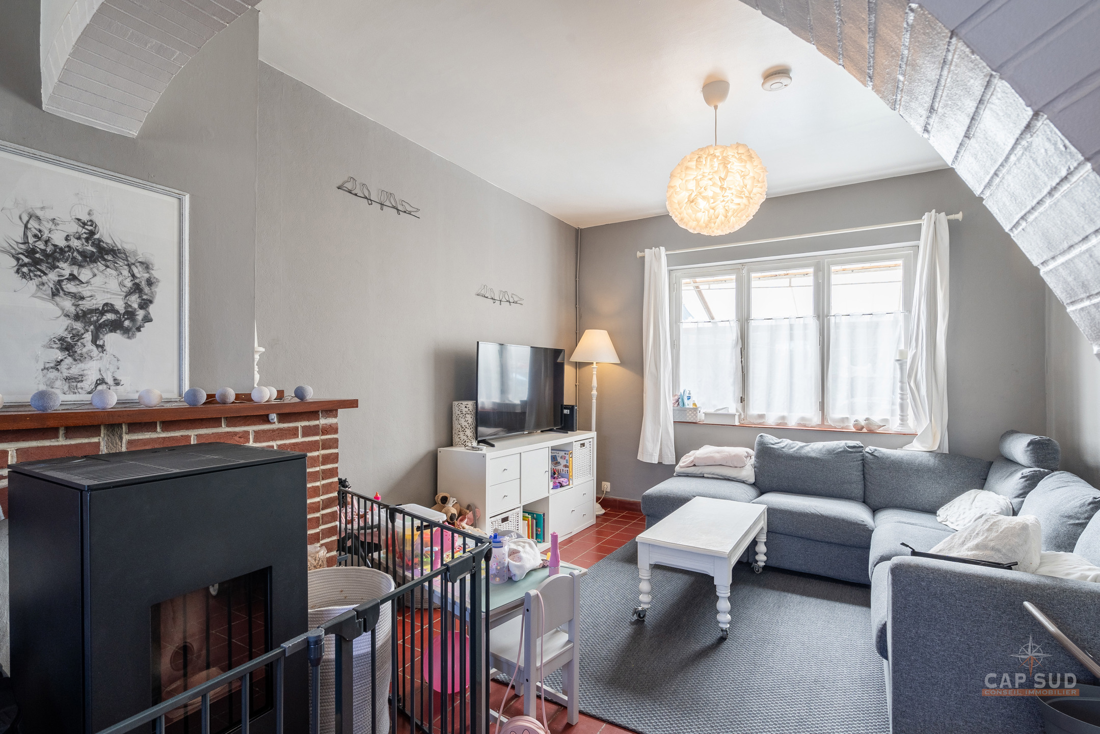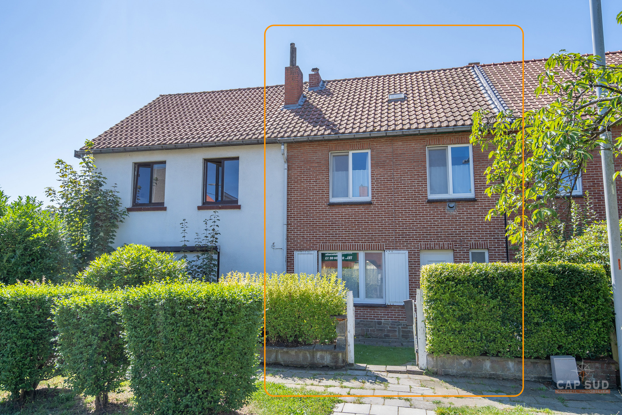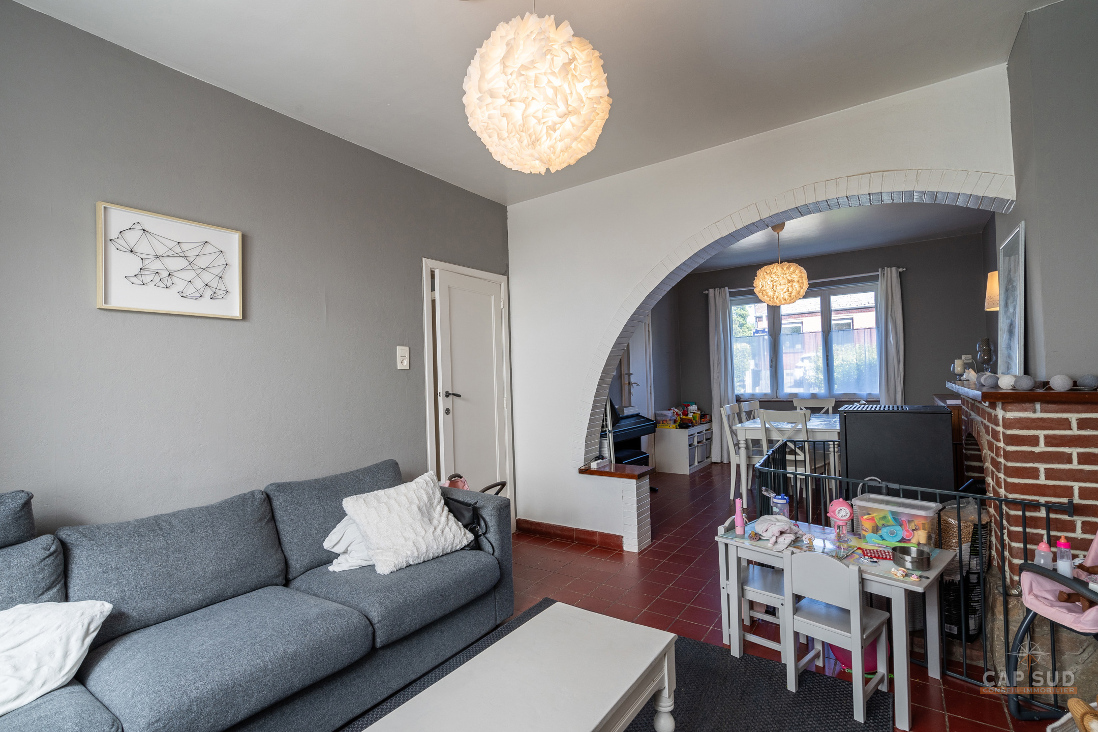 Waterloo – A proximité immédiate de l’école communale du Chenois, de la gare et des commerces de proximité, CAP SUD vous présente cette jolie petite maison de 135m2 A RENOVER sise sur un terrain de 1,80ares (en cous de bornage) orienté Sud-Ouest. Au rez, vous trouverez un hall d’entrée avec local WC, un living de 25m2 avec un poêle à pellet, une cuisine non équipée de 7m2 et une verrière de 13m2 donnant sur le jardin. Au 1er étage, le hall de nuit dessert 2 chambres de 12 et 13m2, un bureau de 6m2 et une salle de douche. Il y a également un grenier aménageable de 32m2. Au sous-sol, vous trouverez également une petite cave de rangement. Toiture non isolée, châssis PVC double vitrage 2010, absence de chauffage central mais maison reliée au gaz, mono-horaire, PEB F : 442 kWh/m2.an. Possibilité d’acquérir un garage sur un terrain de 2,5ares (à +-5mètres de la maison). A SAVOIR : la maison voisine (gauche) est également à vendre ! N’hésitez pas à nous contacter pour plus de renseignements au 02/387.42.42.