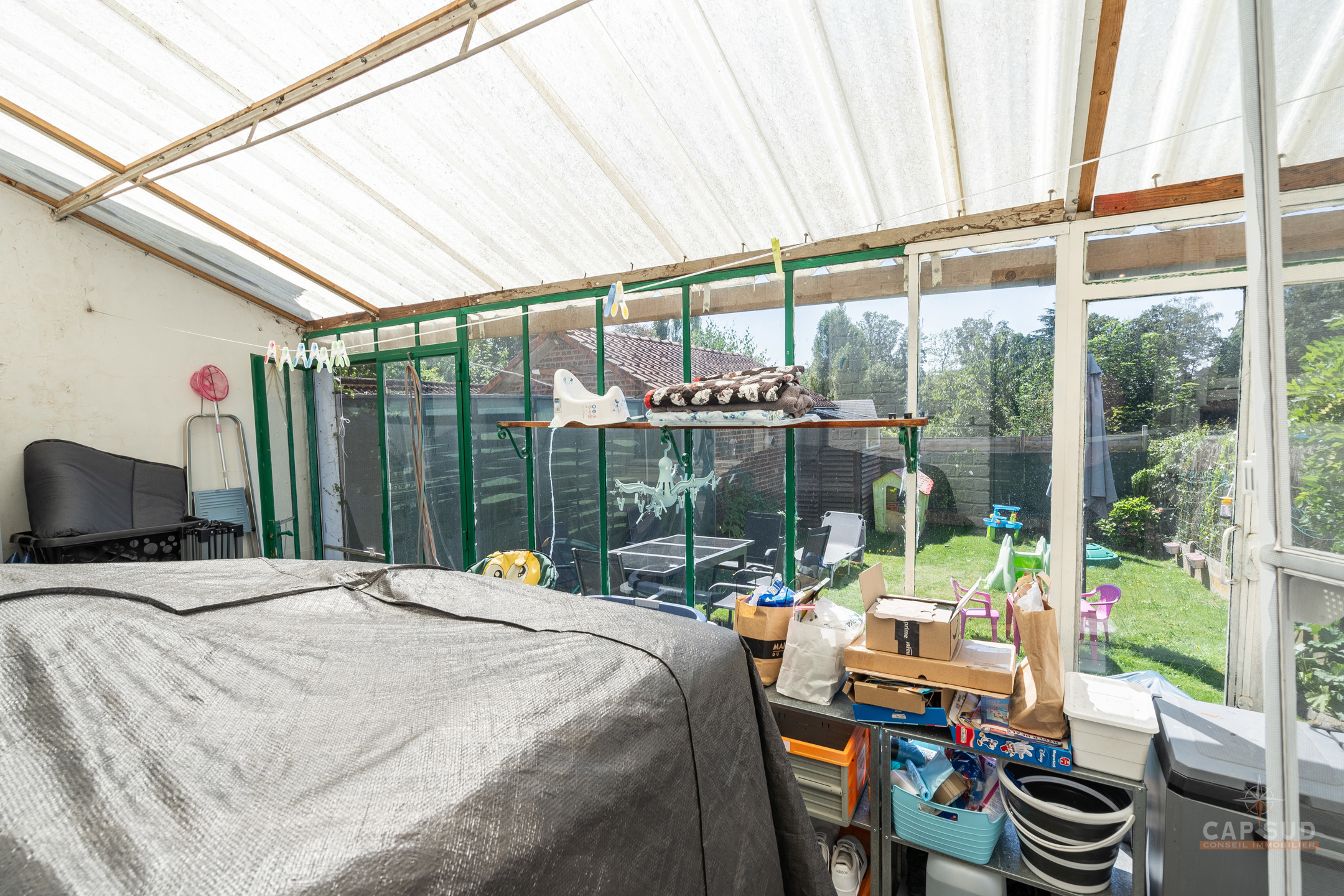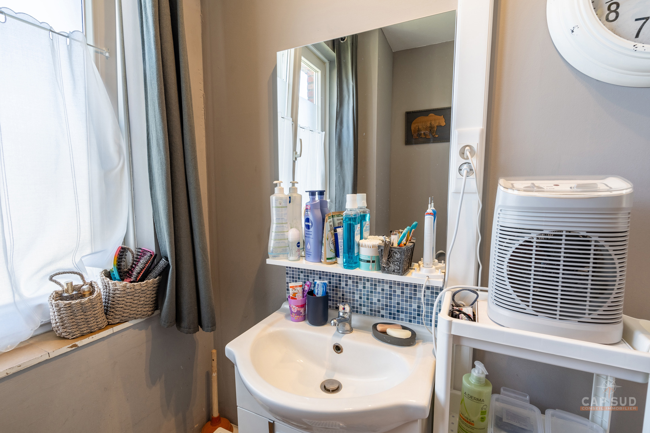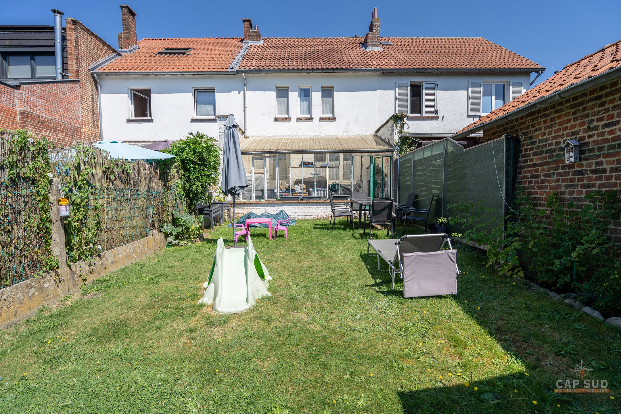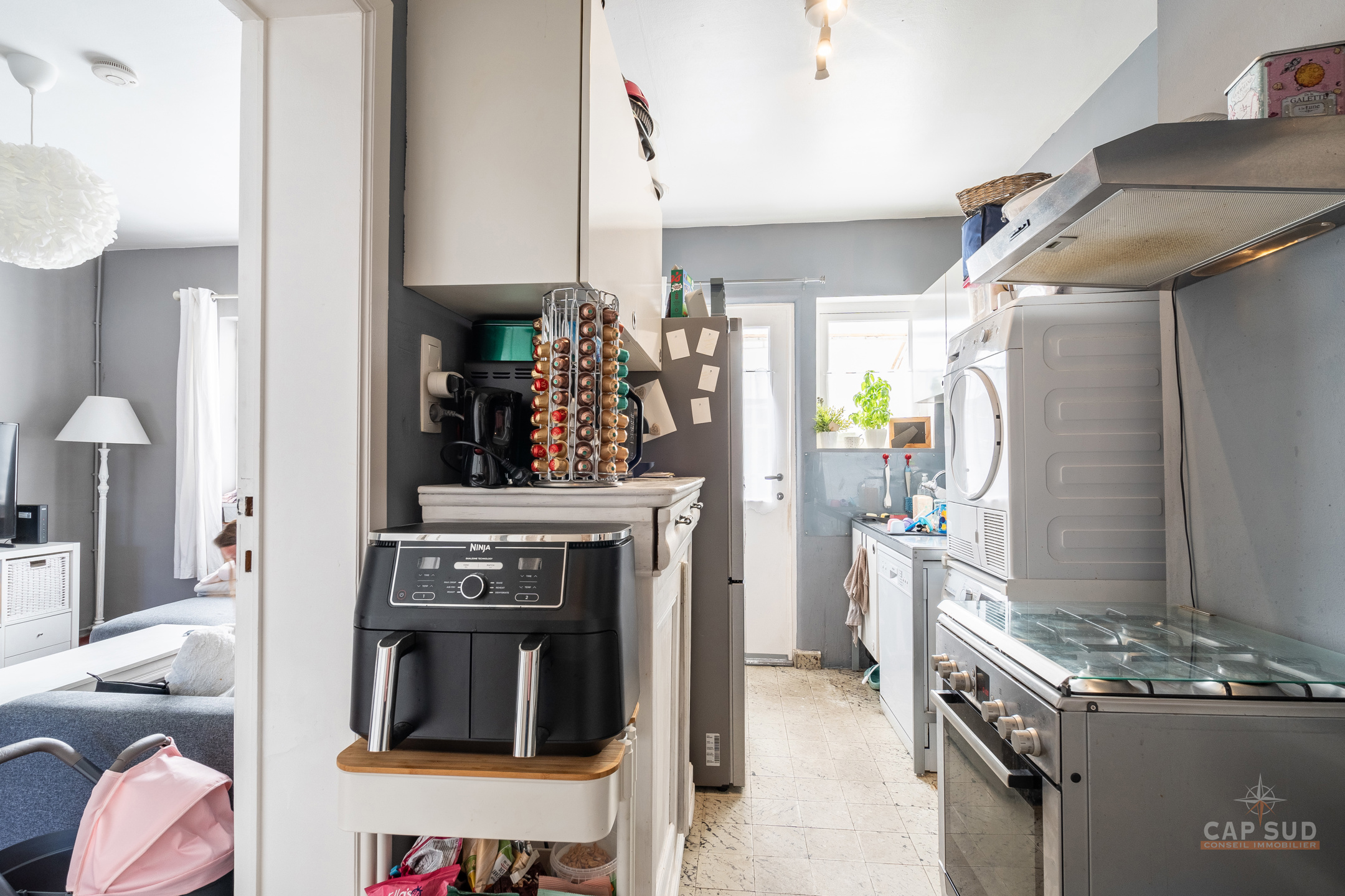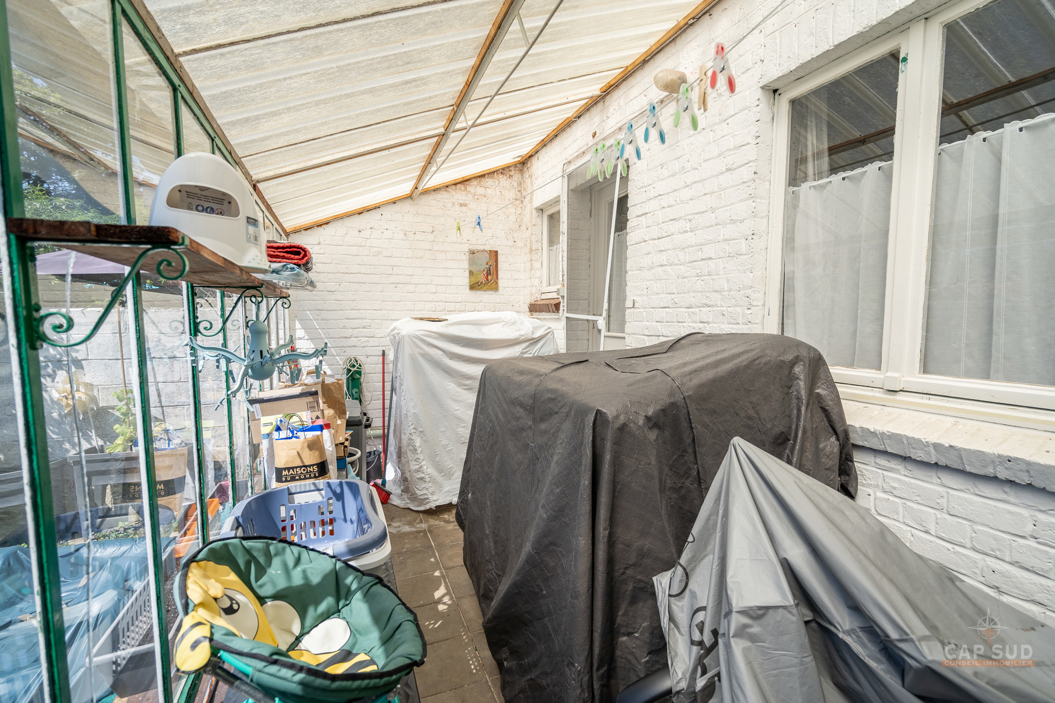 Waterloo – A proximité immédiate de l’école communale du Chenois, de la gare et des commerces de proximité, CAP SUD vous présente cette jolie petite maison de 135m2 A RENOVER sise sur un terrain de 1,80ares (en cous de bornage) orienté Sud-Ouest. Au rez, vous trouverez un hall d’entrée avec local WC, un living de 25m2 avec un poêle à pellet, une cuisine non équipée de 7m2 et une verrière de 13m2 donnant sur le jardin. Au 1er étage, le hall de nuit dessert 2 chambres de 12 et 13m2, un bureau de 6m2 et une salle de douche. Il y a également un grenier aménageable de 32m2. Au sous-sol, vous trouverez également une petite cave de rangement. Toiture non isolée, châssis PVC double vitrage 2010, absence de chauffage central mais maison reliée au gaz, mono-horaire, PEB F : 442 kWh/m2.an. Possibilité d’acquérir un garage sur un terrain de 2,5ares (à +-5mètres de la maison). A SAVOIR : la maison voisine (gauche) est également à vendre ! N’hésitez pas à nous contacter pour plus de renseignements au 02/387.42.42.