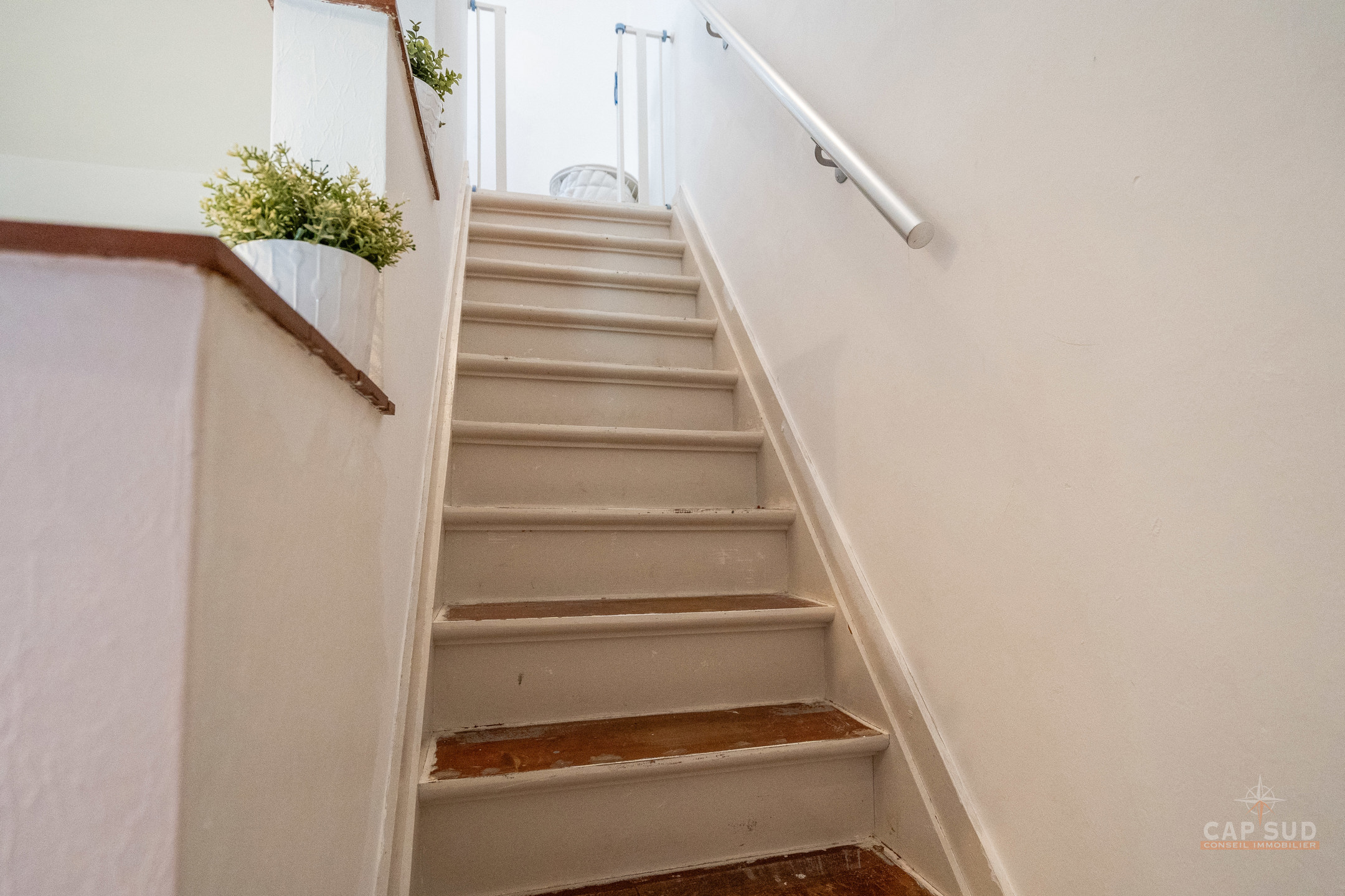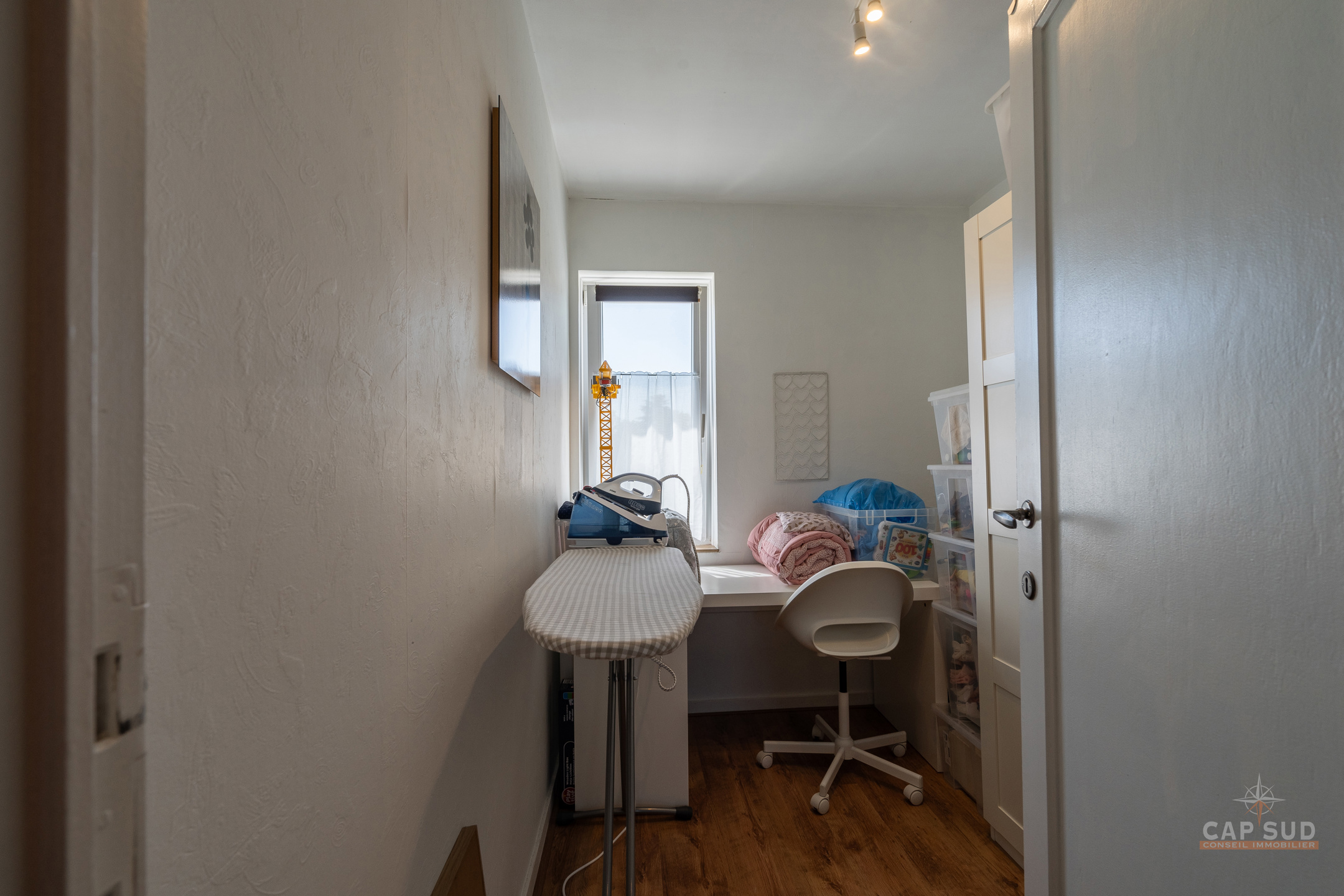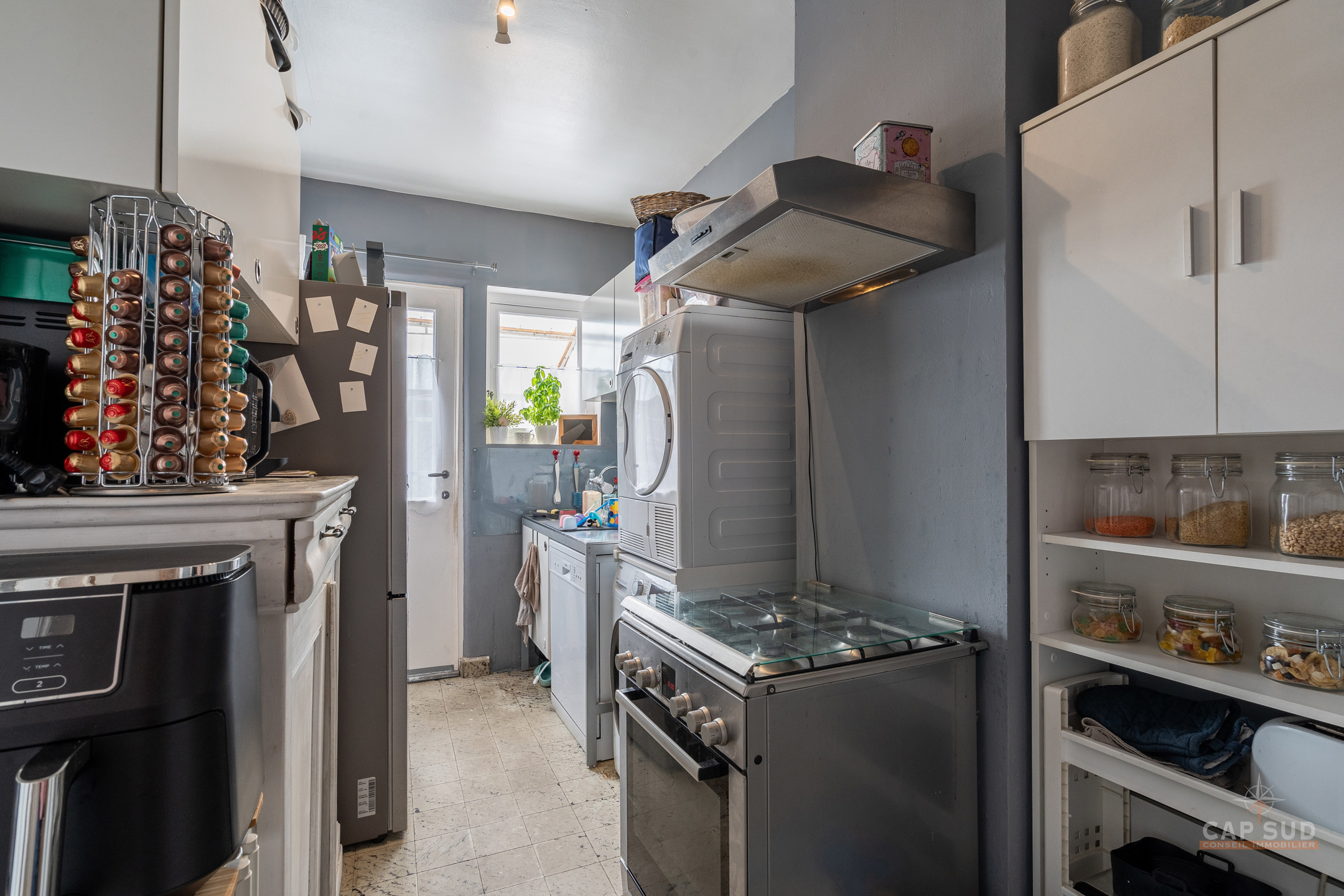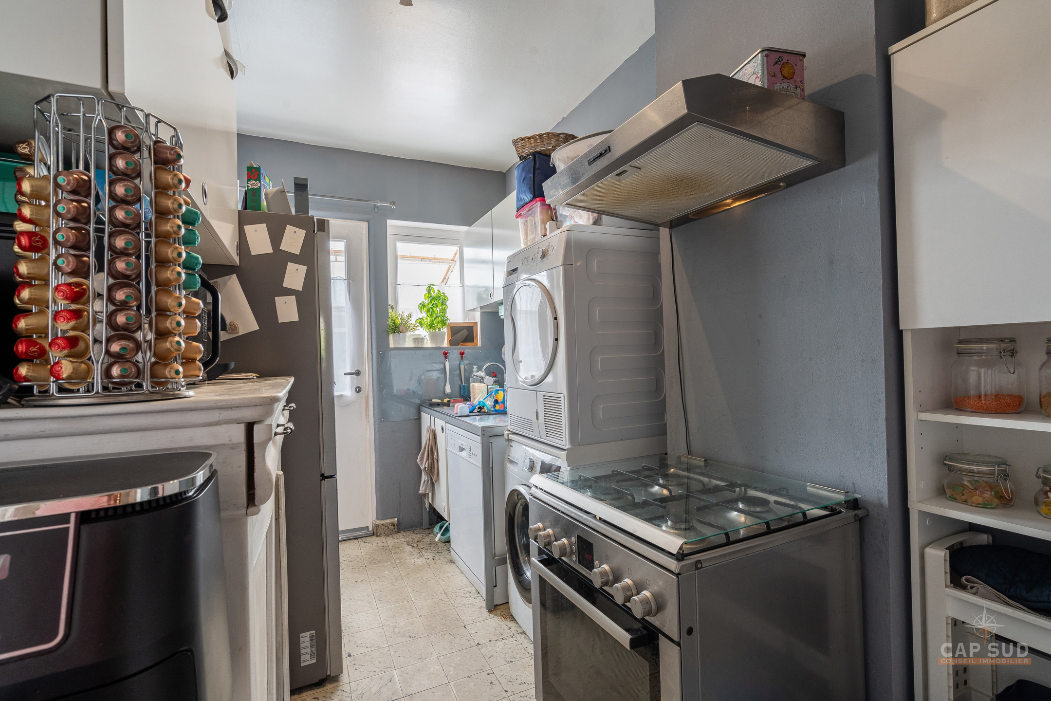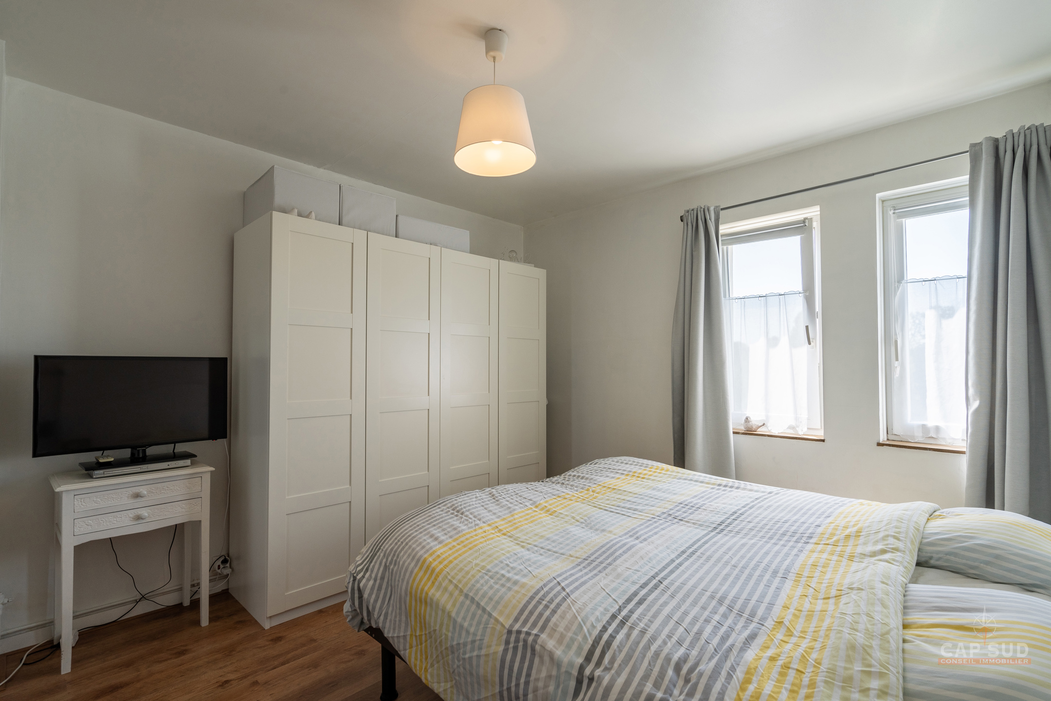 Waterloo – A proximité immédiate de l’école communale du Chenois, de la gare et des commerces de proximité, CAP SUD vous présente cette jolie petite maison de 135m2 A RENOVER sise sur un terrain de 1,80ares (en cous de bornage) orienté Sud-Ouest. Au rez, vous trouverez un hall d’entrée avec local WC, un living de 25m2 avec un poêle à pellet, une cuisine non équipée de 7m2 et une verrière de 13m2 donnant sur le jardin. Au 1er étage, le hall de nuit dessert 2 chambres de 12 et 13m2, un bureau de 6m2 et une salle de douche. Il y a également un grenier aménageable de 32m2. Au sous-sol, vous trouverez également une petite cave de rangement. Toiture non isolée, châssis PVC double vitrage 2010, absence de chauffage central mais maison reliée au gaz, mono-horaire, PEB F : 442 kWh/m2.an. Possibilité d’acquérir un garage sur un terrain de 2,5ares (à +-5mètres de la maison). A SAVOIR : la maison voisine (gauche) est également à vendre ! N’hésitez pas à nous contacter pour plus de renseignements au 02/387.42.42.