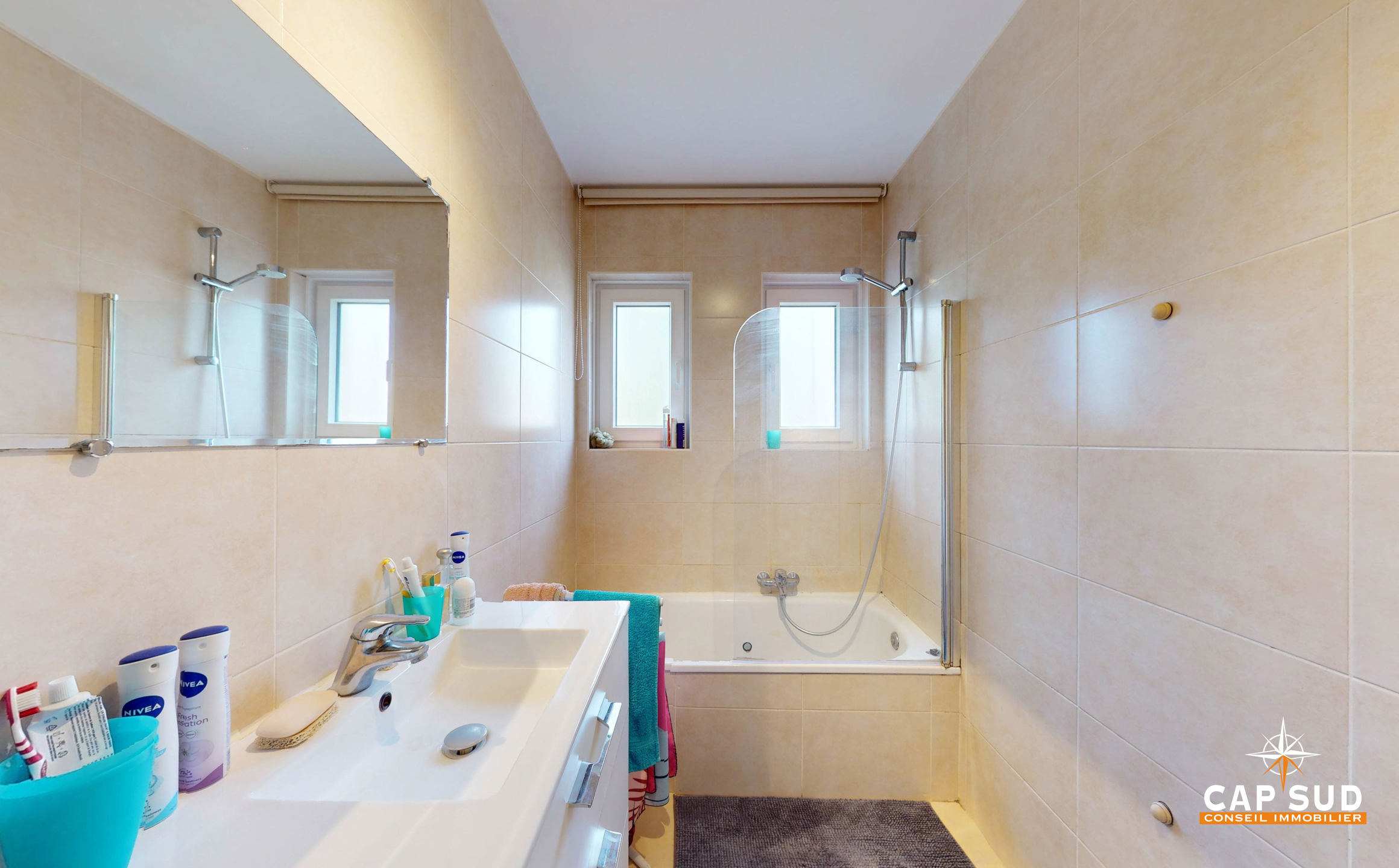 Salle de bain équipée avec baignoire/douche