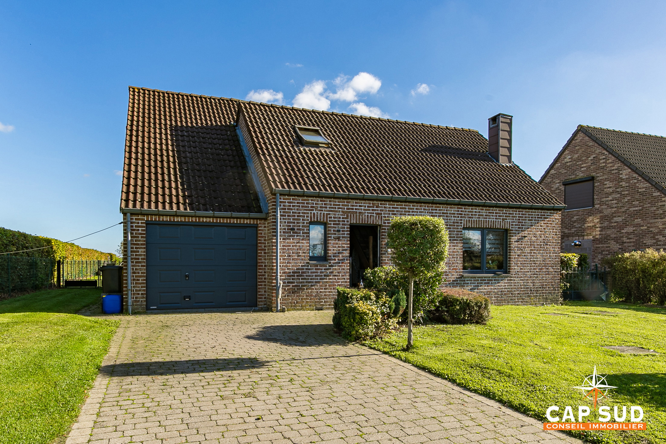 CAP SUD HESBAYE vous présente cette maison 4 façades, habitable directement, située dans la très belle commune de Braives, entre Liège et Bruxelles. Bâtie en 1995 puis agrandie en 2003, elle est implantée sur un terrain d’environ 11 ares (1079 m²) plat, rectangulaire et bien entretenu. Le rez-de-chaussée, spacieux et lumineux, propose un espace de vie ouvert comprenant un salon, une salle à manger, une cuisine, ainsi qu’une belle verrière baignée de lumière, ouvrant sur le jardin et la terrasse. Une buanderie, une salle de douche et un hall d’entrée avec WC complètent ce niveau. À l’étage, un hall de nuit mène à 3 chambres confortables et une salle de bain. Le bien dispose également d’un garage, communiquant directement avec la maison, et de plusieurs places de parking à l’extérieur. Equipements : châssis en pvc double vitrage, chauffage électrique, poêle à pellets récent. La commune de Braives offre un cadre de vie dynamique et agréable dans le Parc naturel des vallées de la Burdinale et de la Mehaigne. Le village séduit par son environnement calme, ses paysages et son patrimoine remarquable. Un RAVEL et de nombreux circuits de balades combleront les amoureux de sorties en plein air. Infos complémentaires et demandes de visite : 0468 077 139 – [email protected]