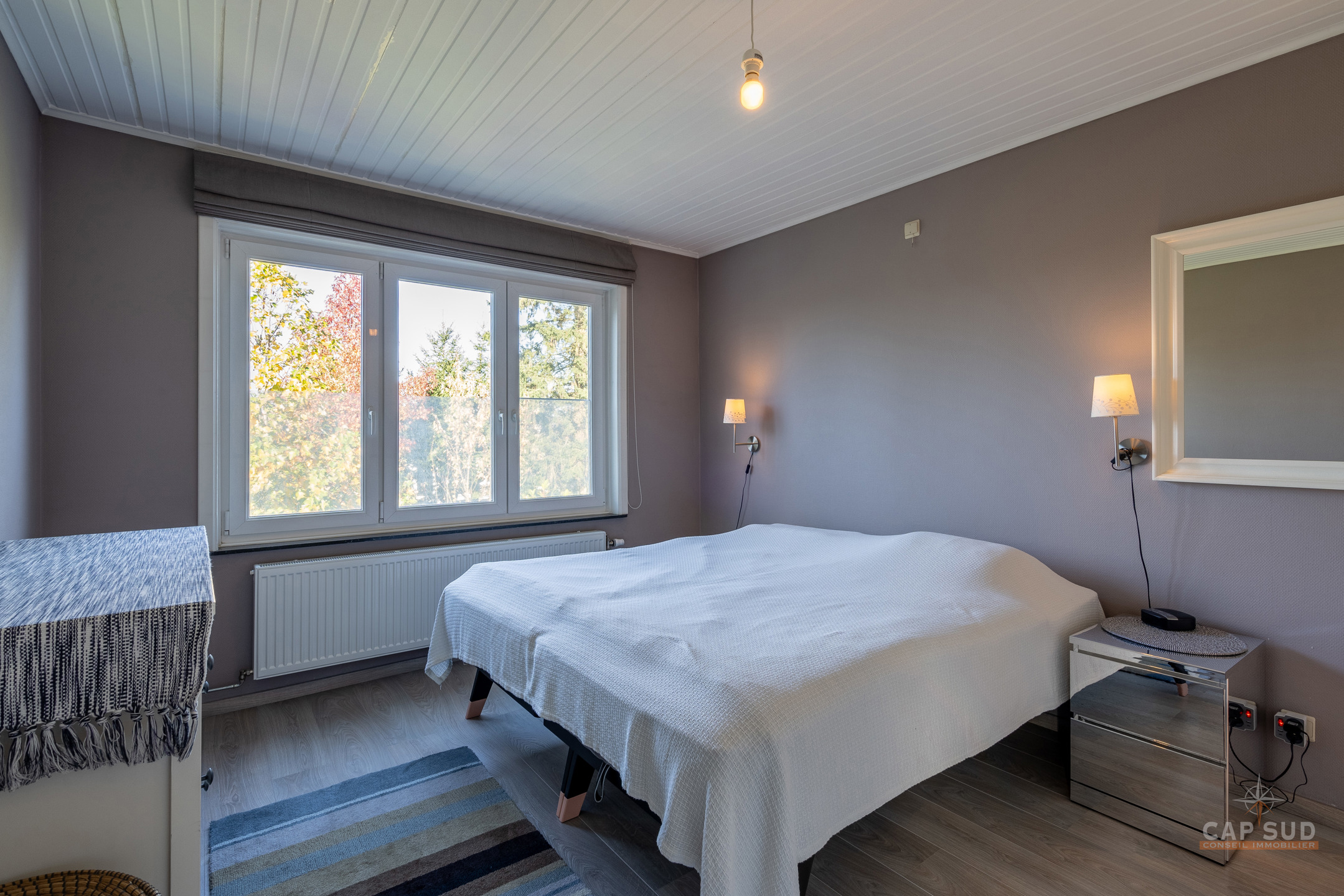 Waterloo – Dans le quartier VERSAILLES, proche du Centre et de toutes les facilités (commerces, écoles, transports, centre sportif, …), CAP SUD vous présente cette jolie villa des années 60, à rafraichir, de 165m2 sise sur un terrain de 6,18ares. Vous trouverez au rez-de-chaussée, un hall d’entrée avec vestiaire et local WC, un lumineux living de 37m2 avec poêle à bois, une cuisine équipée donnant sur le jardin. Au 1er, le hall de nuit dessert 3 chambres de 8, 12 et 15m2 et une salle de bains (baignoire, WC et lavabo). Accès au 2ième étage via une des chambres offrant un espace supplémentaire de 20m2 sous combles. Le sous-sol se compose d’un garage de 17m2, une cave de 7m2 , un local de chauffe de 5m2 et une buanderie de 8m2. Splendide terrasse principale de 40m2 donnant sur un jardin joliment arboré et sans vis-à-vis, terrasse secondaire de 10m2 en fond de terrain. Système d’alarme, chauffage central au gaz (chaudière Vaillant 2015), châssis en PVC DV de 2002, toiture en ardoise de 2006, chalet de jardin et parking. Vous serez agréablement surpris par le charme des lieux et le calme ambiant ! A découvrir sans tarder…
