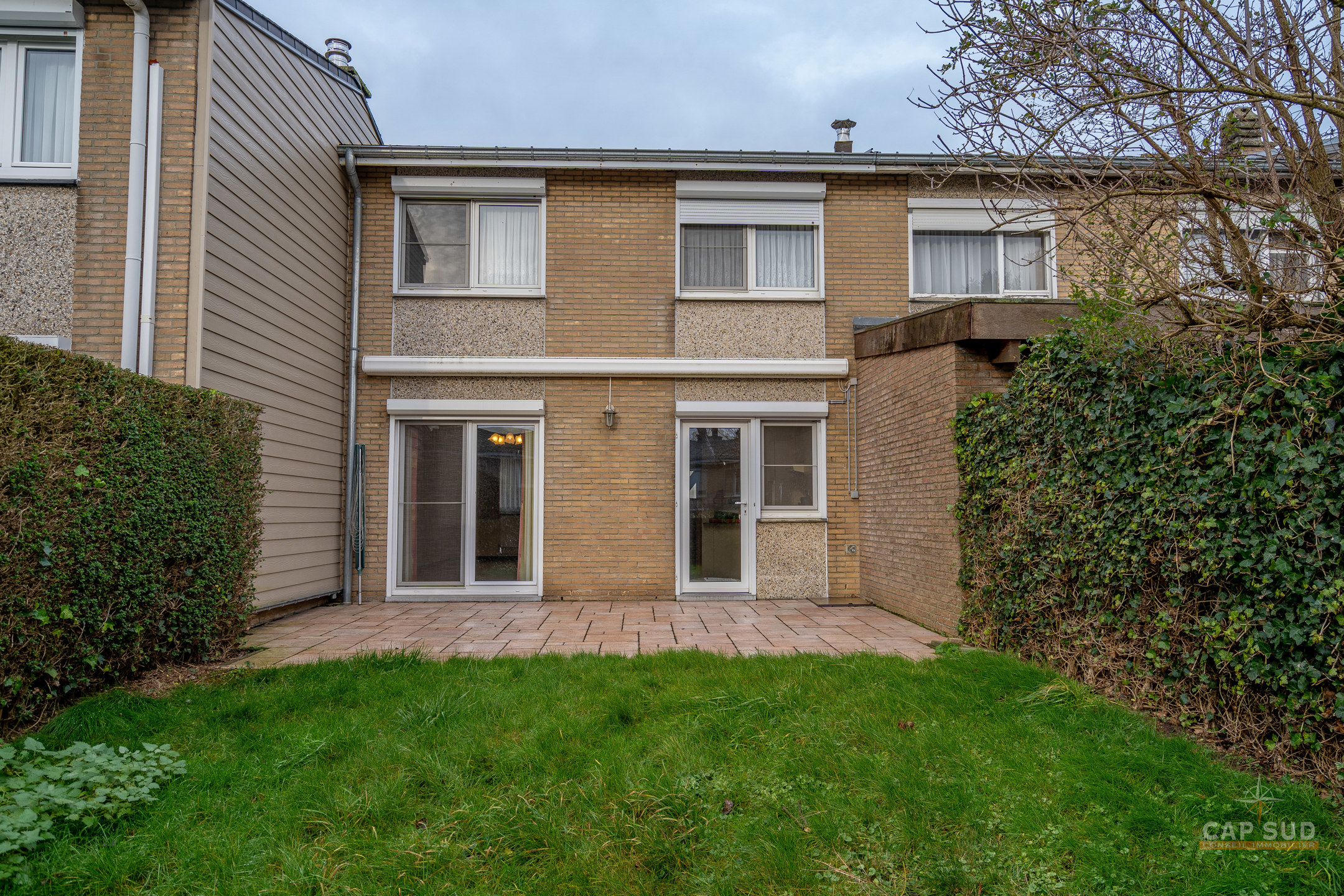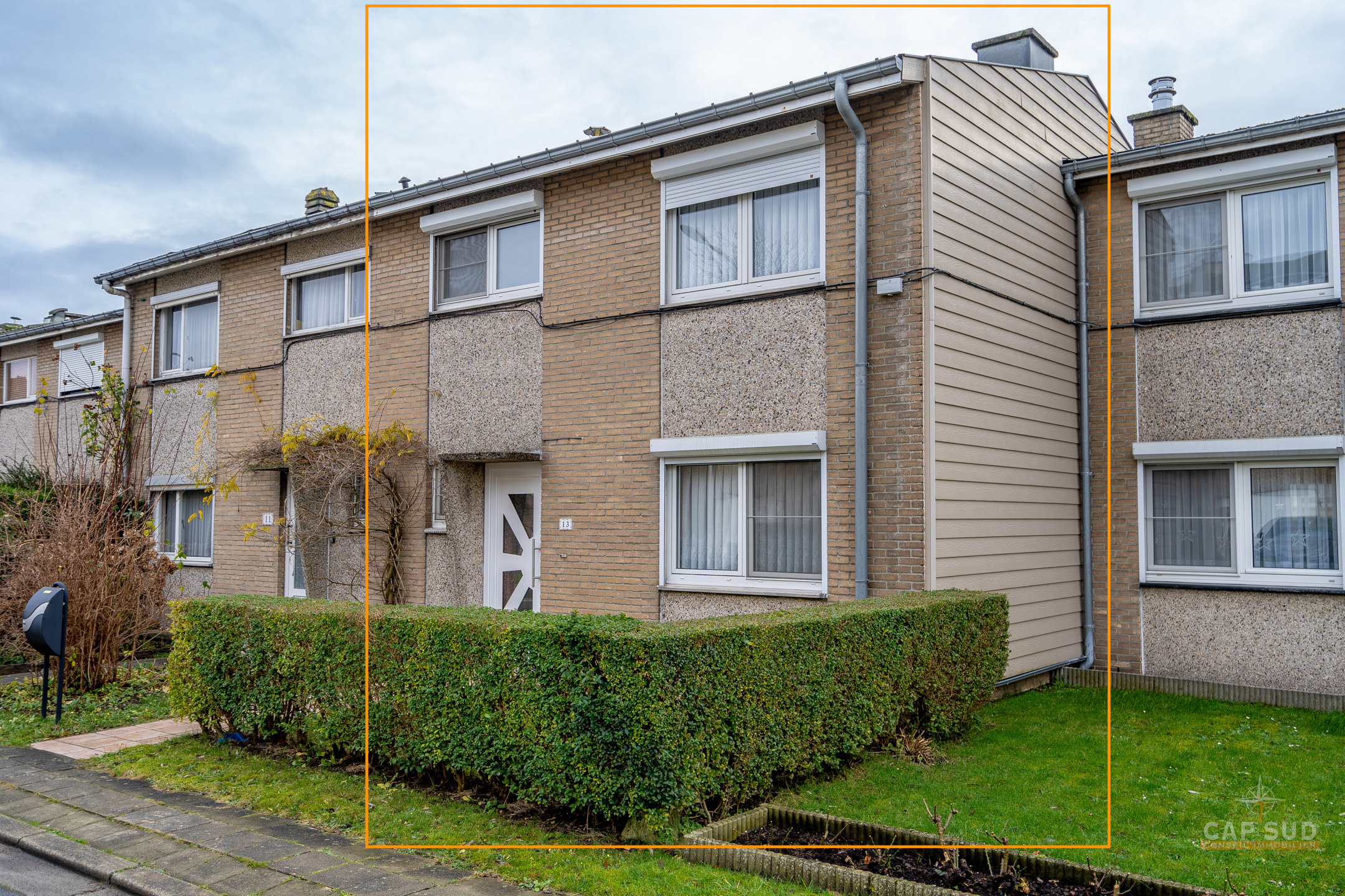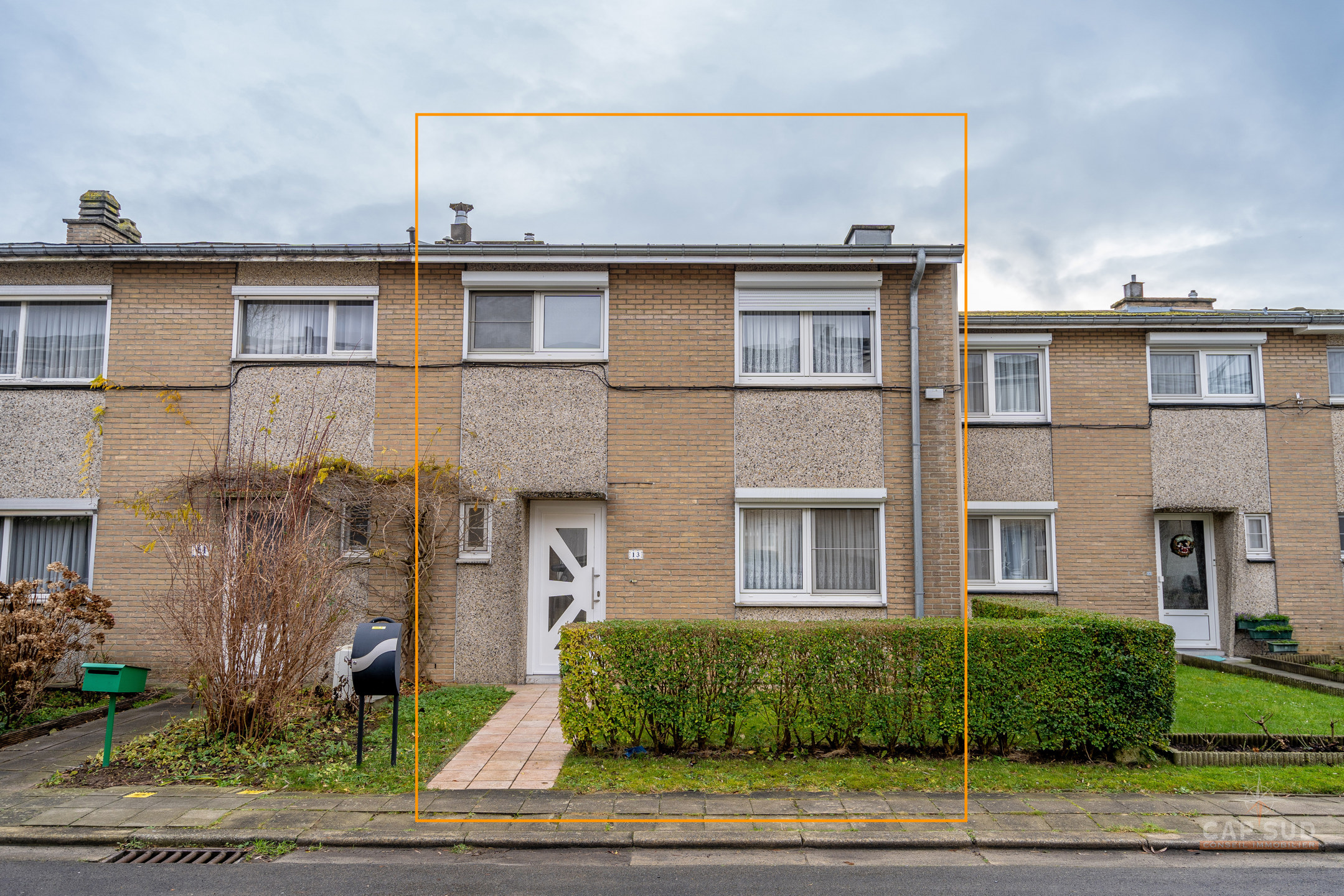 SOUS-OPTION… Merci aux propriétaires pour leur confiance ! Braine-l’Alleud – Dans un clos calme, proche des facilités, CAP SUD vous propose cette jolie petite maison de 125m2 sise sur un terrain de 1,59ares orienté Sud. Au rez, vous trouverez le hall d’entrée avec local WC, un living de 25m2, une cuisine équipée (à rénover) de 9m2 donnant sur la terrasse de 25m2. Au 1er, le hall de nuit dessert 3 chambres de 9, 10 et 13m2 et une salle de douche neuve (comprenant douche, lavabo et WC). Au sous-sol, une cave à provision et un local de chauffe/buanderie. Il y a également un garage box fermé 1 voiture (porte automatique sectionnelle) à proximité. Plomberie neuve 2021, chaudière Viessmann 2014, tente solaire automatique, volets automatiques partout, boiler de 150l, porte en chêne, pignon isolé, PEB D: 298kWh/m2.an…A découvrir rapidement…