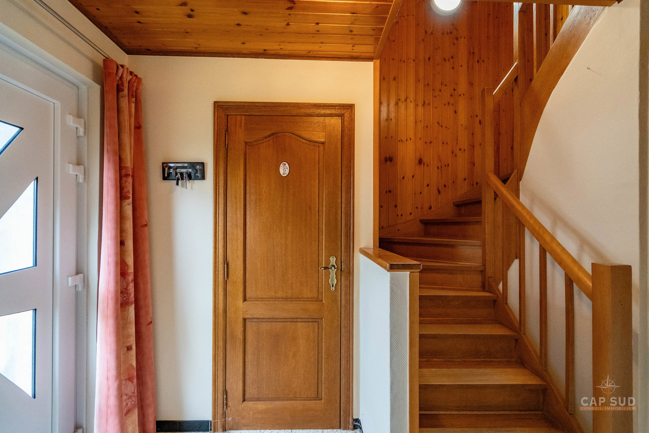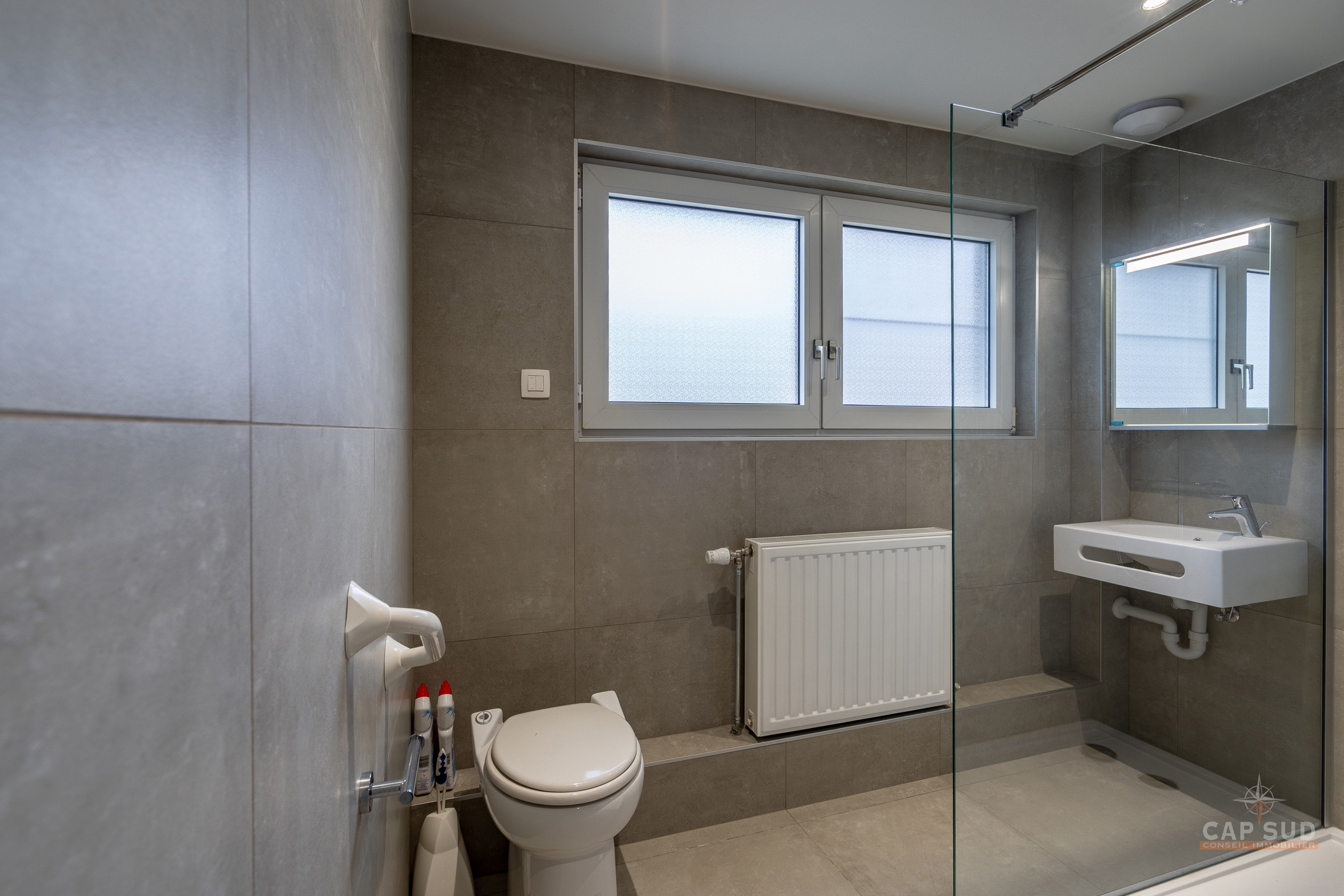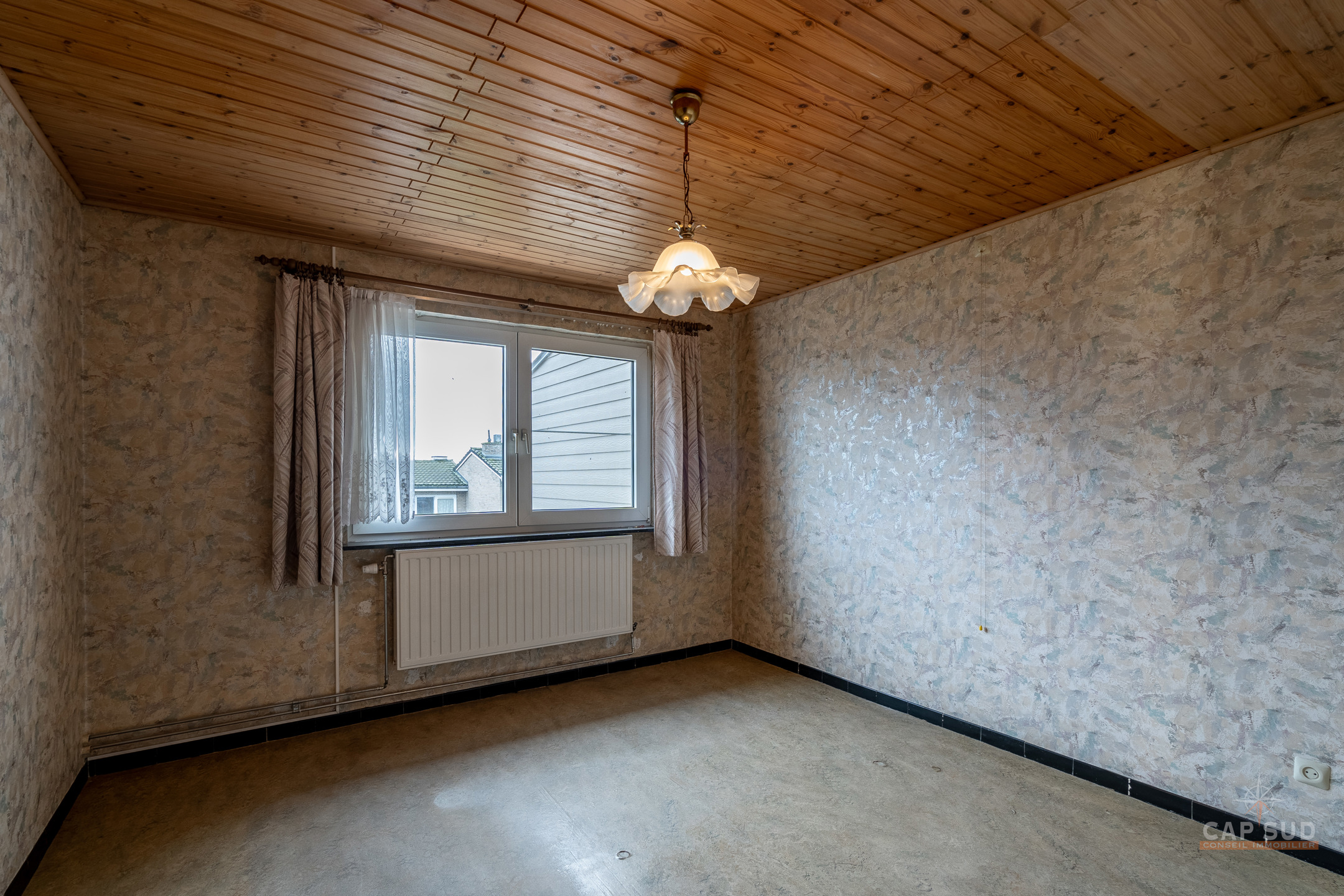 SOUS-OPTION… Merci aux propriétaires pour leur confiance ! Braine-l’Alleud – Dans un clos calme, proche des facilités, CAP SUD vous propose cette jolie petite maison de 125m2 sise sur un terrain de 1,59ares orienté Sud. Au rez, vous trouverez le hall d’entrée avec local WC, un living de 25m2, une cuisine équipée (à rénover) de 9m2 donnant sur la terrasse de 25m2. Au 1er, le hall de nuit dessert 3 chambres de 9, 10 et 13m2 et une salle de douche neuve (comprenant douche, lavabo et WC). Au sous-sol, une cave à provision et un local de chauffe/buanderie. Il y a également un garage box fermé 1 voiture (porte automatique sectionnelle) à proximité. Plomberie neuve 2021, chaudière Viessmann 2014, tente solaire automatique, volets automatiques partout, boiler de 150l, porte en chêne, pignon isolé, PEB D: 298kWh/m2.an…A découvrir rapidement…