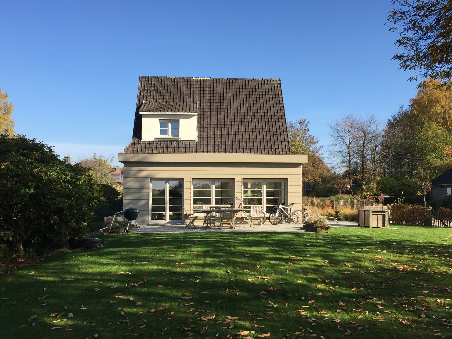 Nichée dans un écrin de verdure (champs), villa 3 façades de charme entièrement rénovée. Elle se compose d’un vaste séjour carrelé avec cuisine américaine full équipée (îlot central), hall d’entrée avec WC séparé (lave-mains), buanderie aménagée. Au premier étage, 2 belles chambres en parquet 16 & 13m² et une petite pièce bureau/enfant de 7m², belle salle de bains (bain, douche italienne et double vasques). 4 emplacements de parking extérieur, abris de jardin +/-18m². PEB B (177 KWh/m²/an – 28201 – CO² 5569). Chauffage central au gaz (chauffage au sol au rez-de-chaussée). Provision de 100€ par mois pour l’entretien chaudière, alarme et jardin). Libre le 1ᵉʳ Mars 2025 – Situation calme et champêtre (limite Tervuren). Infos & visites : CAP SUD – 02/733.48.00 – www.cap-sud.com