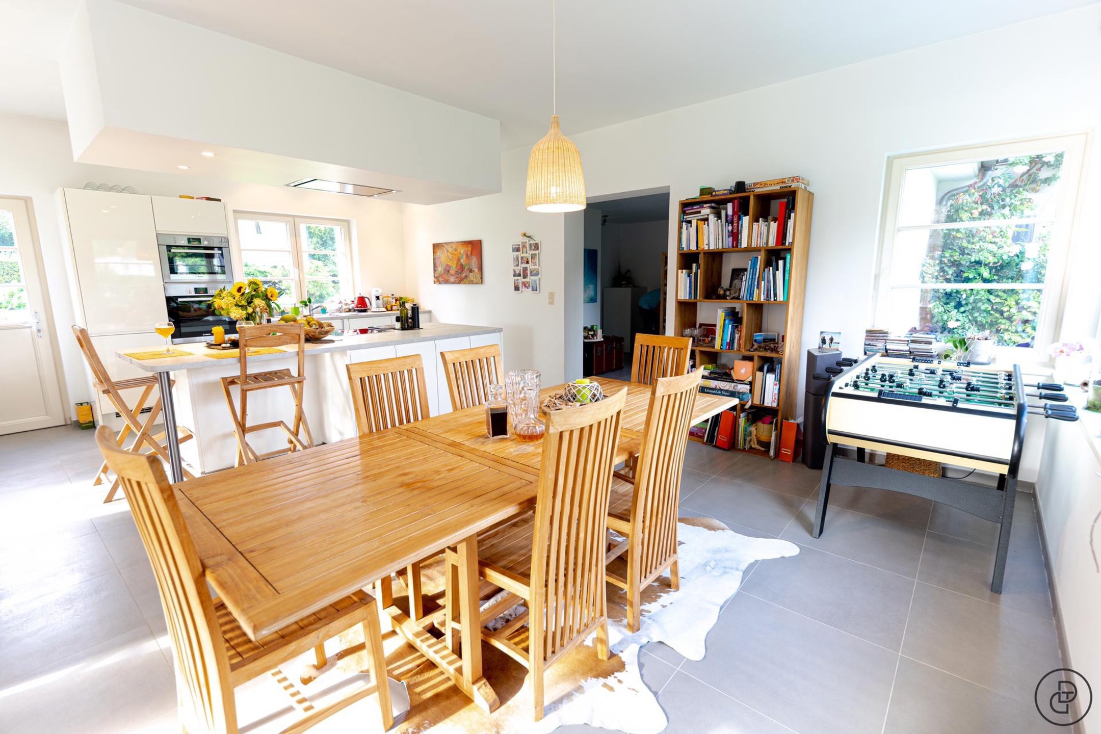 Nichée dans un écrin de verdure (champs), villa 3 façades de charme entièrement rénovée. Elle se compose d’un vaste séjour carrelé avec cuisine américaine full équipée (îlot central), hall d’entrée avec WC séparé (lave-mains), buanderie aménagée. Au premier étage, 2 belles chambres en parquet 16 & 13m² et une petite pièce bureau/enfant de 7m², belle salle de bains (bain, douche italienne et double vasques). 4 emplacements de parking extérieur, abris de jardin +/-18m². PEB B (177 KWh/m²/an – 28201 – CO² 5569). Chauffage central au gaz (chauffage au sol au rez-de-chaussée). Provision de 100€ par mois pour l’entretien chaudière, alarme et jardin). Libre le 1ᵉʳ Mars 2025 – Situation calme et champêtre (limite Tervuren). Infos & visites : CAP SUD – 02/733.48.00 – www.cap-sud.com