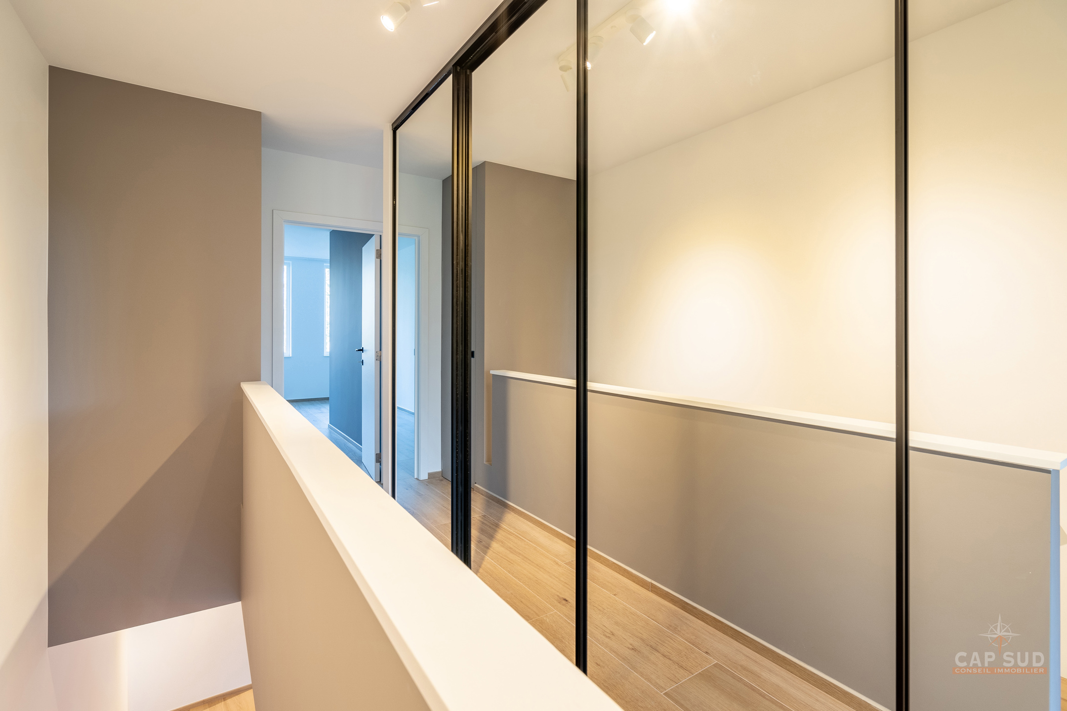 Au 1er étage un hall de nuit desservant une chambre de +- 15m2 attenante à une salle de douches de +- 4m2, une chambre de +- 11 m2 avec son dressing/bureau de +- 10m2, une salle de douche de +- 2m2, un wc séparé.