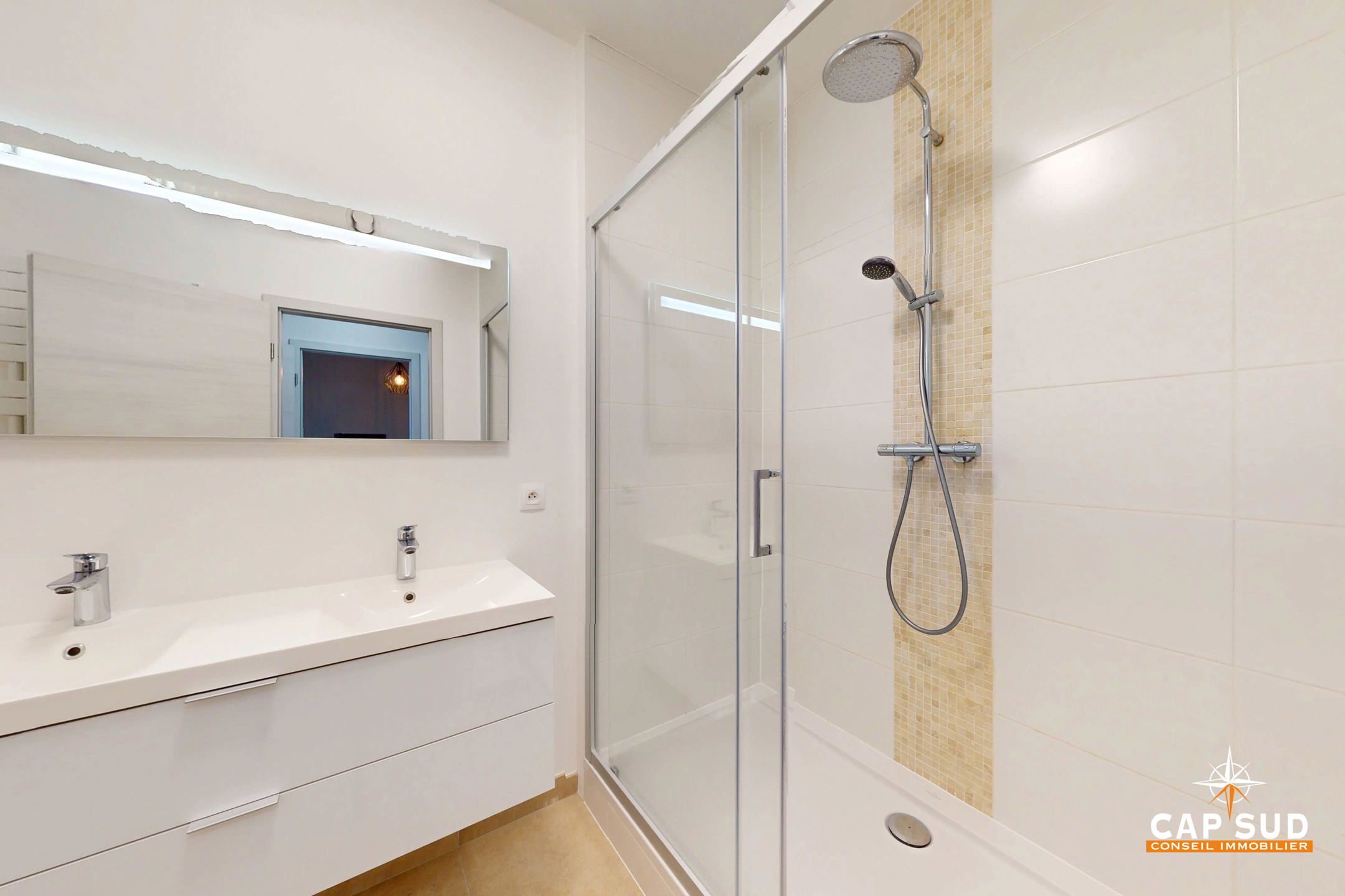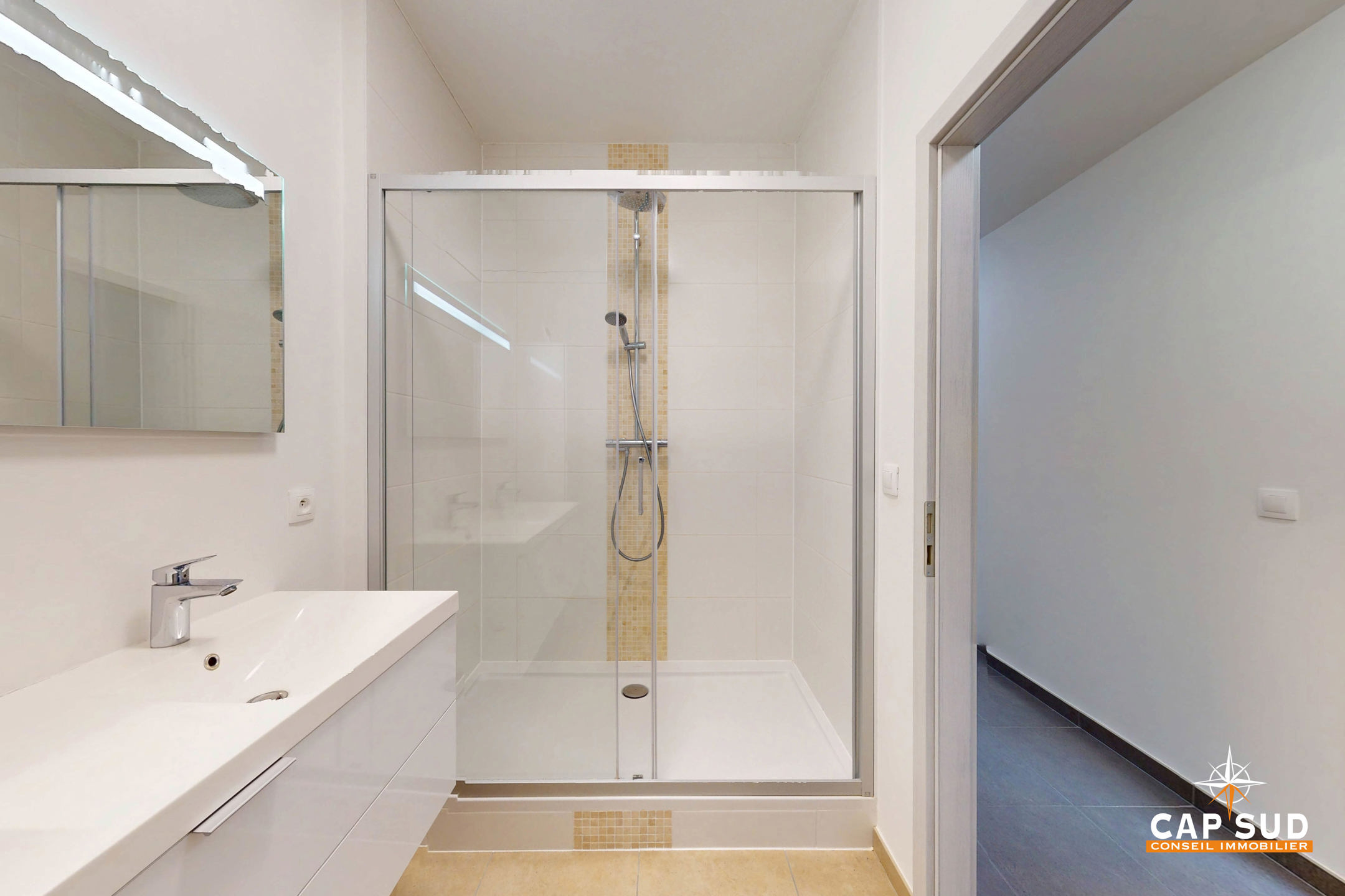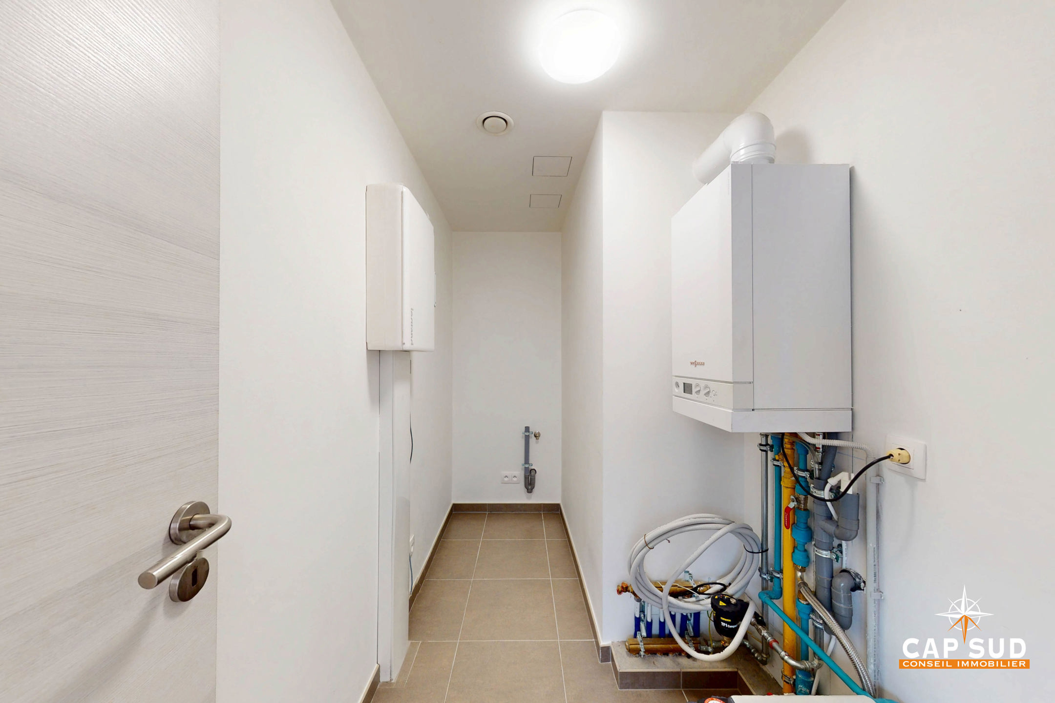 L’appartement se compose d’un spacieux et lumineux séjour avec accès direct à la terrasse, d’une cuisine moderne entièrement équipée, de deux chambres confortables, d’une salle de bain avec douche, d’un WC séparé ainsi que d’une buanderie. Pour encore plus de confort, un parking intérieur privatif et une cave sont inclus.
