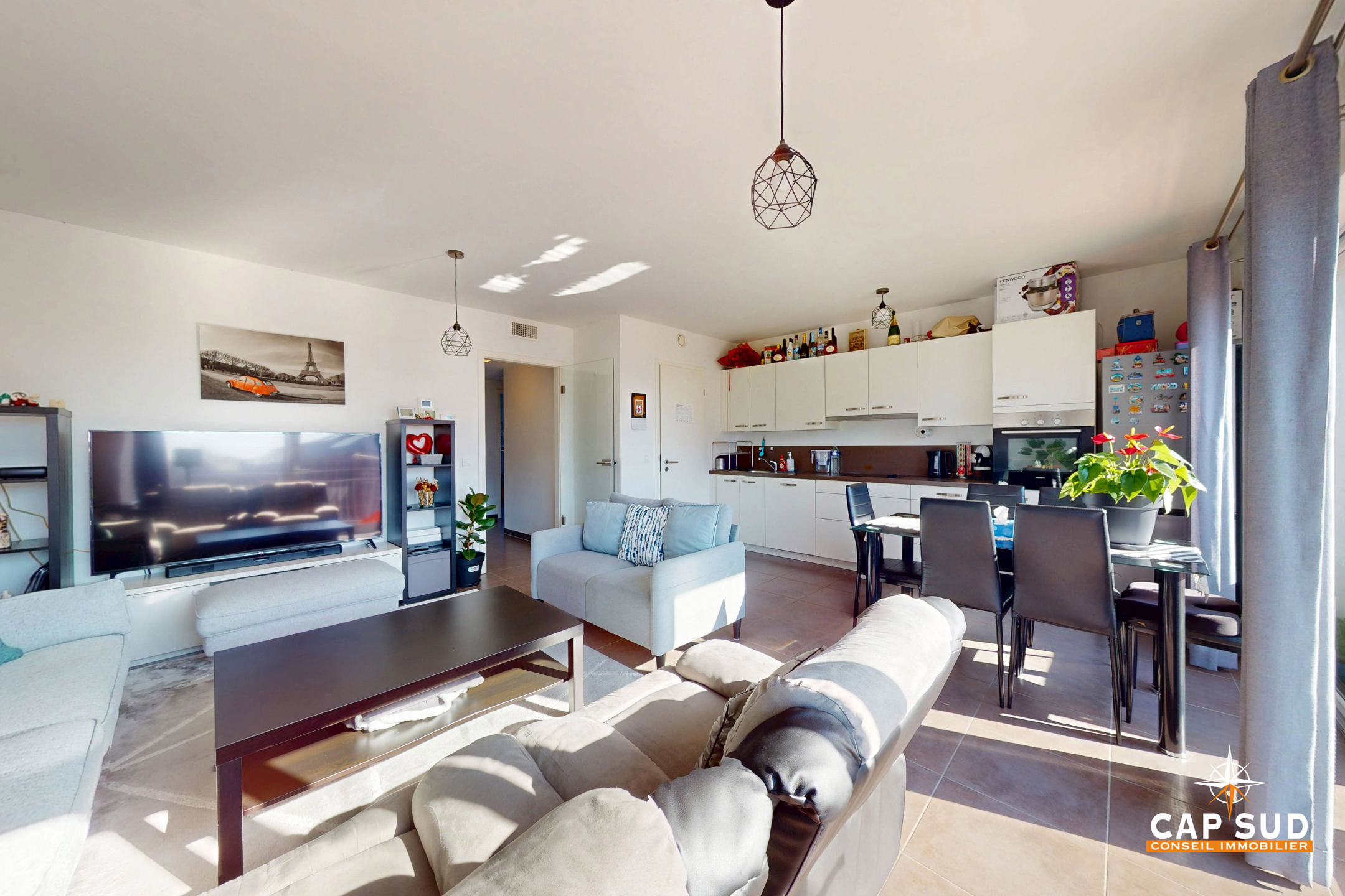 l’appartement est composé, d’un hall d’entrée, d’une salle de douche, de deux chambres, d’un séjour avec une cuisine super équipée et d’une belle buanderie. Il dispose également, d’un emplacement de parking et d’une cave.