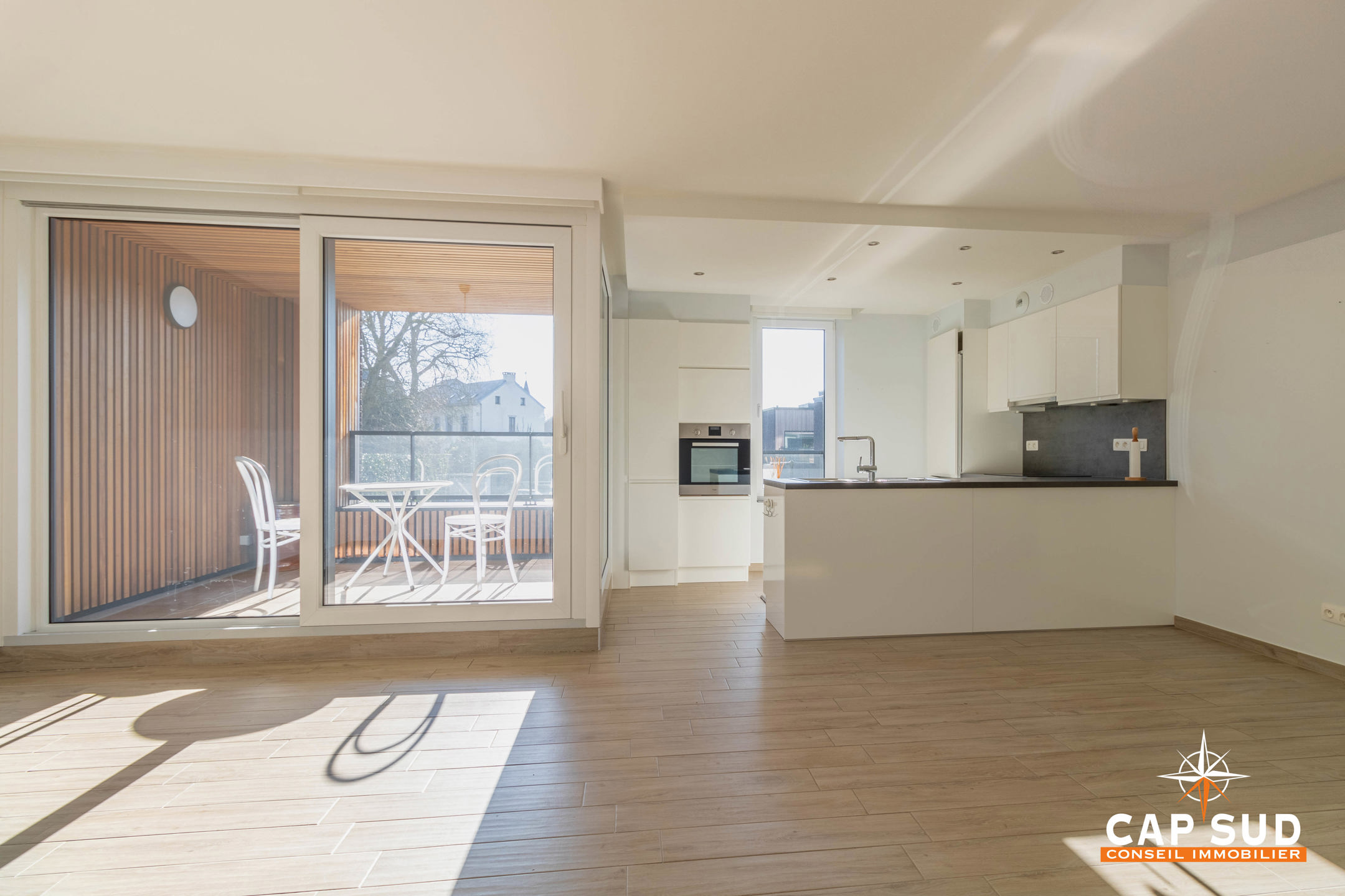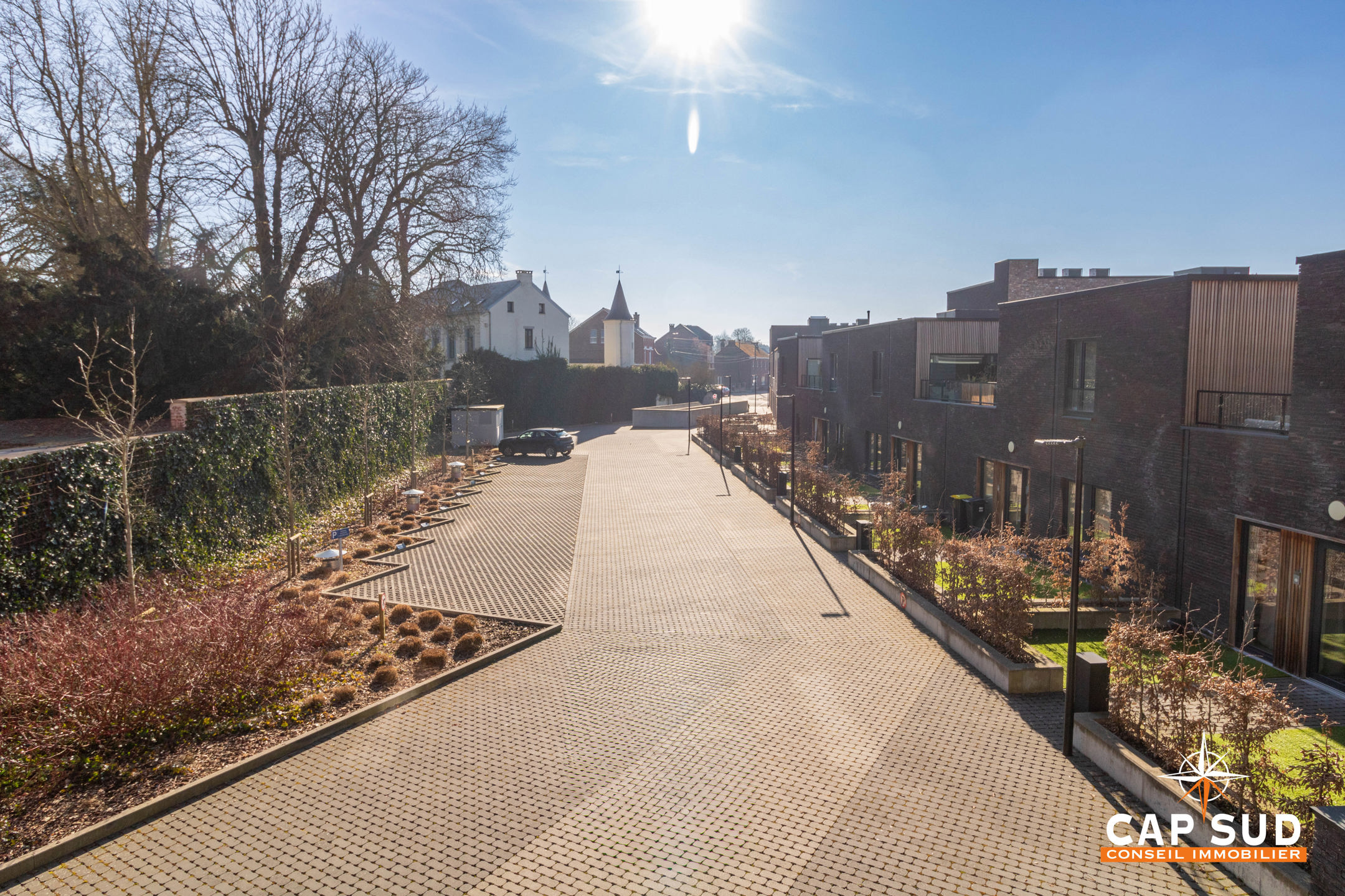 VISITES SUSPENDUES – Situé au premier étage d’un petit immeuble de construction récente (2017), dans un espace résidentiel calme et clos, l’appartement bénéficie d’une exposition sud-ouest et d’une belle vue dégagée. Il est composé d’un spacieux séjour ouvrant sur la terrasse, d’une cuisine ouverte, entièrement équipée, de deux chambres (13 et 11m2), et d’une grande salle de bains avec douche. Une buanderie, une cave et deux places de parking (intérieure et extérieure) complètent l’ensemble. Chauffage au sol par pompe à chaleur, panneaux photovoltaïques, PEB A, vidéophone, ascenseur, compteurs individuels. Provision pour charges communes de 100 €/mois. Disponible immédiatement. Infos et visites : 019 511 550 ou [email protected].