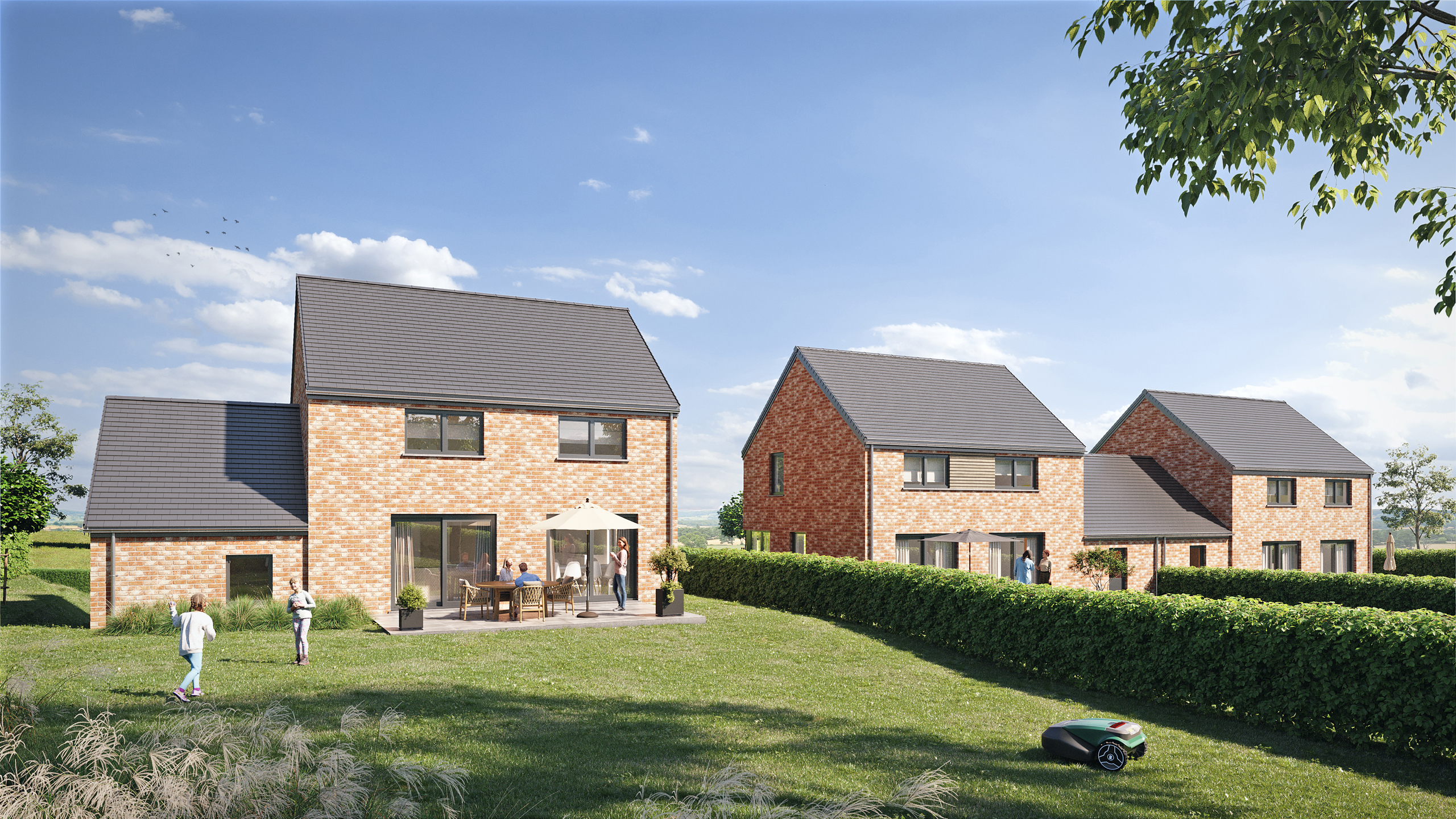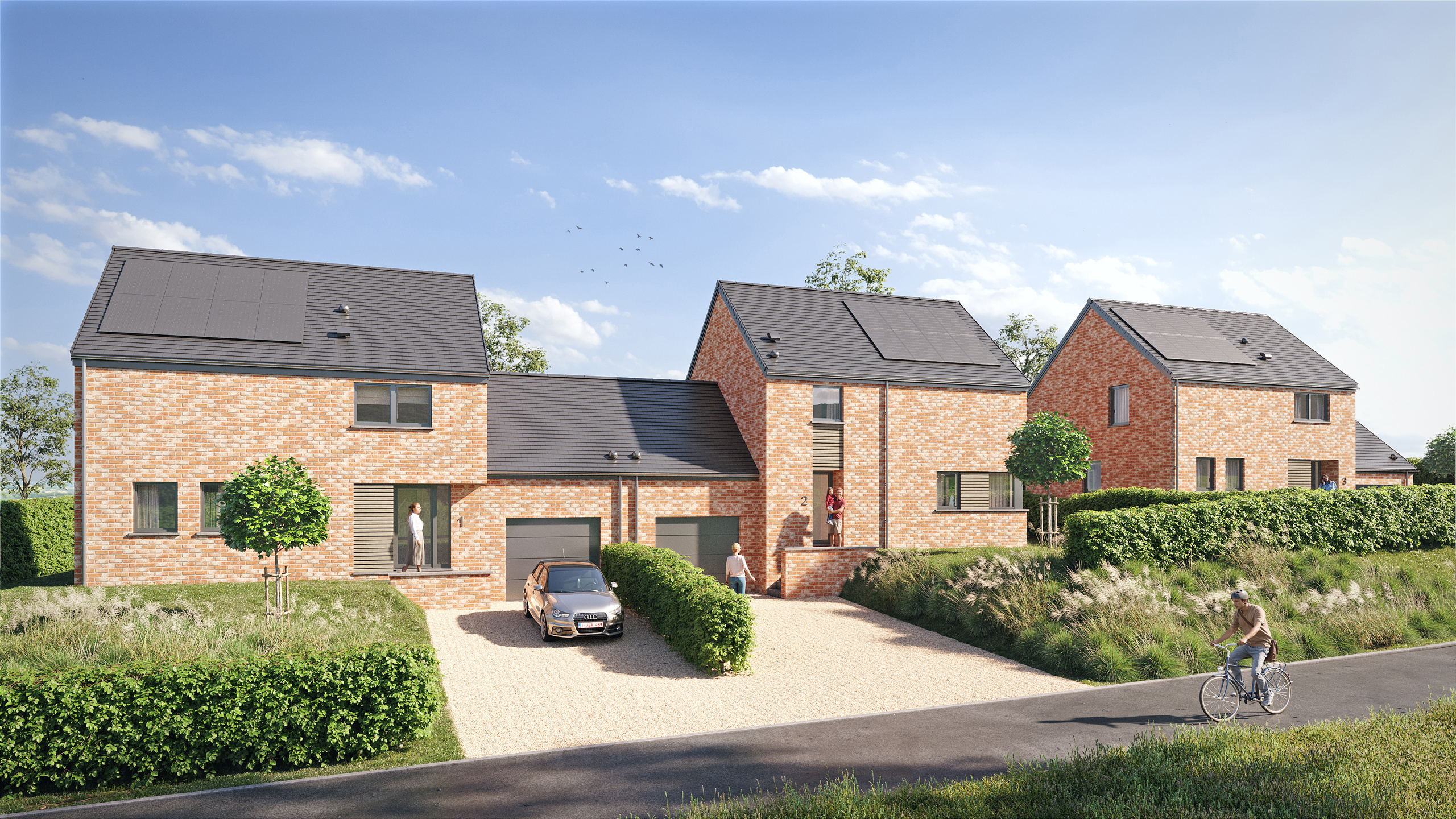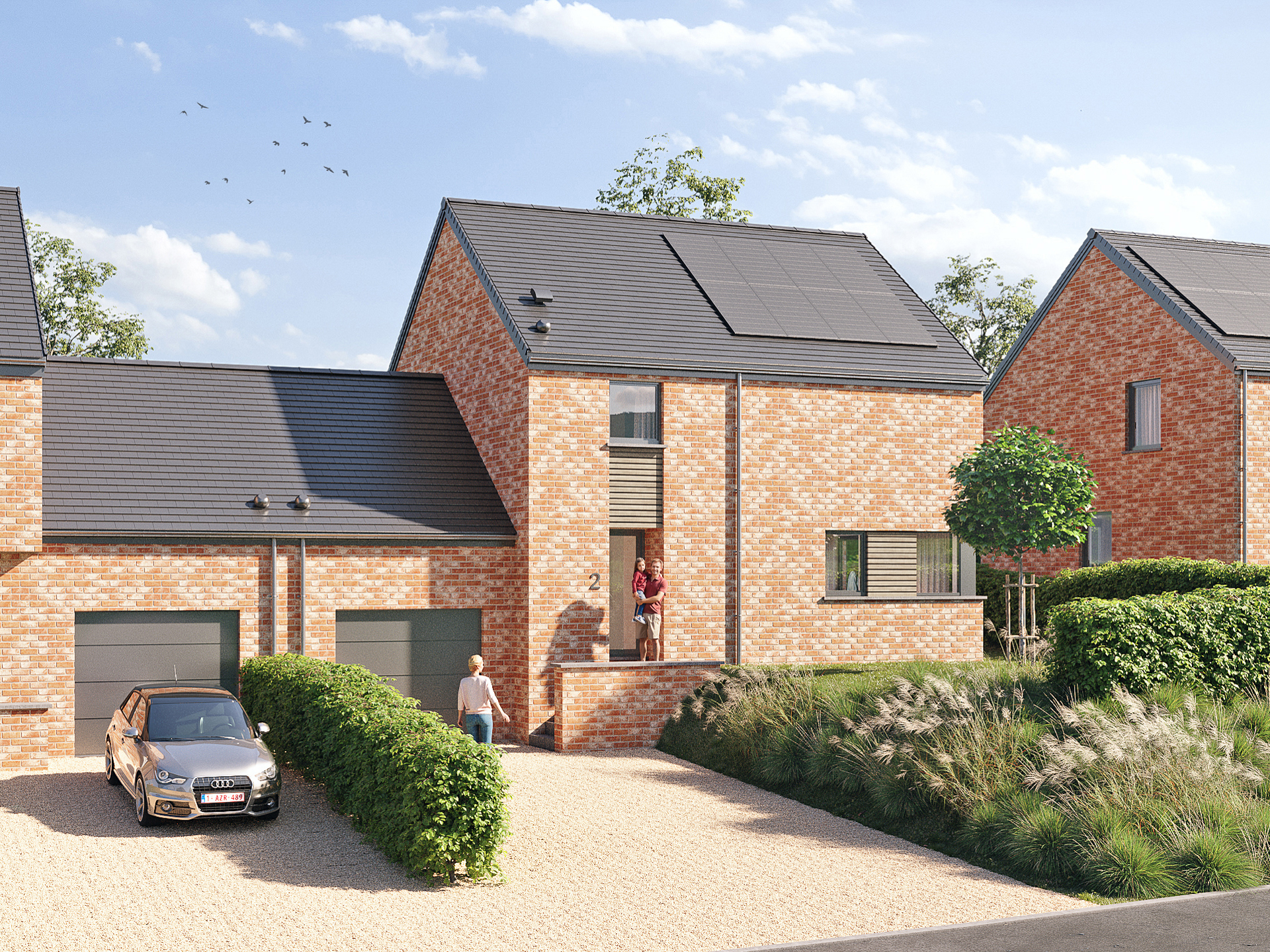 Projet de 3 nouvelles constructions Thomas & Piron (3 et 4 façades) sur des parcelles d’environ 10 ares chacune, situées dans une petite rue calme, à sens unique, à proximité immédiate des commerces, de l’école communale et du centre de Braives, et à quelques minutes de Hannut. Equipées de pompe à chaleur, d’un chauffage par le sol et de panneaux solaires, les maisons offrent une performance énergétique exceptionnelle (PEB A+) ! Elles comprennent chacune 3 chambres, un séjour avec cuisine ouverte et un garage. Situation très recherchée, en bordure du parc naturel de la Burdinale et de la Mehaigne, à proximité des autoroutes vers Liège, Bruxelles et Namur !! Infos et visites: 019 511 550 ou [email protected]