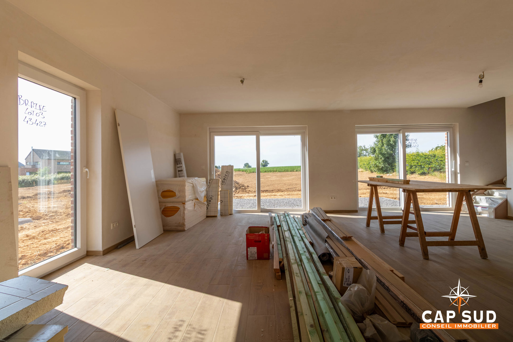 Projet de 3 nouvelles constructions Thomas & Piron (3 et 4 façades) sur des parcelles d’environ 10 ares chacune, situées dans une petite rue calme, à sens unique, à proximité immédiate des commerces, de l’école communale et du centre de Braives, et à quelques minutes de Hannut. Equipées de pompe à chaleur, d’un chauffage par le sol et de panneaux solaires, les maisons offrent une performance énergétique exceptionnelle (PEB A+) ! Elles comprennent chacune 3 chambres, un séjour avec cuisine ouverte et un garage. Situation très recherchée, en bordure du parc naturel de la Burdinale et de la Mehaigne, à proximité des autoroutes vers Liège, Bruxelles et Namur !! Infos et visites: 019 511 550 ou [email protected]