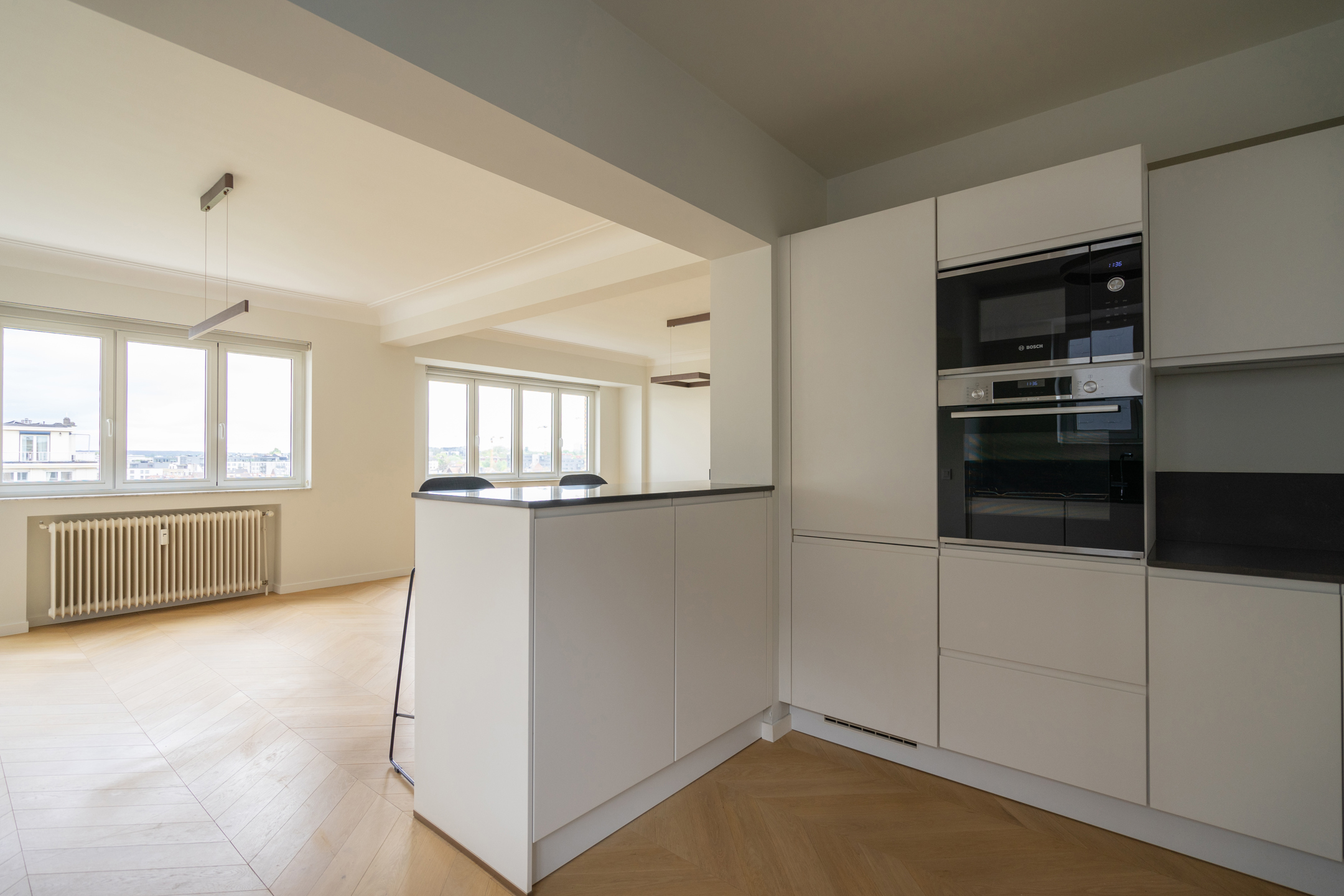 À proximité de toutes les facilités (Montgomery, Thieffry, commerces, transports, écoles, …), magnifique appartement 2-chambres entièrement rénové avec des finitions de qualité. Il offre une superficie brute de +/-108m² (+/-98m² nets). Il se compose d’un vaste séjour en parquet massif de +/-38m² avec cuisine américaine super équipée, balcon de 2m², une chambre de 12m², une seconde chambre de 11m² avec balcon, salle de bains, hall de +/-11,5m², WC séparé avec lave-mains et vestiaire aménagé avec buanderie. Porte sécurisée, double vitrage ALU, belle vue, finitions haut de gamme, cave, … Provisions pour charges : 250€ par mois (chauffage, eau chaude, communs). PEB: G – 580 kWh/m²/an – CO² 116 kg/CO²/m²/an – Code unique : 20250310-0000706982-01-2 – Infos & visites : CAP SUD Etterbeek : 02/733.48.00 – www.cap-sud.com