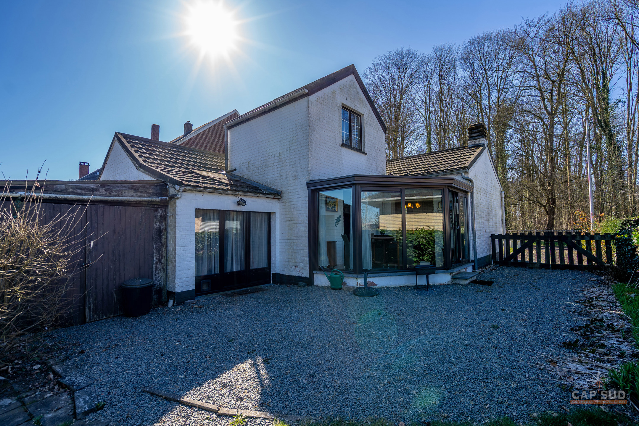 Maison de plain-pied de sur un terrain de 7a04ca à la lisière de champs et de bois. Elle est composée d’un salon de 26m2 avec un insert, une salle à manger de 10m2 , une cuisine USA de 12m2, une salle de douche de 4m2 avec WC, une véranda, 2 chambres dont une en mezzanine (10,5 m2 et 8m2), un bureau de 9m2 + une pièce de 12m2 (ancien garage) et une annexe servant de rangement, un jardin et des emplacements de parkings extérieurs. Chauffage au gaz, doubles vitrages, … RC: 1455€, PEB F, 885kWh/m2/an réf:20250327-0003562541.