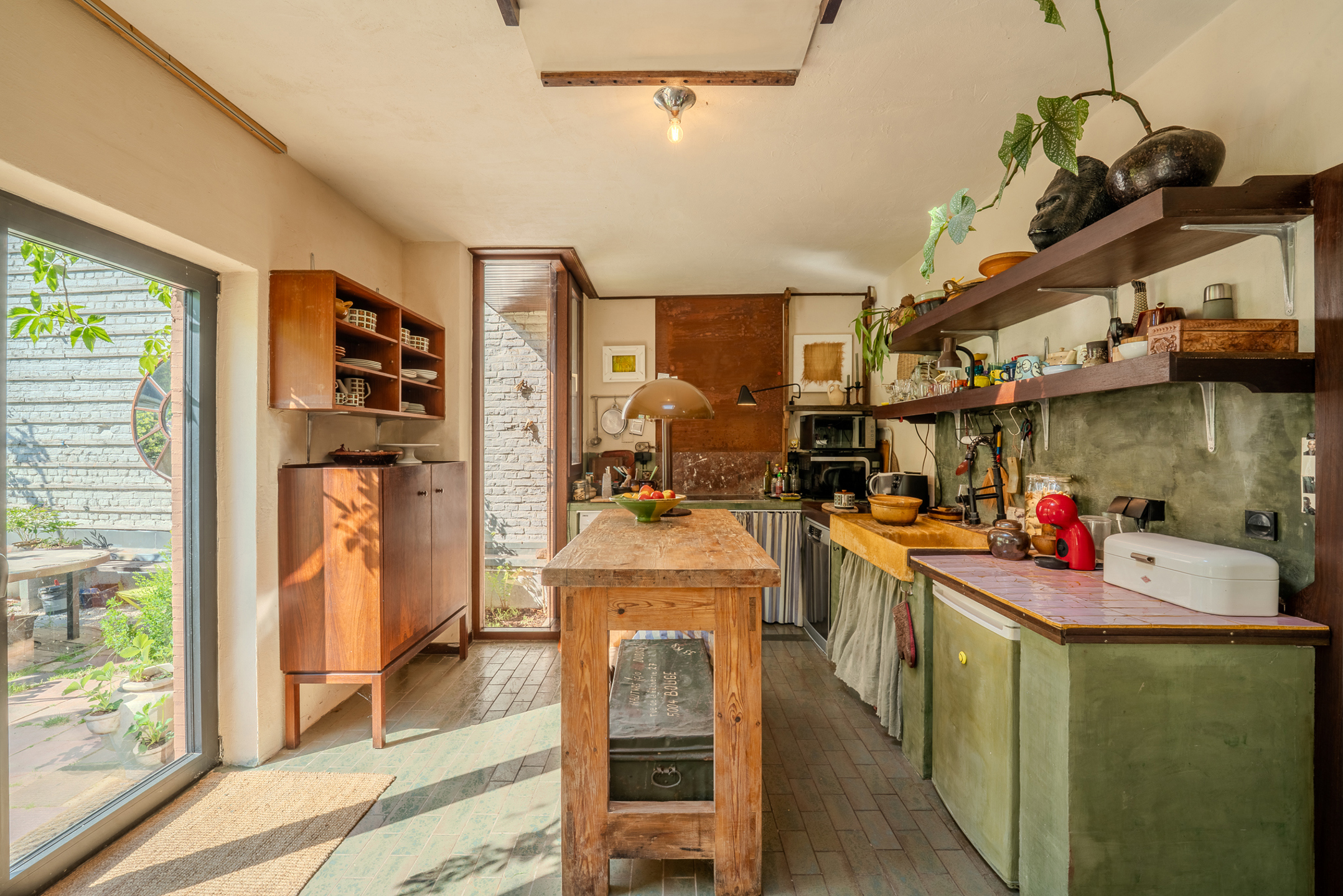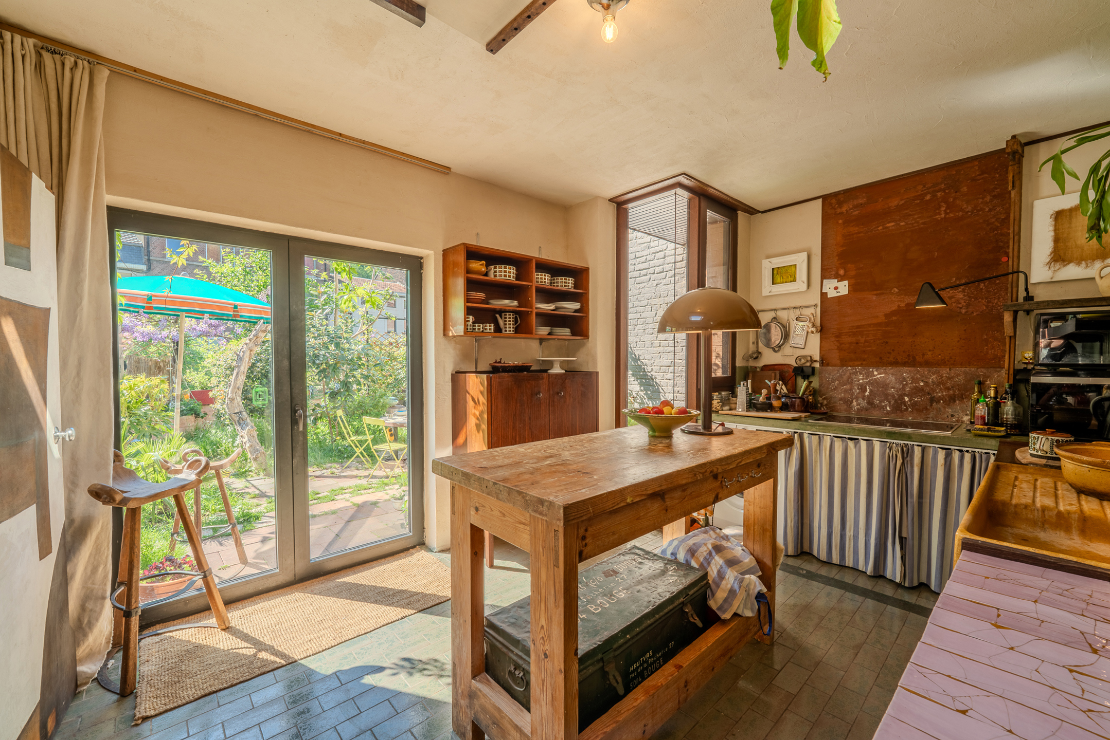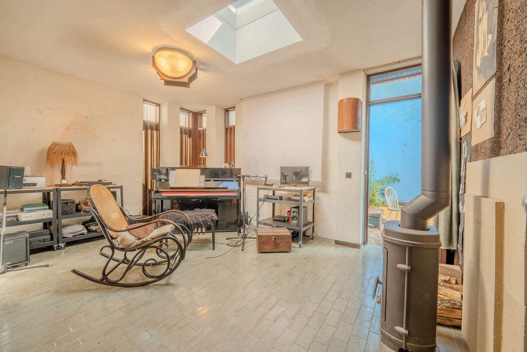 Le bien se compose comme suit : un hall d’entrée aménagé en espace bureau, un séjour lumineux, une cuisine, ainsi qu’un vaste hall de nuit desservant trois chambres, une salle de douche et un WC séparé. La maison dispose de quatre entrées distinctes, situées de chaque côté de la propriété, offrant ainsi diverses possibilités d’usage, au-delà de la fonction résidentielle.