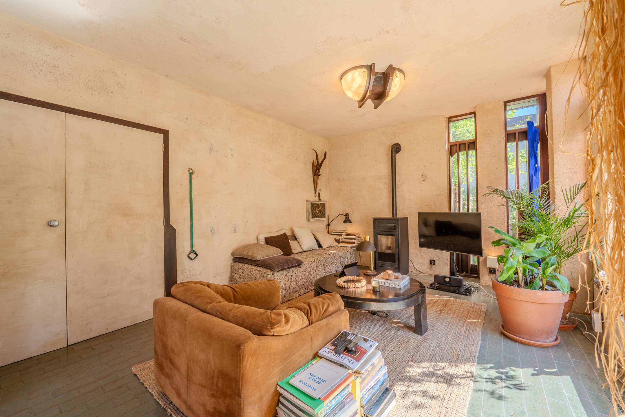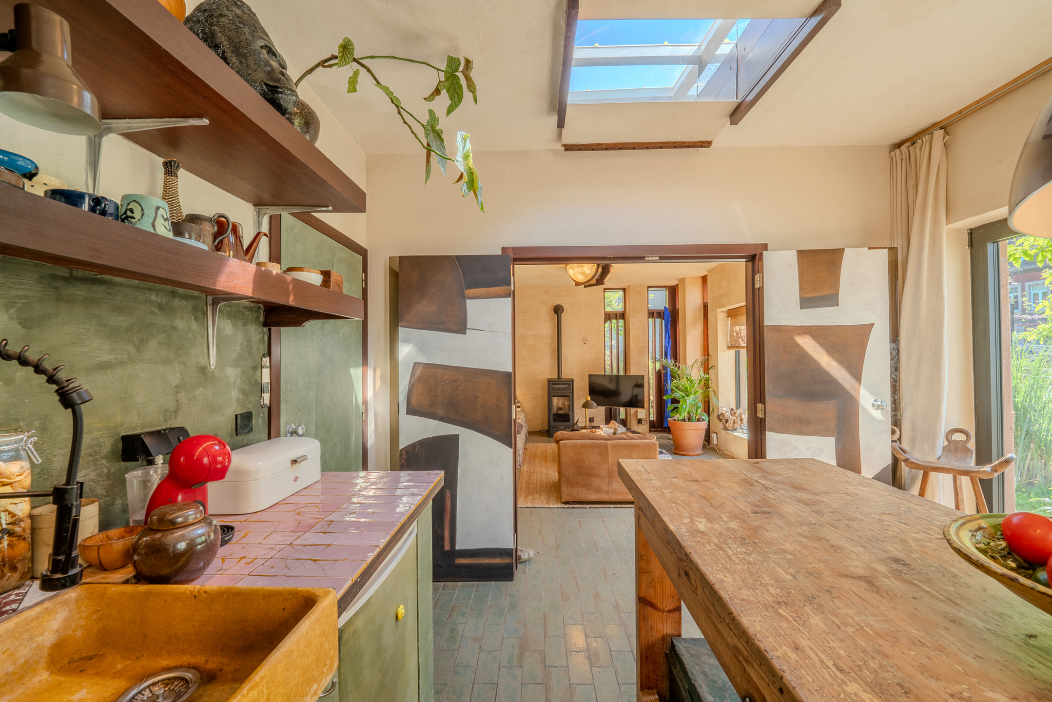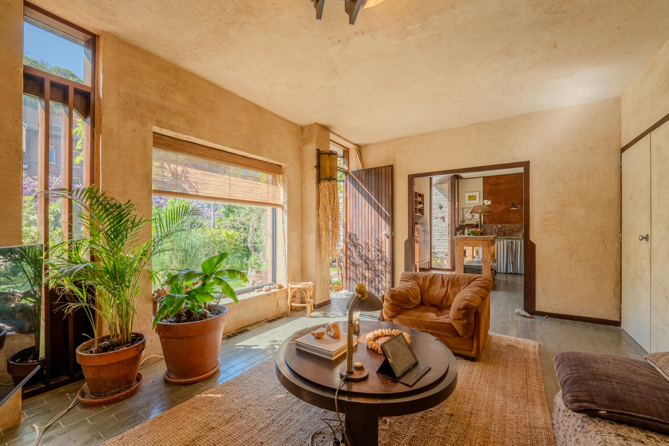 Le bien se compose comme suit : un hall d’entrée aménagé en espace bureau, un séjour lumineux, une cuisine, ainsi qu’un vaste hall de nuit desservant trois chambres, une salle de douche et un WC séparé. La maison dispose de quatre entrées distinctes, situées de chaque côté de la propriété, offrant ainsi diverses possibilités d’usage, au-delà de la fonction résidentielle.