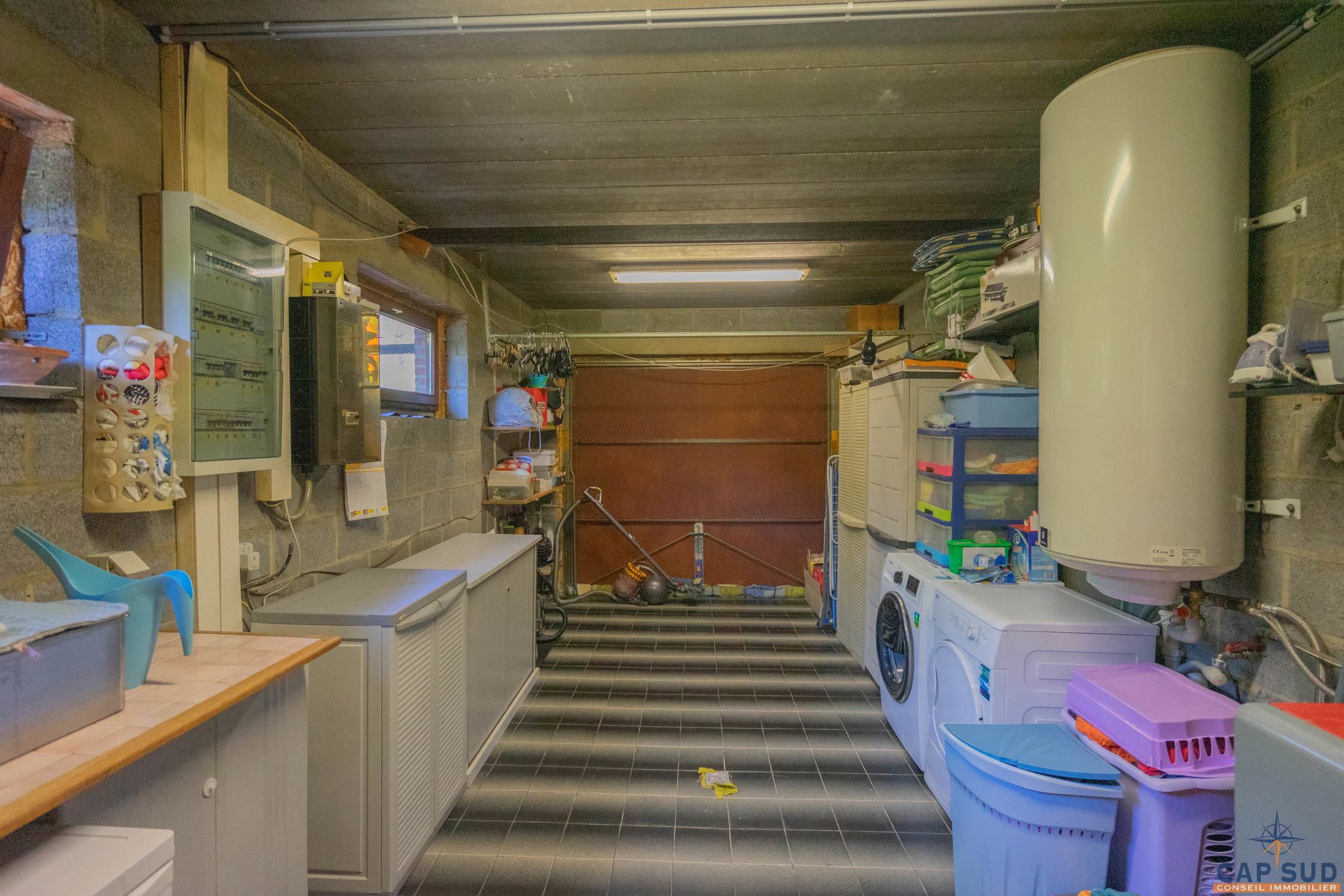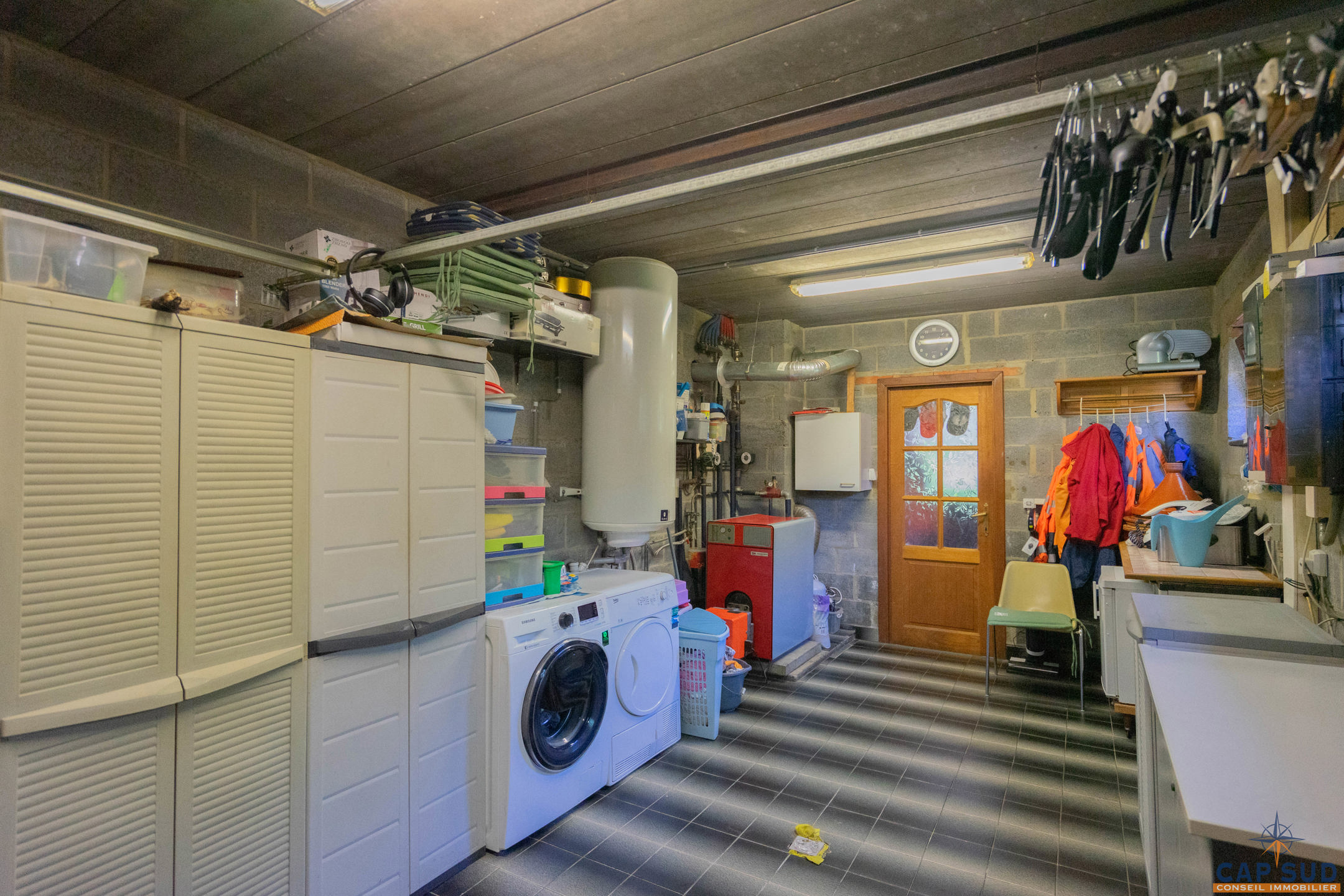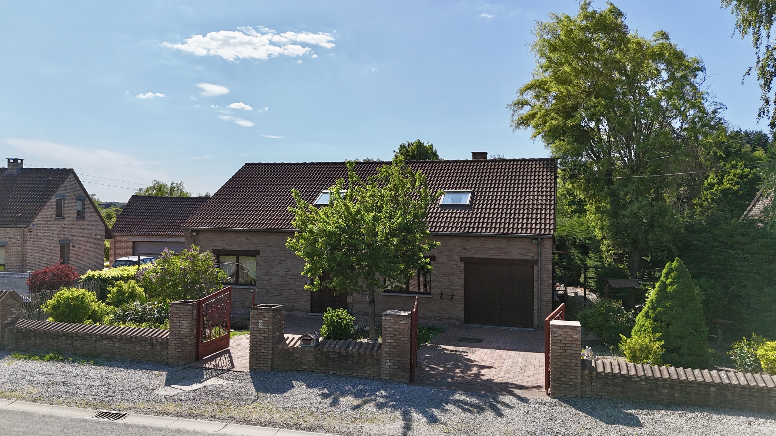 Le bien dispose également d’un garage pratique, d’un système de chauffage central au mazout avec chaudière de 1993, complété par un poêle à pellets dans le séjour. Les châssis sont en bois avec double vitrage, et la toiture en tuiles est en excellent état. Cette villa est équipée d’une citerne d’eau de pluie, est entièrement raccordée aux égouts, et possède un revenu cadastral de 1.337€. L’installation électrique est à mettre en conformité. PEB : classe D– valable jusqu’au 02/05/2035.