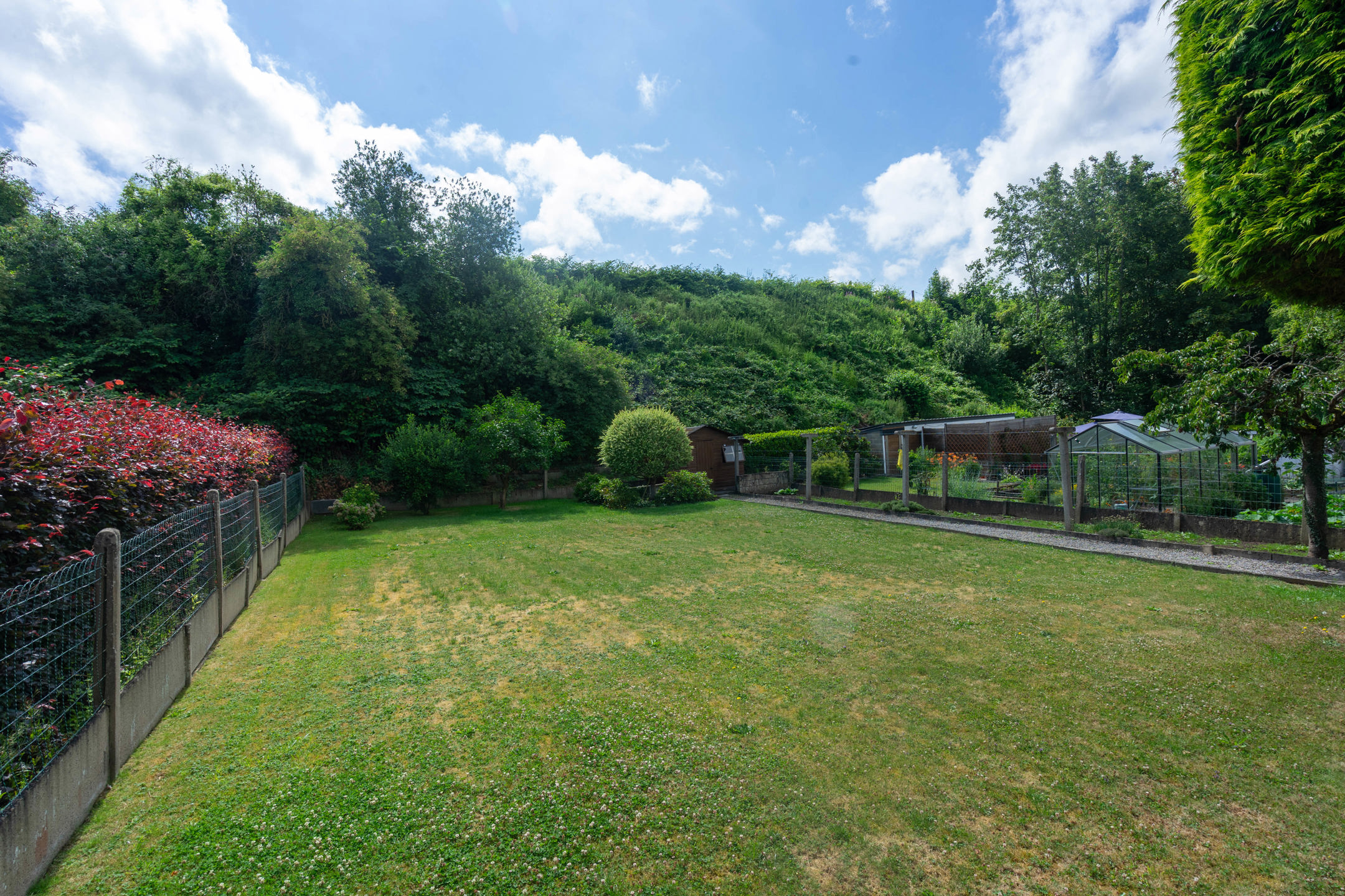 Le terrain plat de 7 ares 29 centiares, exposé sud-ouest, offre un beau potentiel pour un espace extérieur convivial.