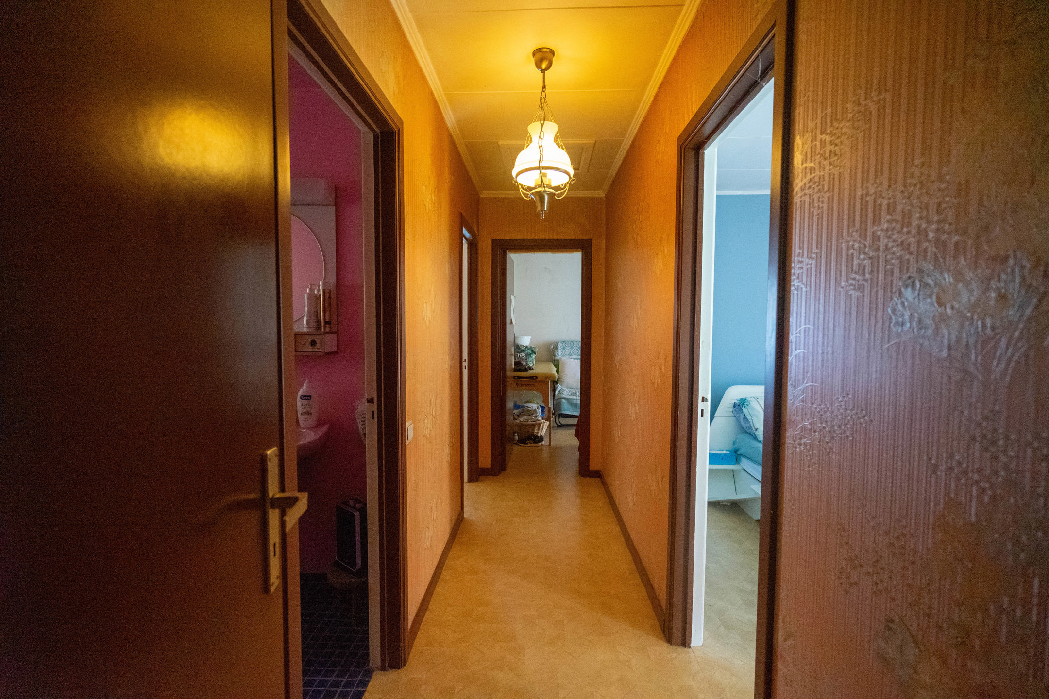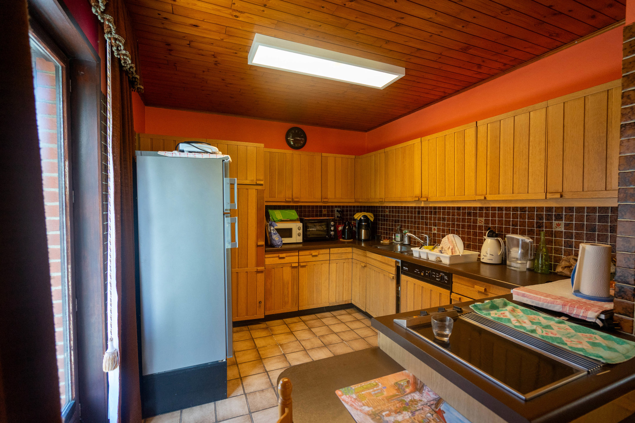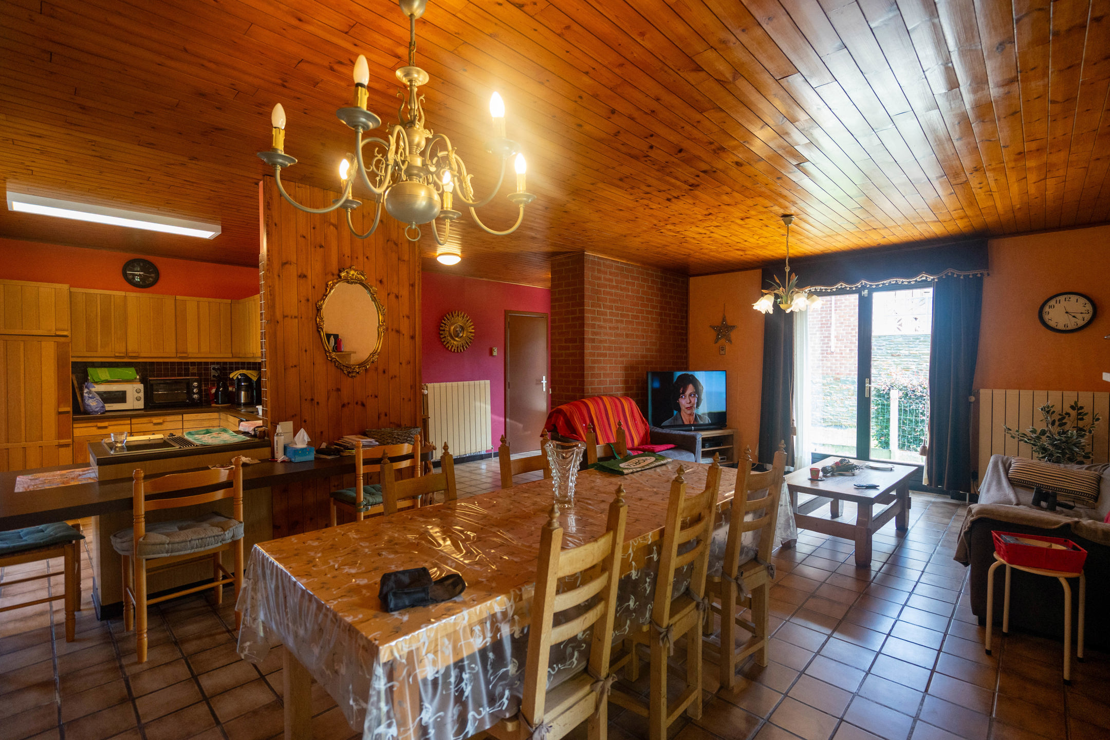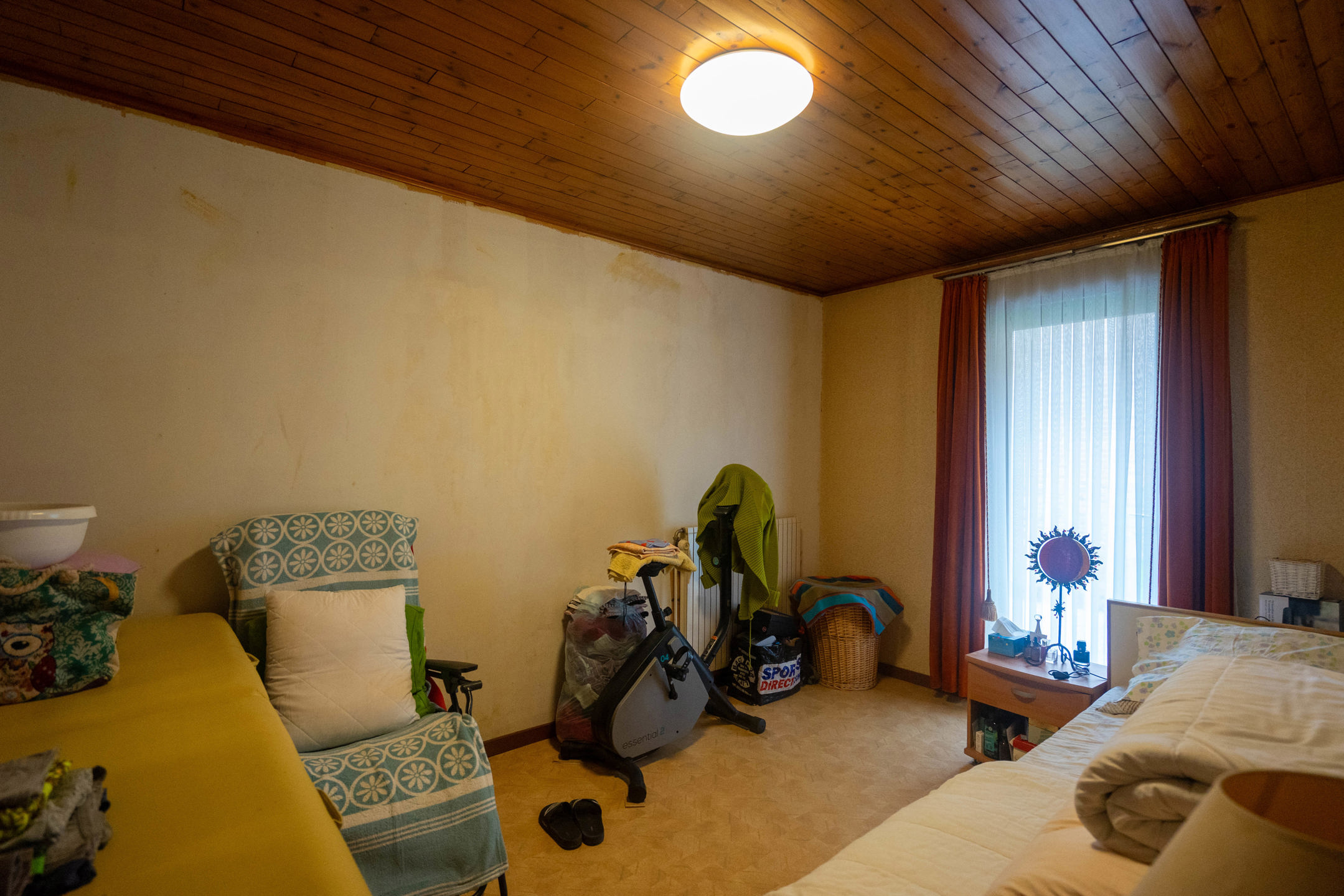 La maison se compose d’un hall d’entrée menant à un lumineux séjour avec salle à manger, d’une cuisine. Le hall de nuit dessert trois chambres (12,5m² – 14m² – 12m²), une salle de douche, un WC séparé. Sous sol : Caves – vides ventilés et garage ( non accessible en voiture)
