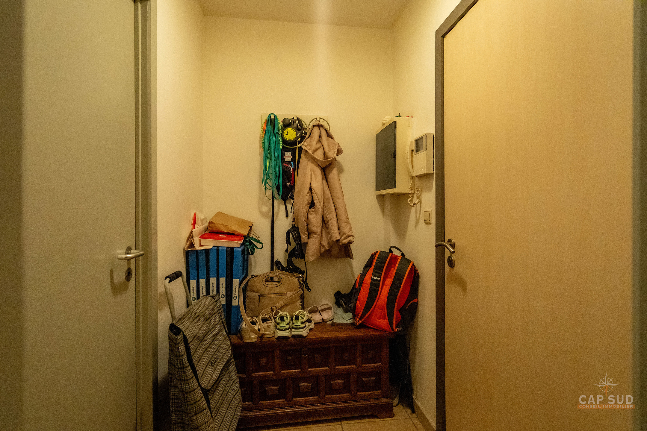 Le studio est composé d’une pièce principale de +/- 32 m2 regroupant une cuisine semi-équipée, d’un hall d’entrée et d’une salle de douche de +/- 4m2 avec un espace pour machine à laver/séchoir. La pièce de vie donne sur un balcon de +/- 4m2 orienté SUD.