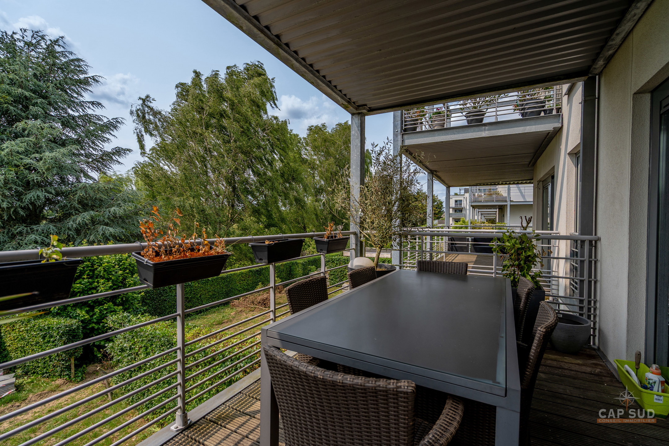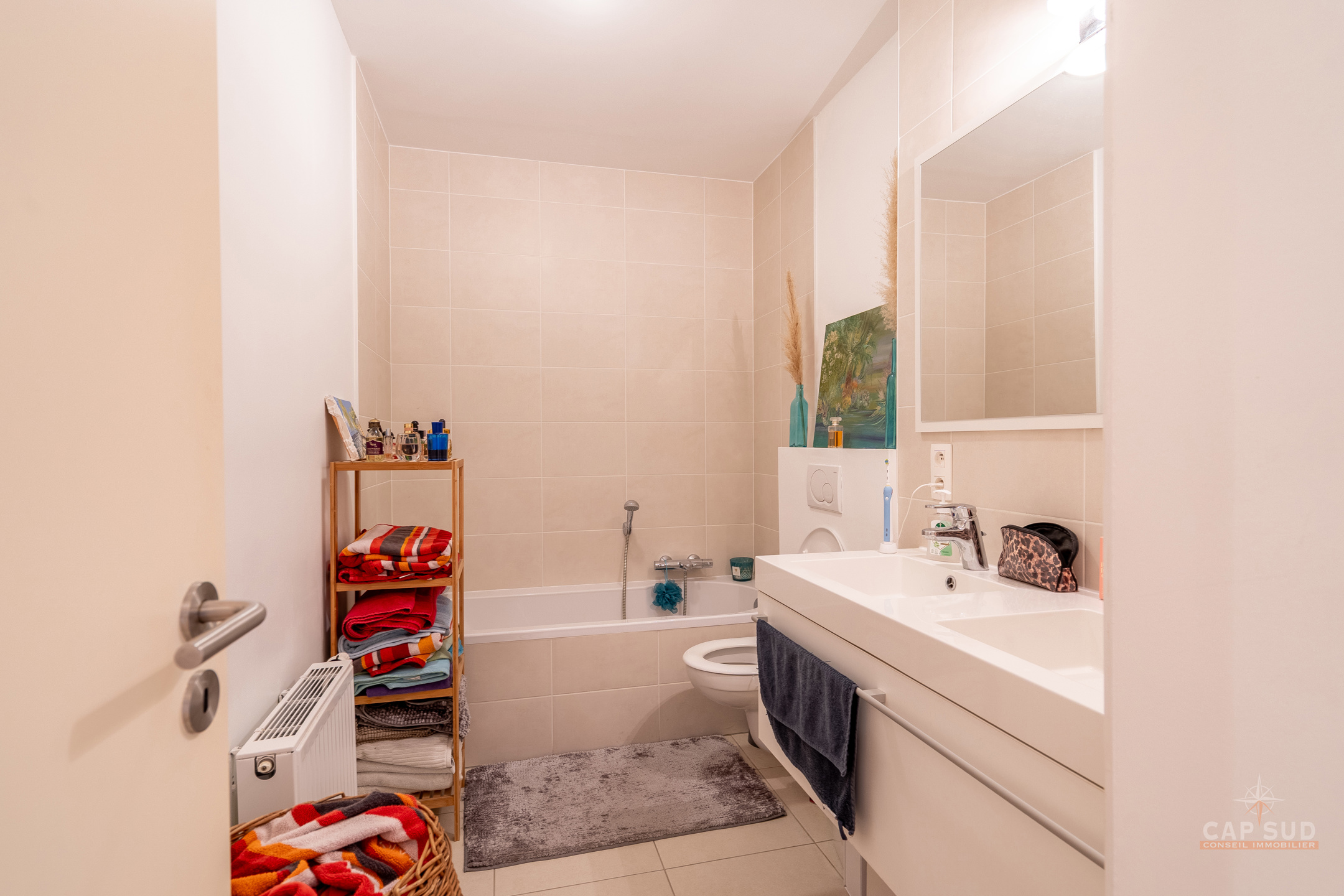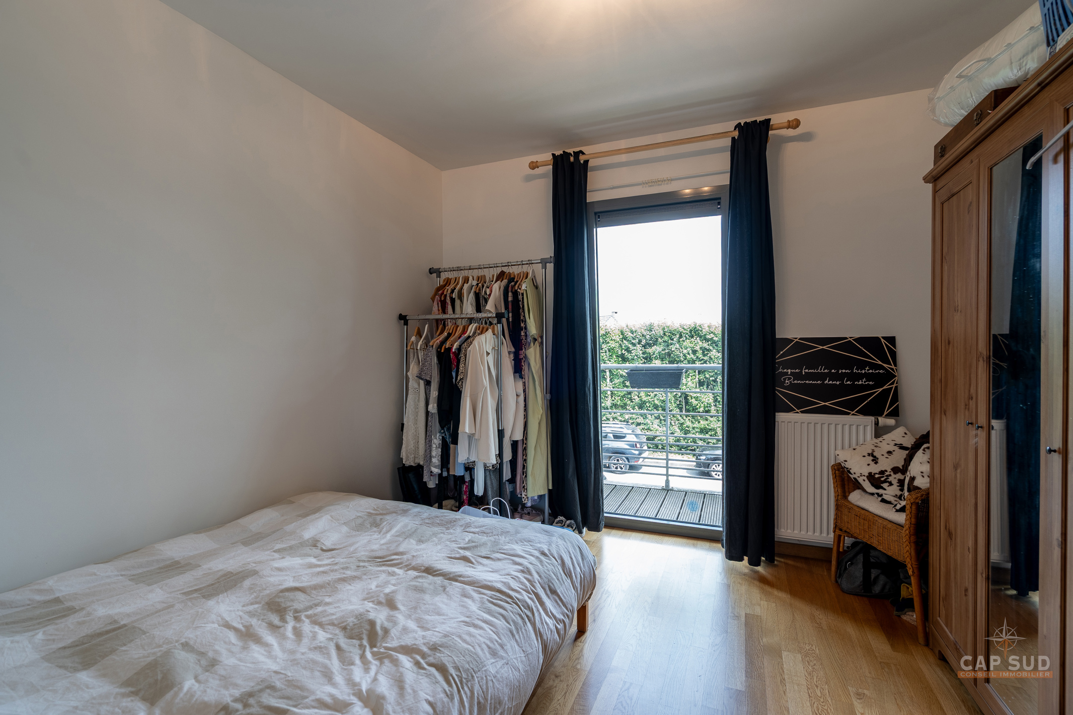 SIGNATURE DE BAIL EN COURS WATERLOO. Cap-Sud vous propose un appartement de 2011 « Les jardins de Wellington », limite Braine-L’Alleud, proche des commerces et des axes routiers. Il se compose d’un hall d’entrée avec placard, un WC séparé + LV, un lumineux séjour/salle à manger avec une cuisine ouverte super-équipée pour une superficie de +-45 m2 donnant sur une terrasse de +-10m2 (Ouest),
