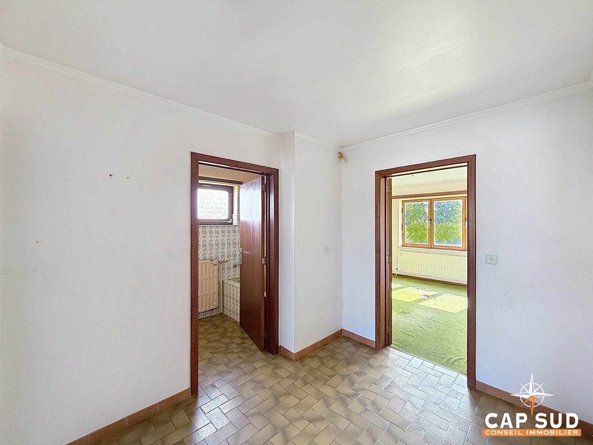 Cap Sud Namur vous propose cette villa 4 façades idéalement située à Buzet, dans la commune de Floreffe. Érigée sur un terrain de 13 ares orienté Est, sans aucun vis-à-vis, cette propriété offre un beau potentiel d’aménagement dans un environnement paisible et verdoyant. Dès l’entrée, vous serez accueilli par un spacieux hall avec WC séparé. Le rez-de-chaussée propose un vaste espace de vie comprenant un séjour lumineux et une salle à manger conviviale, prolongés par une spacieuse cuisine avec coin repas et un accès direct vers l’extérieur. Un demi-niveau plus haut, accessible via quelques marches, se trouve le hall de nuit desservant trois chambres ainsi qu’une salle de bain.