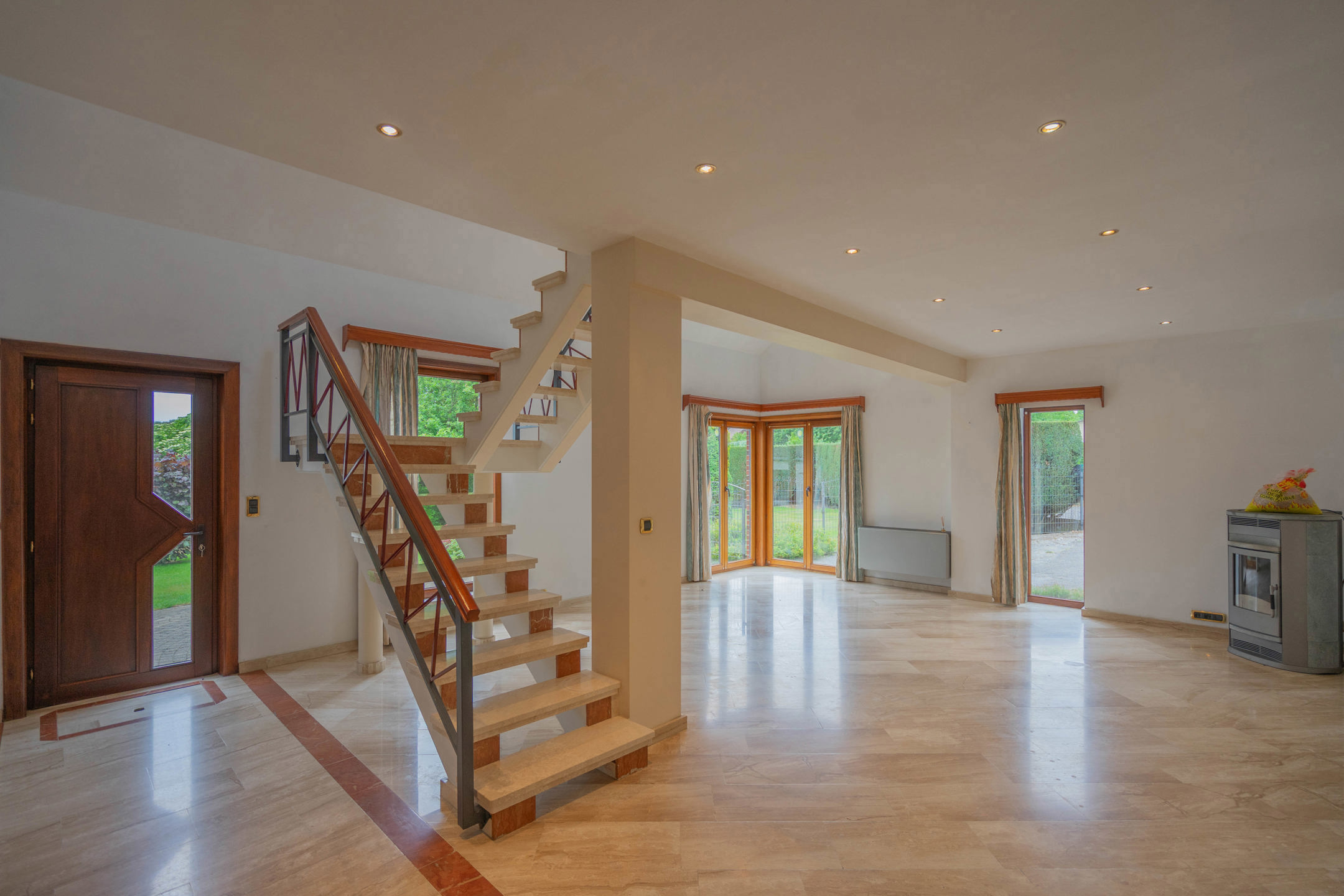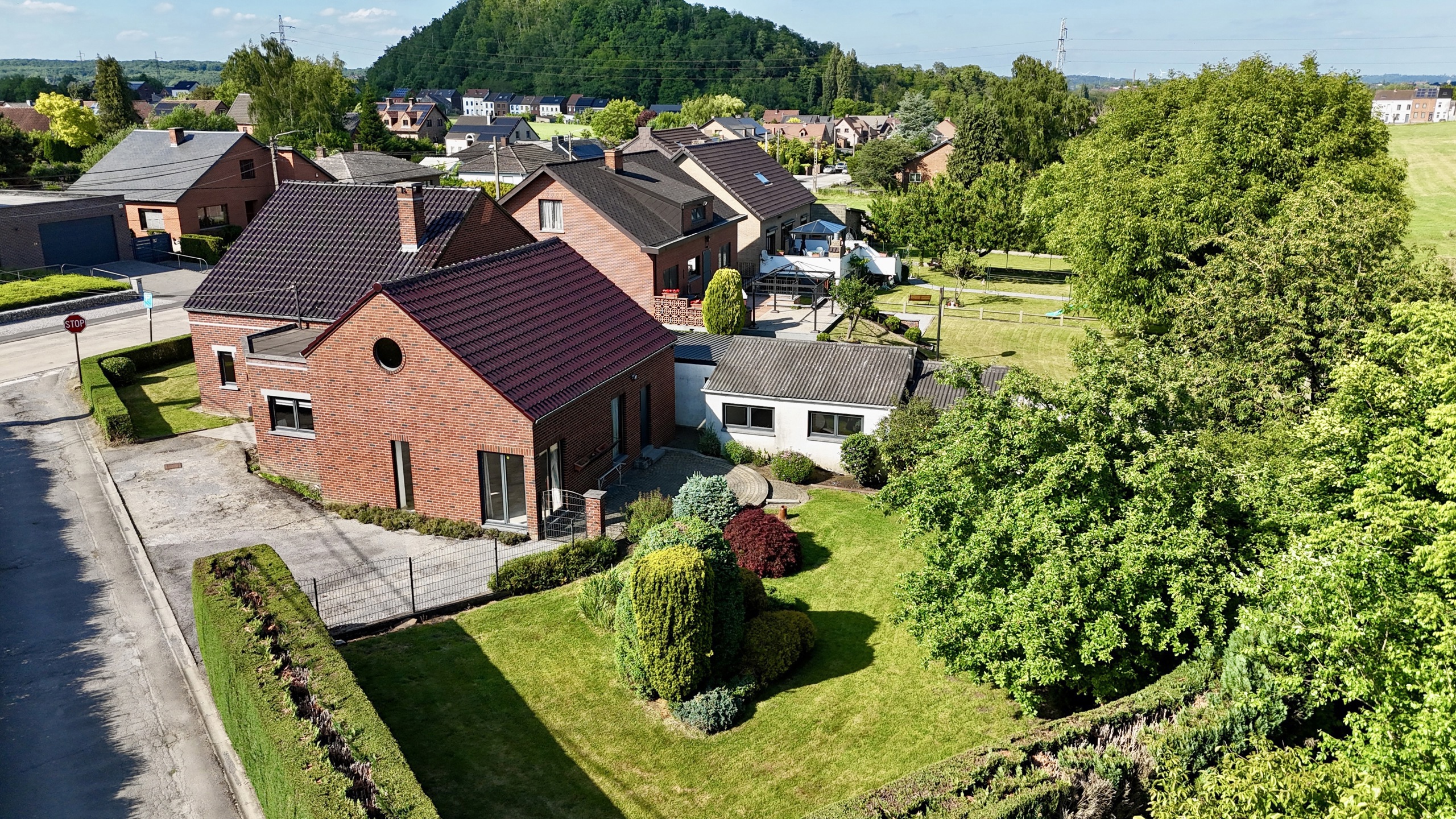 Cap Sud Namur vous propose cette spacieuse maison familiale située à Roselies, sur un terrain de ± 11 ares orienté plein Sud, dans un environnement calme et verdoyant, tout en restant à proximité des commodités. Le bien se compose comme suit : au rez-de-chaussée, un hall d’entrée accueillant avec cage d’escalier desservant deux chambres ainsi qu’une salle de bain à rénover. En contrebas, vous découvrirez un vaste séjour lumineux avec une mezzanine apportant cachet et volume, un espace de rangement, ainsi qu’une grande cuisine équipée, parfaite pour les repas en famille ou entre amis. À l’étage, le palier donne accès à deux chambres spacieuses et un bureau, idéales pour une grande famille ou pour aménager un bureau à domicile. L’extérieur ne manque pas d’atouts : une chaufferie, un garage pouvant être aménagé en atelier, ainsi qu’une annexe indépendante composée d’un séjour, d’une cuisine, de deux petites chambres et d’une salle de douche. Un espace idéal pour accueillir un membre de la famille ou envisager une profession libérale. Des emplacements de parking sont également disponibles à l’avant de la maison. Côté technique : châssis en bois double vitrage, chauffage central au mazout, électricité non conforme. Le PEB est de classe F valable jusqu’au 25/06/2035