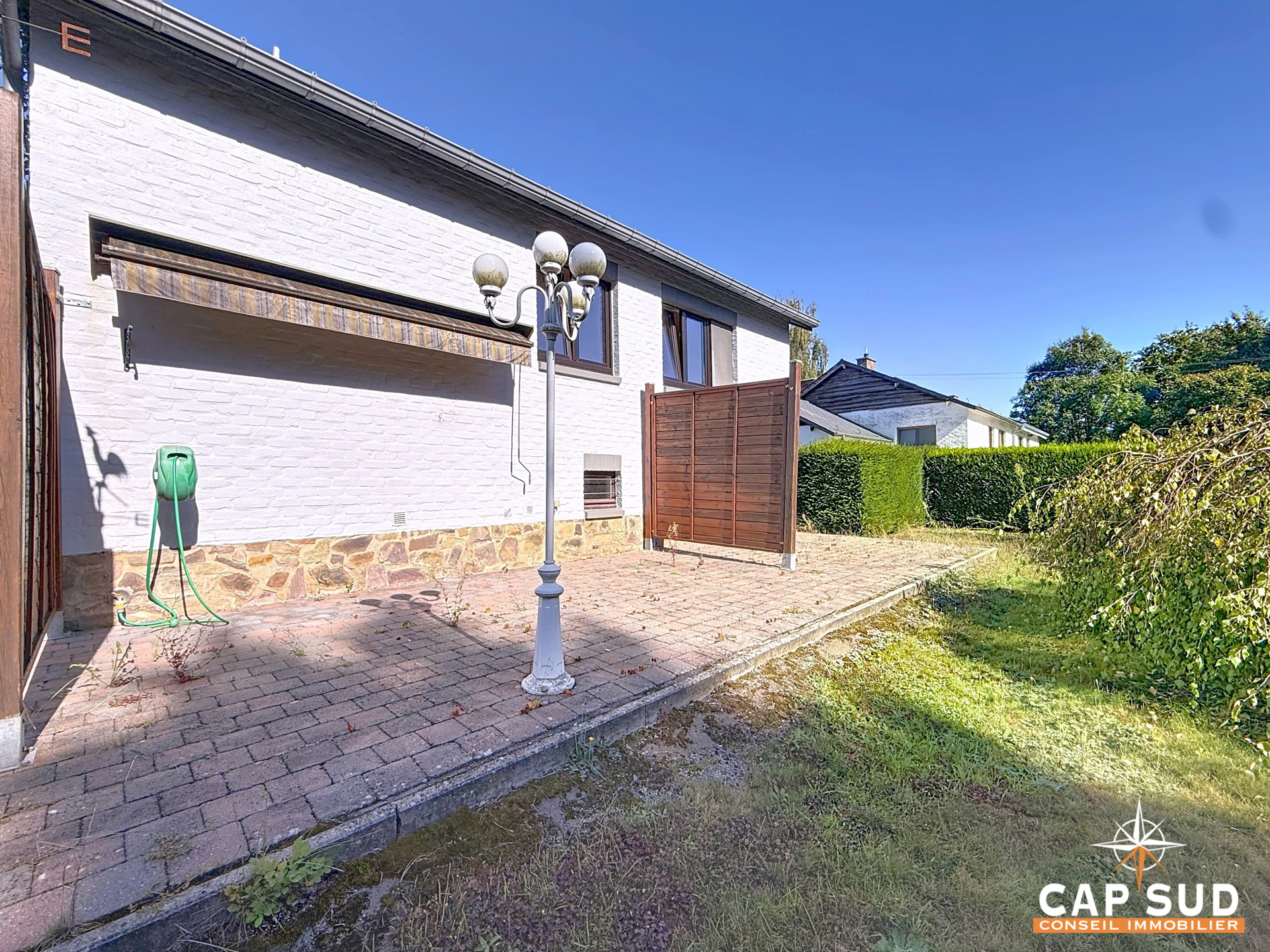 Cap Sud Namur vous propose une villa située dans un quartier calme et résidentiel de Vedrin à proximité des facilités. Composition : Hall d’entrée, cuisine équipée, séjour avec cheminée, salle de douche, palier et 2 chambres. La maison dispose de caves et d’un garage ainsi que d’une remise. Le bien dispose d’un jardin de 5a 38 ca avec une terrasse. Nouvelle chaudière au mazout, châssis en PVC avec double vitrage et partie en bois, citerne à eau de pluie avec groupe hydrophore, électricité non conforme. Grenier aménageable. Faire offre à partir de 299 000€ sous réserve d’acceptation du propriétaire. PEB F.