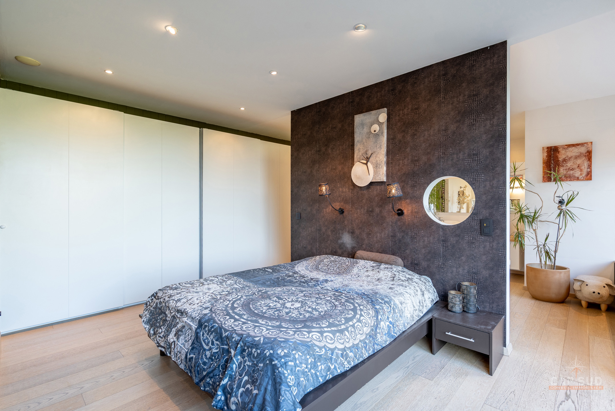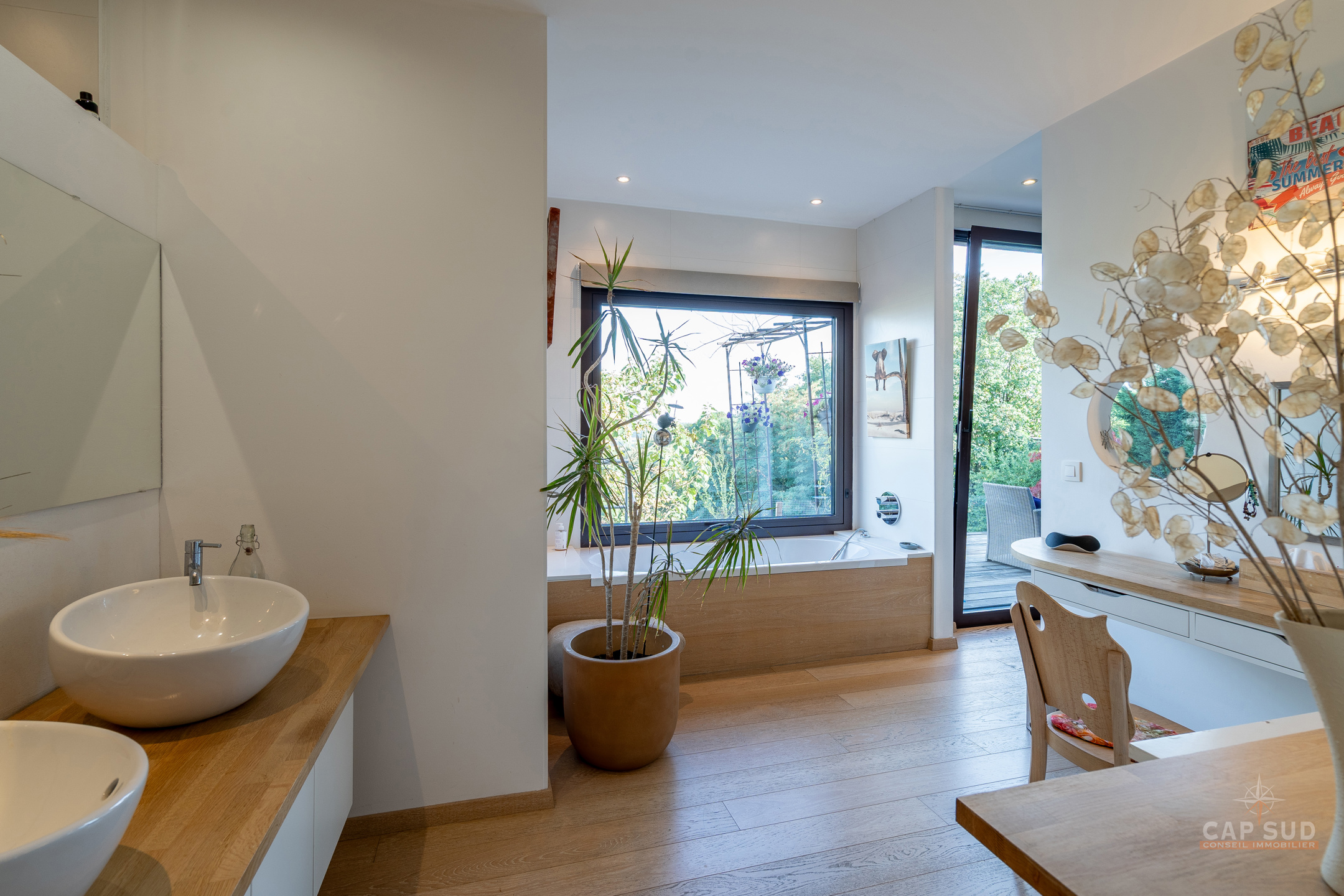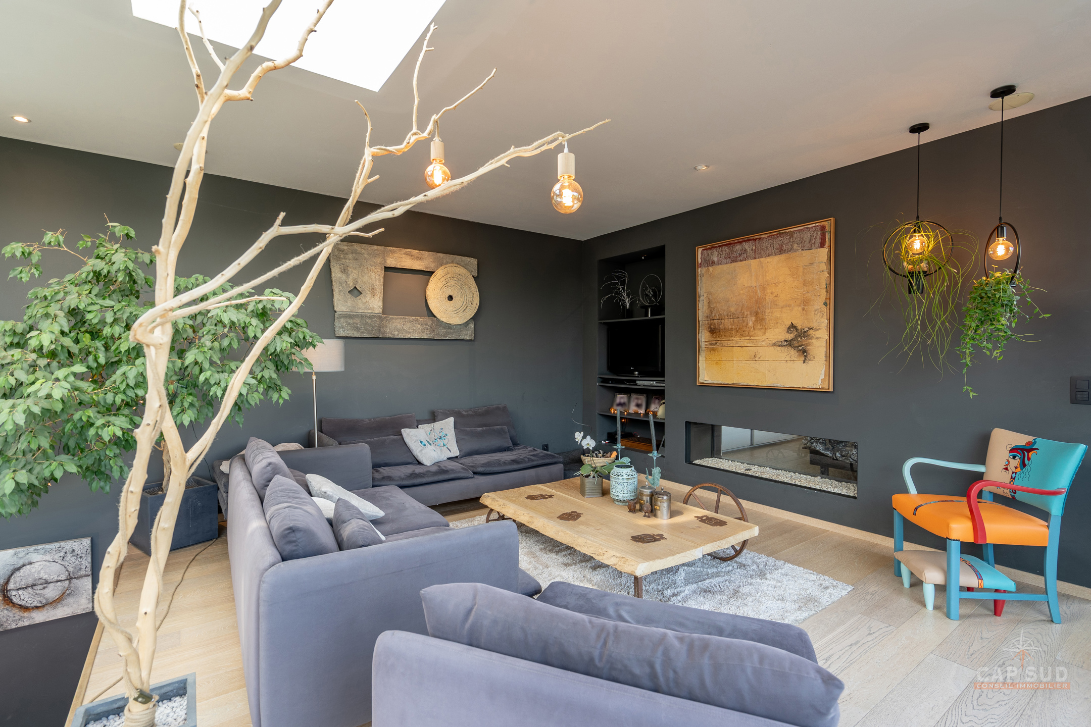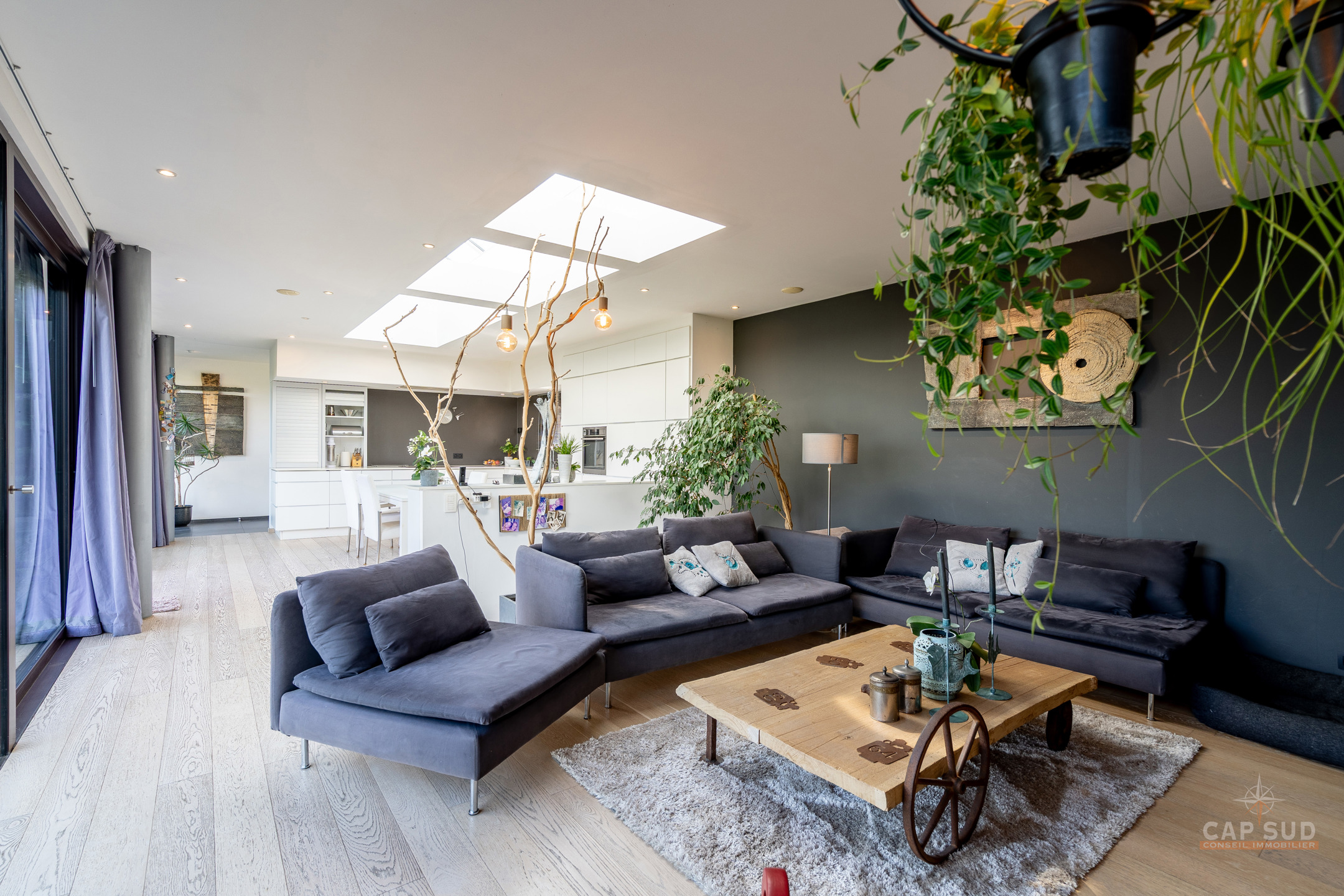 Dans la commune de Ittre, Cap Sud vous présente cette splendide villa d’architecte 4 façades bâtie en 2014 développant environ 445 m² bruts dont 365 m² habitables sur un terrain de 9 ares 50. Bâtie en bois massif et édifiée sur pilotis, elle séduit par son originalité, ses volumes baignés de lumière et sa façade arrière largement vitrée offrant une vue imprenable sur la campagne. Dès l’entrée, un hall avec espace vestiaire et WC séparé mène d’un côté vers le garage double et de l’autre vers un vaste espace de vie. Celui-ci se compose d’une cuisine ouverte avec coin repas et d’un salon convivial agrémenté d’un poêle à gaz, le tout prolongé par une terrasse donnant sur le jardin et la vallée. À ce même niveau se trouve une chambre parentale avec sa salle de bains complète comprenant baignoire, douche, sauna et WC séparé, véritable espace bien-être avec accès direct à l’extérieur où se trouve le jacuzzi.
