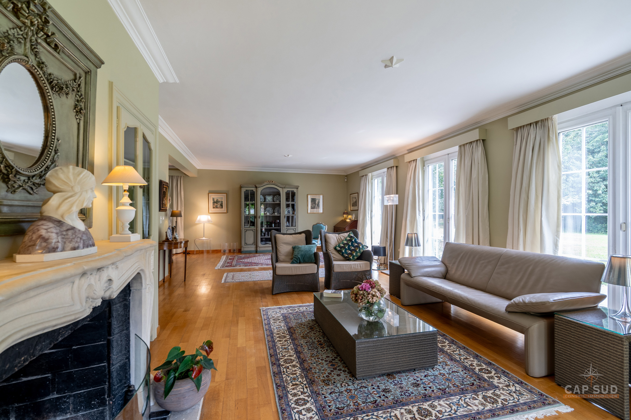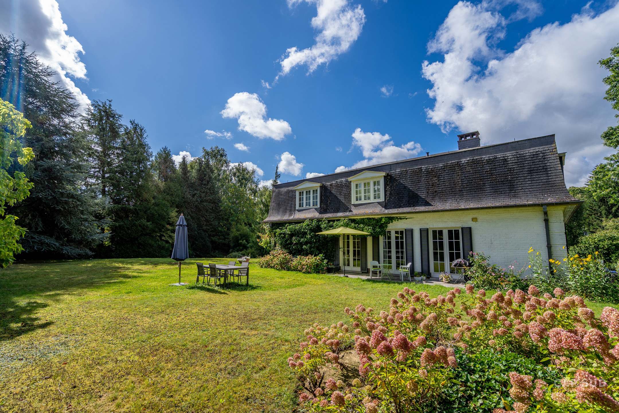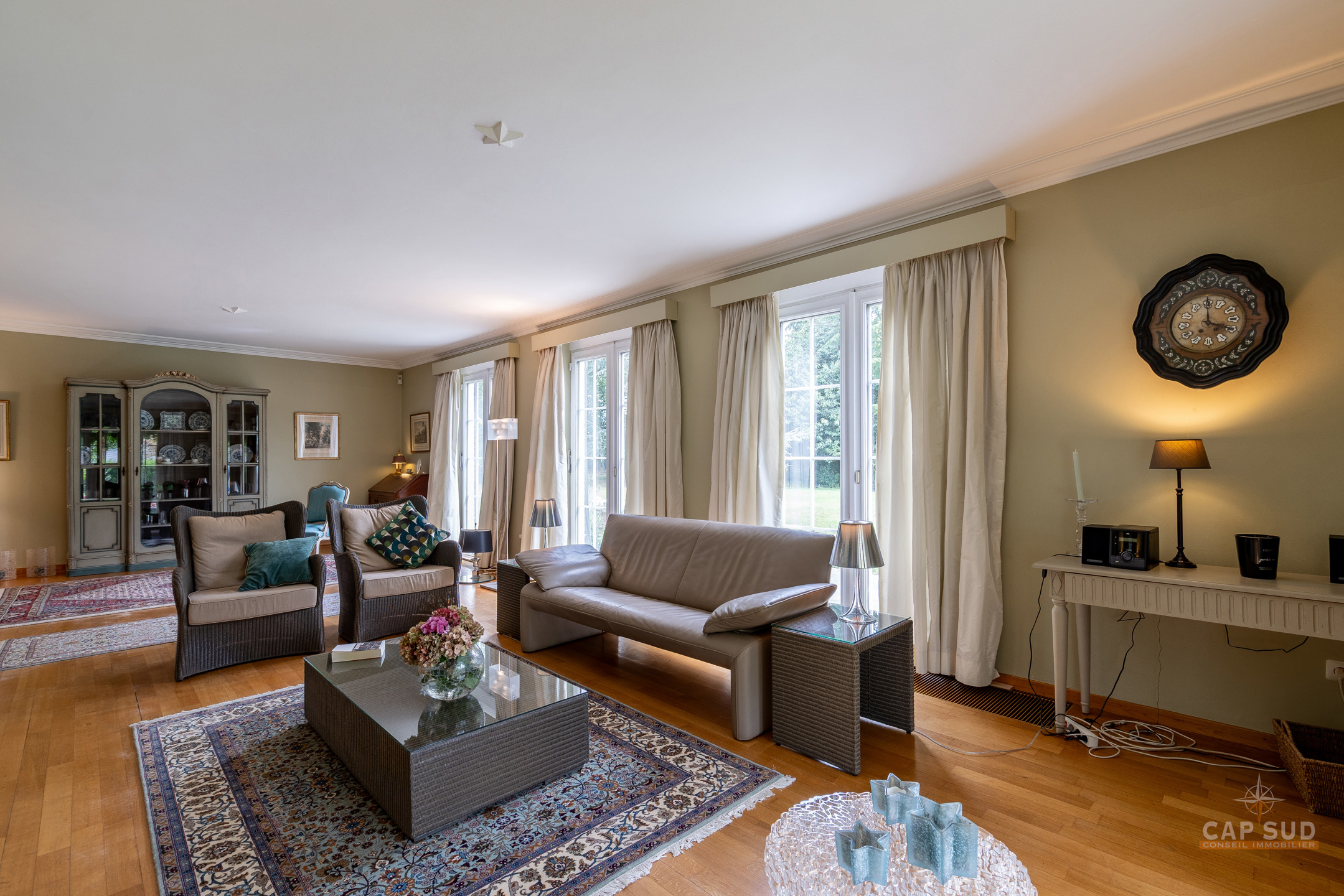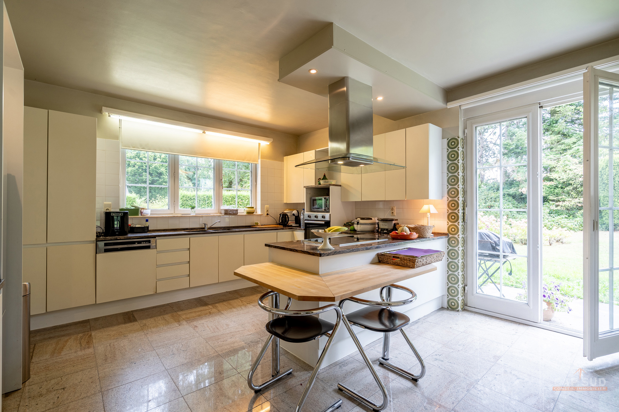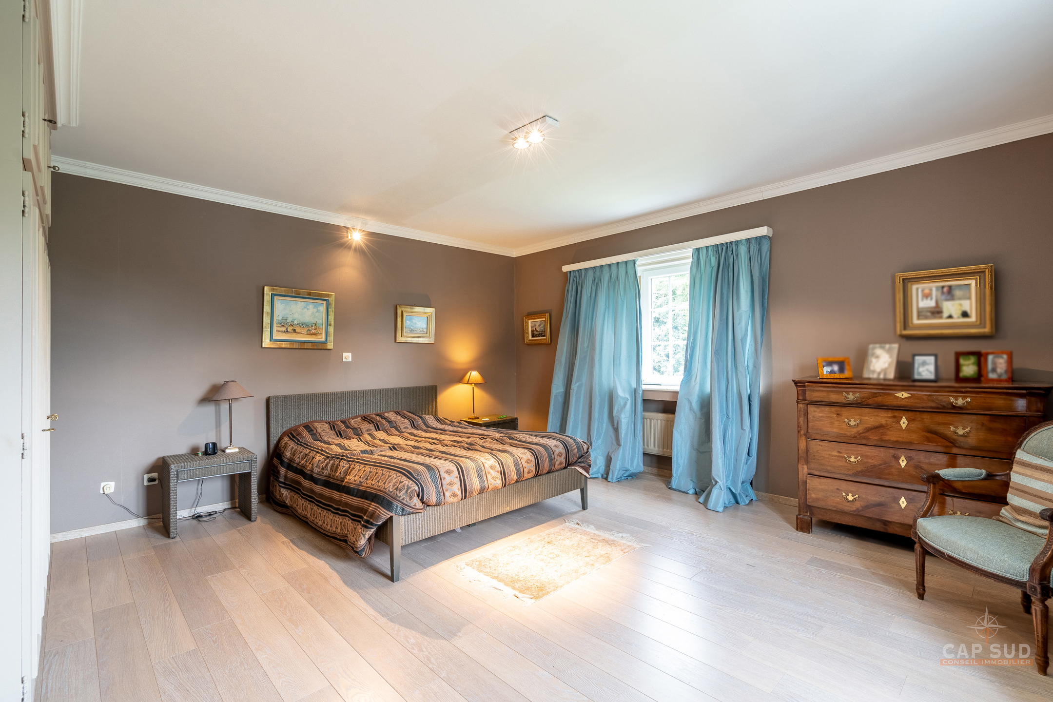 Dans un clos résidentiel calme et arboré, CAP SUD vous propose cette ravissante propriété de 500m2 (dont 300m2 habitables) sise sur un splendide terrain de 30ares à l’abris des regards. Au rez-de-chaussée, vous trouverez un vaste hall d’entrée de 18m2, un lumineux living en L de 70m2 avec FO et plancher massif au sol, une cuisine équipée de 21m2 donnant sur le jardin et un bureau de 22m2. Au 1er étage, le hall de nuit dessert 2 grandes chambres de 17 et 25m2, une salle de douche et une chambre parentale de 32m2 comprenant la chambre, son dressing et sa salle de bains. Sur le même étage, il y a également un appartement de service (avec entrée séparée, accessible de l’extérieur par un escalier) comprenant un living de 21m2 et sa kitchenette (pouvant servir de chambre supplémentaire) et une chambre de 20m2 avec sa propre salle de bains. Grenier de rangement accessible via une trappe. Au sous-sol, la villa est entièrement sous caves et garage pour une superficie de 150m2 – possibilité de garer 4 voitures de belles tailles. Terrasse de 40m2 donnant sur un cadre verdoyant agrémenté d’arbres fruitiers et de multiples essences. Marbre, plancher massif, placards, adoucisseur, portes de garage automatiques, système d’alarme, portail, luminaires extérieurs…Très bonne isolation : PEB C – 217 kWh/an.m2. Vous serez séduits par ses volumes, la qualité des matériaux et la quiétude des lieux à deux pas de Bruxelles. Venez la découvrir !