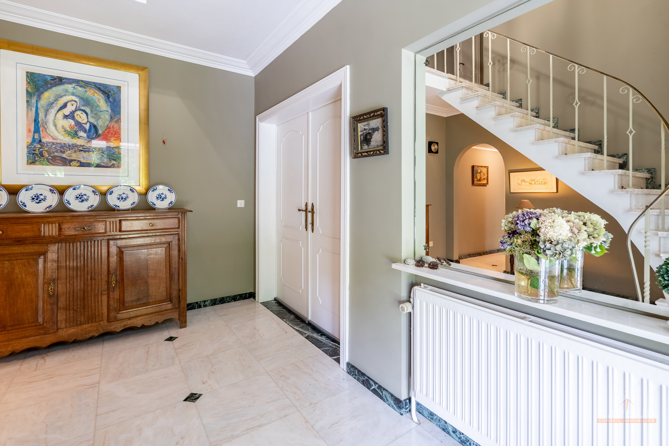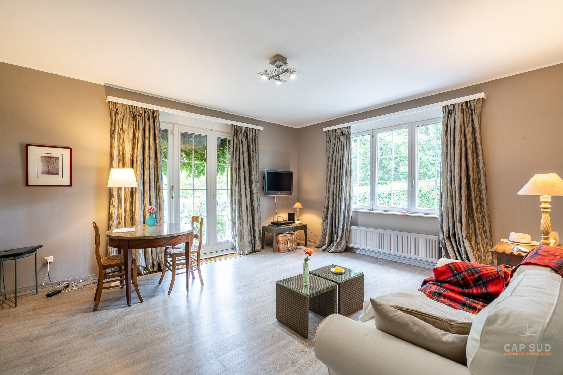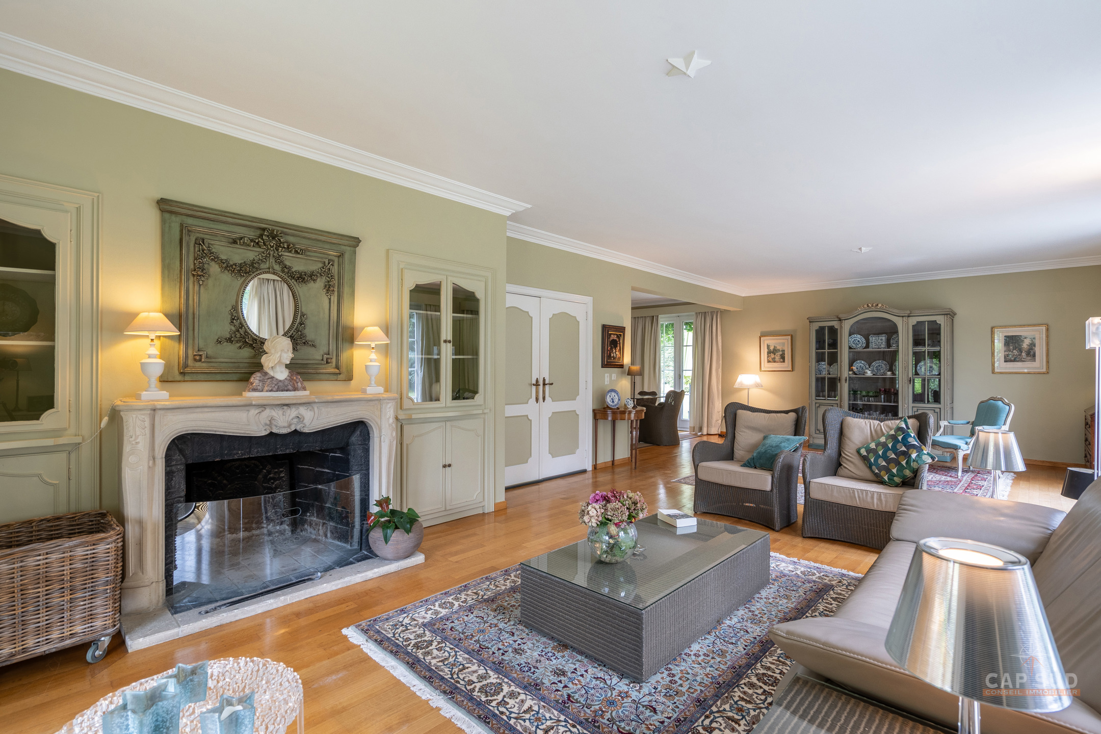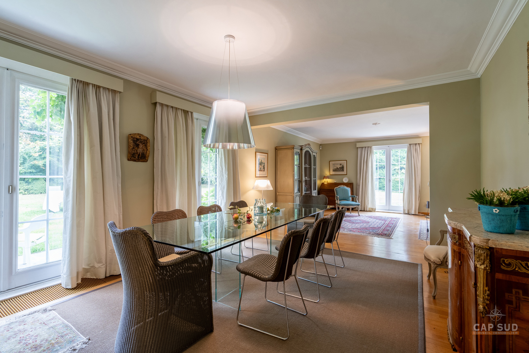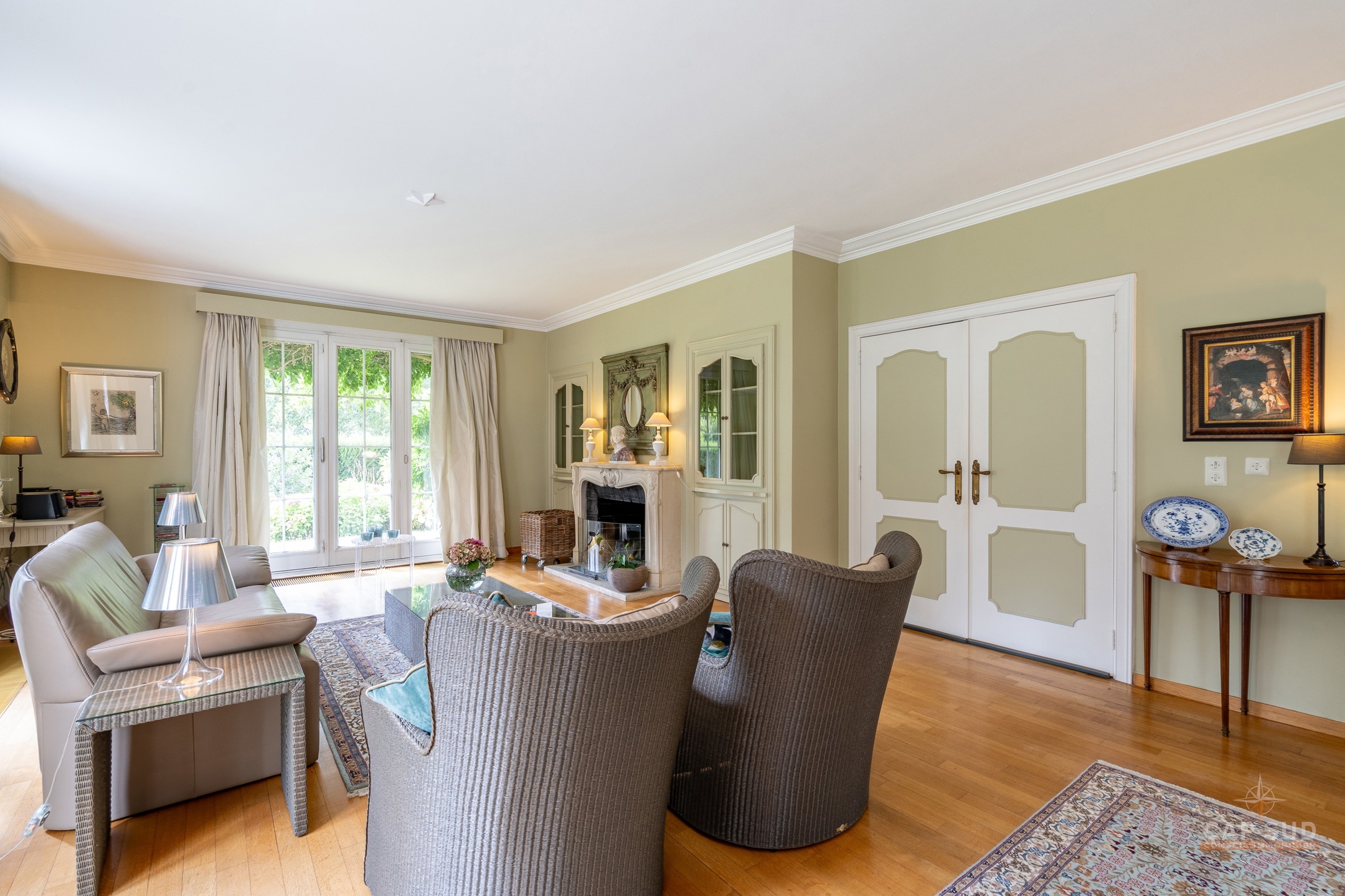 Dans un clos résidentiel calme et arboré, CAP SUD vous propose cette ravissante propriété de 500m2 (dont 300m2 habitables) sise sur un splendide terrain de 30ares à l’abris des regards. Au rez-de-chaussée, vous trouverez un vaste hall d’entrée de 18m2, un lumineux living en L de 70m2 avec FO et plancher massif au sol, une cuisine équipée de 21m2 donnant sur le jardin et un bureau de 22m2. Au 1er étage, le hall de nuit dessert 2 grandes chambres de 17 et 25m2, une salle de douche et une chambre parentale de 32m2 comprenant la chambre, son dressing et sa salle de bains. Sur le même étage, il y a également un appartement de service (avec entrée séparée, accessible de l’extérieur par un escalier) comprenant un living de 21m2 et sa kitchenette (pouvant servir de chambre supplémentaire) et une chambre de 20m2 avec sa propre salle de bains. Grenier de rangement accessible via une trappe. Au sous-sol, la villa est entièrement sous caves et garage pour une superficie de 150m2 – possibilité de garer 4 voitures de belles tailles. Terrasse de 40m2 donnant sur un cadre verdoyant agrémenté d’arbres fruitiers et de multiples essences. Marbre, plancher massif, placards, adoucisseur, portes de garage automatiques, système d’alarme, portail, luminaires extérieurs…Très bonne isolation : PEB C – 217 kWh/an.m2. Vous serez séduits par ses volumes, la qualité des matériaux et la quiétude des lieux à deux pas de Bruxelles. Venez la découvrir !