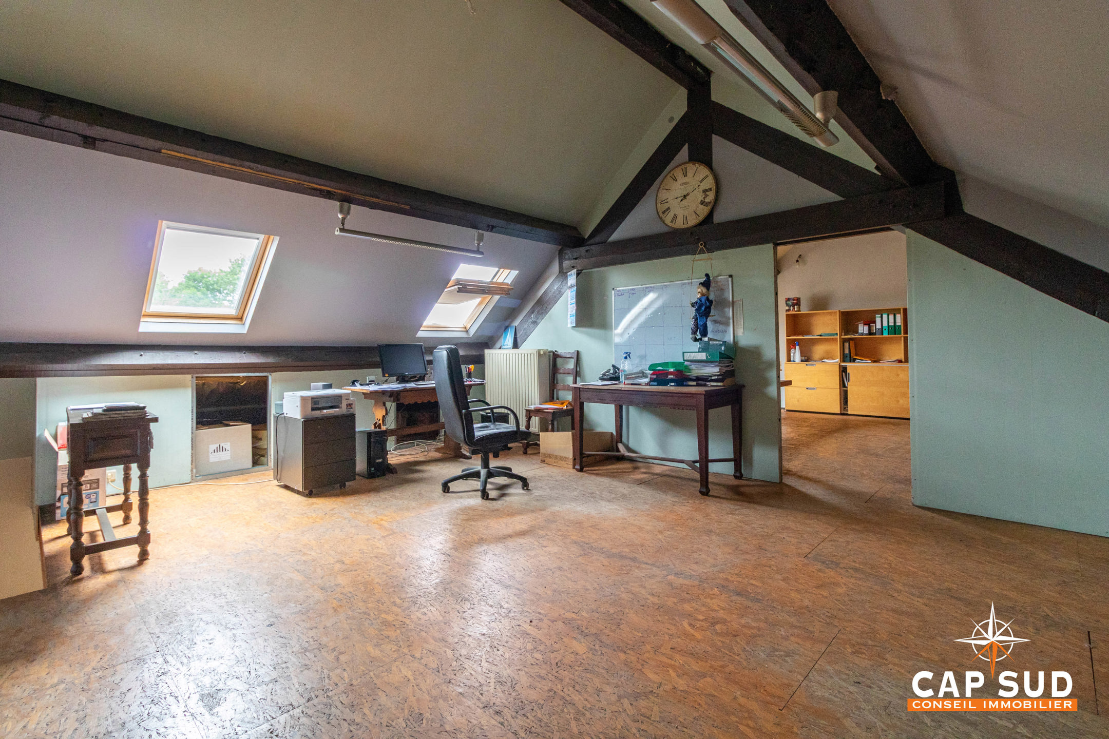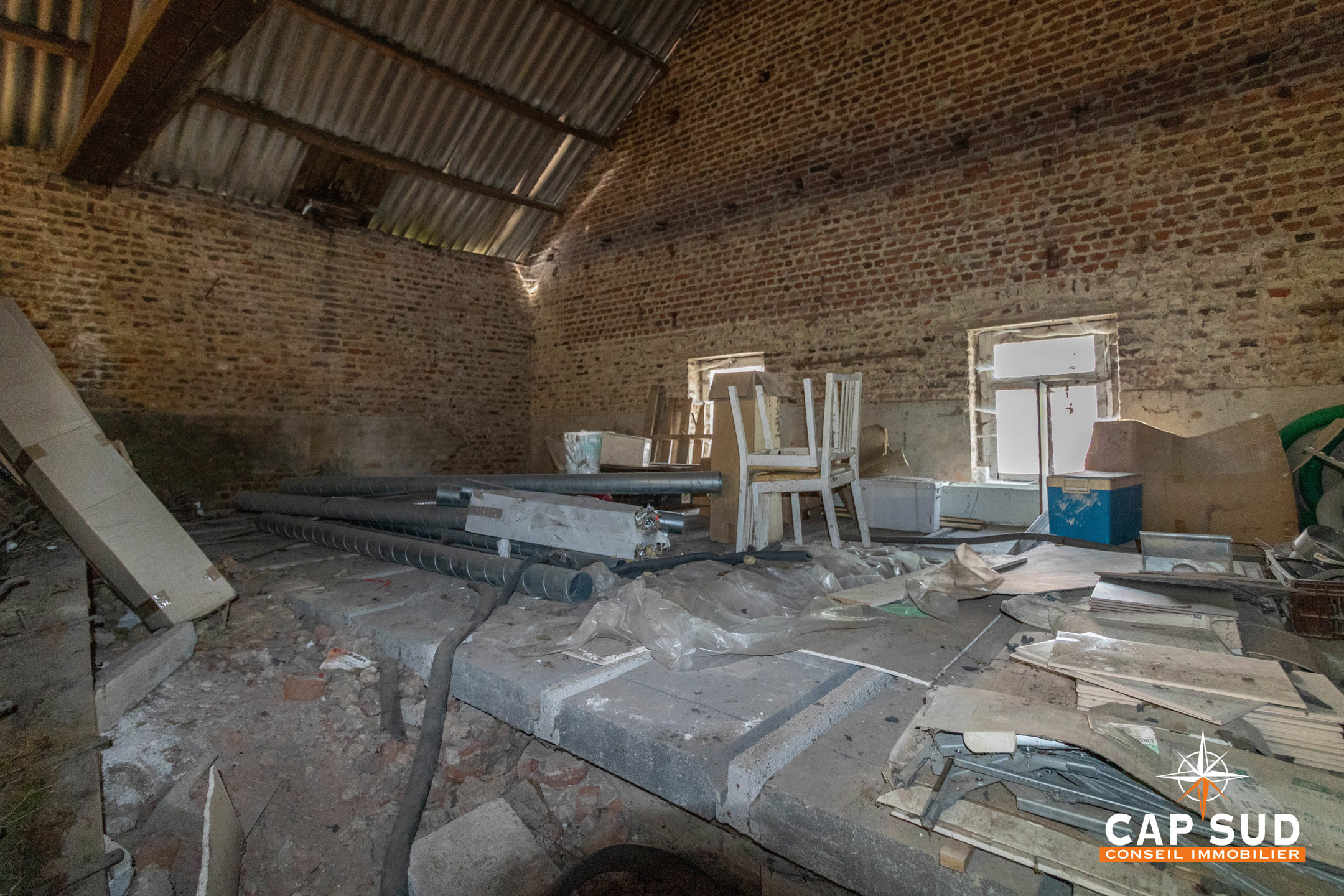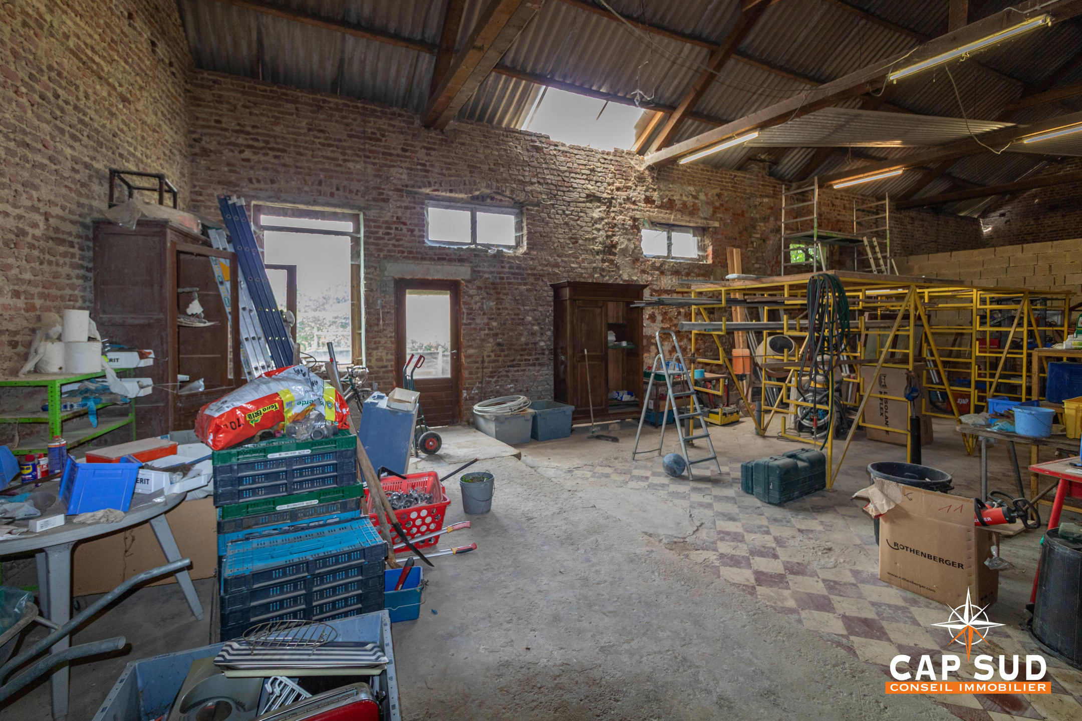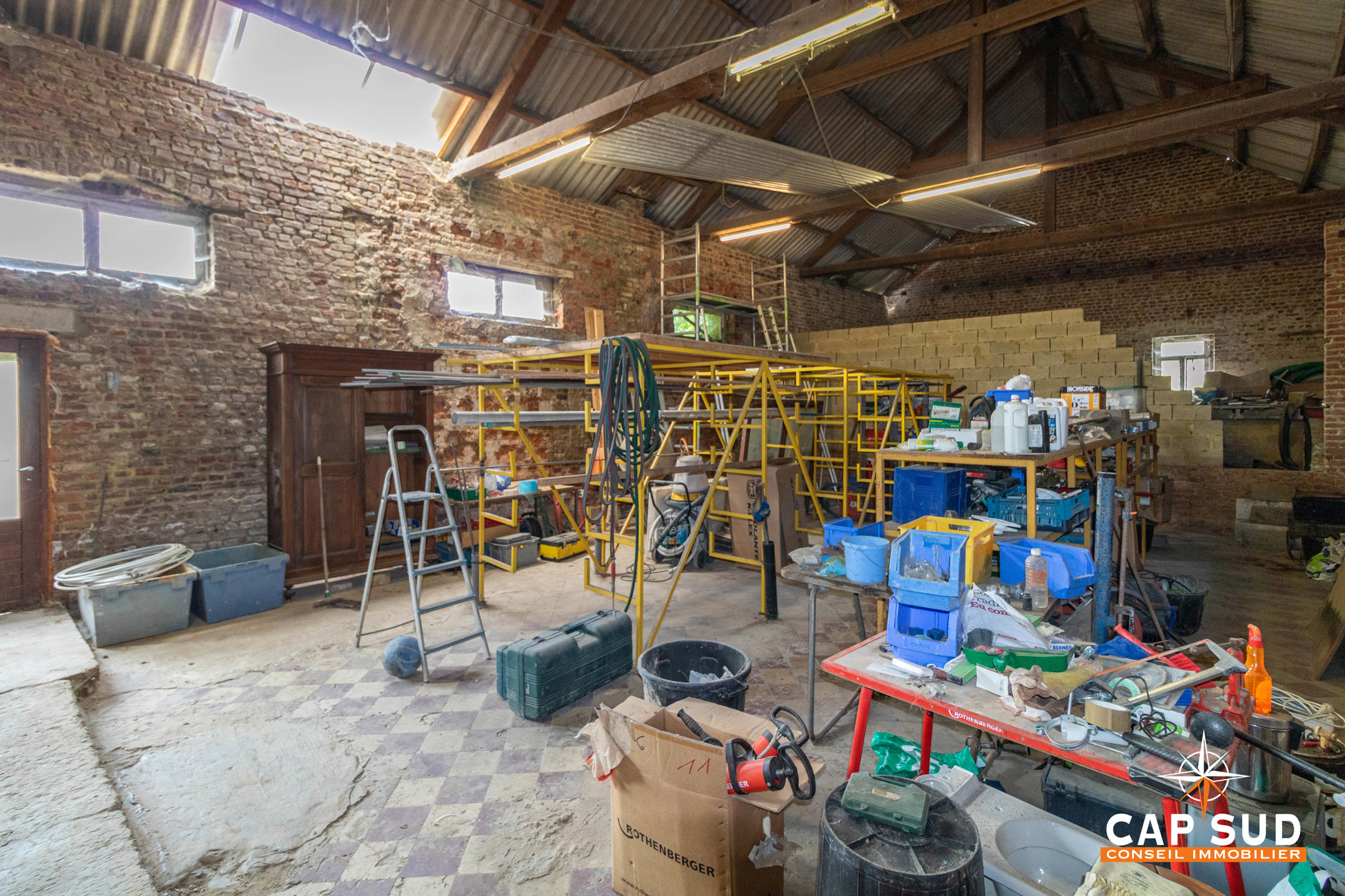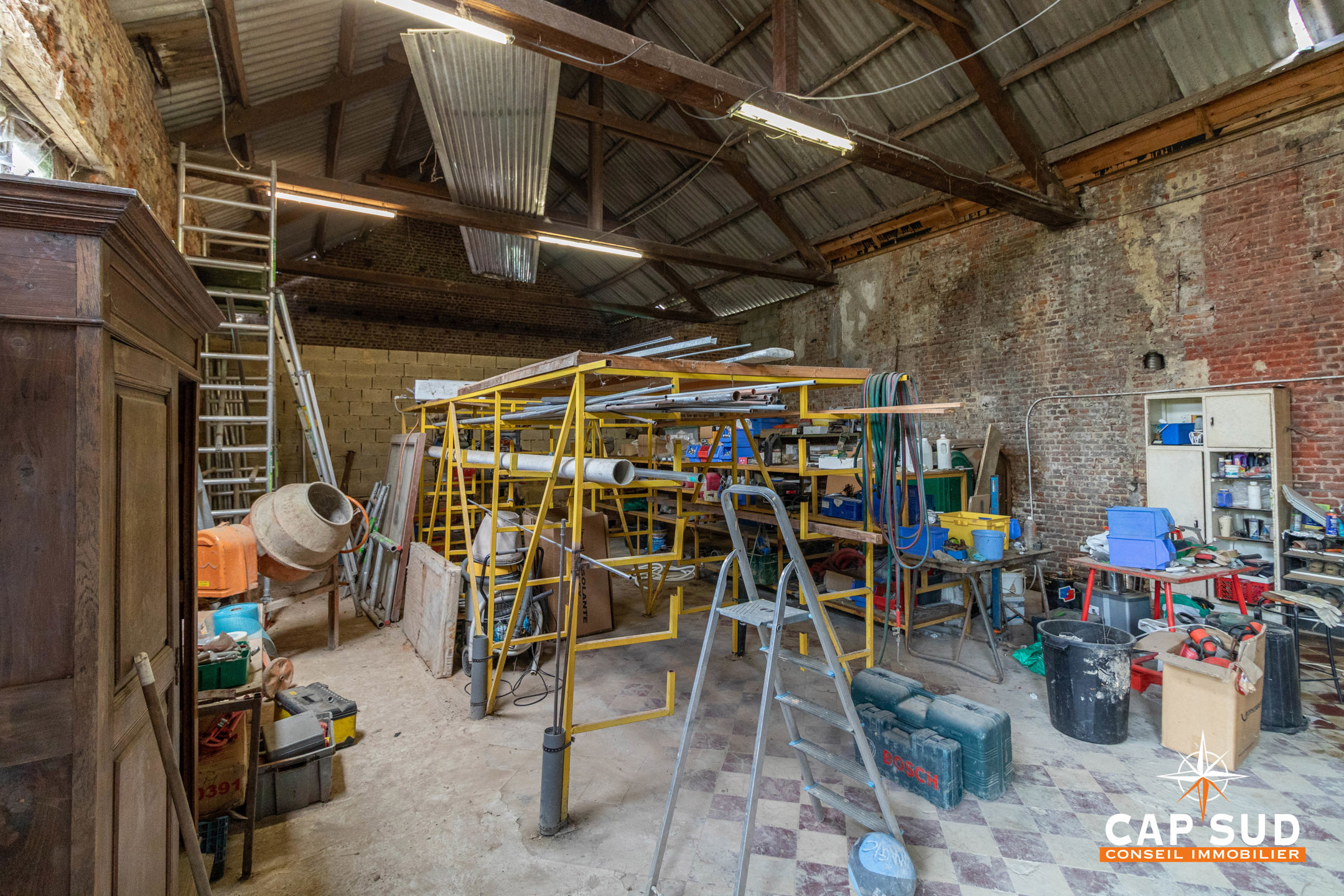 À l’extérieur, un entrepôt de ±200 m² vient compléter l’ensemble. Polyvalent, il peut servir d’atelier, d’espace de stockage ou accueillir un projet professionnel. Selon vos projets et sous réserve des autorisations nécessaires, il pourrait également être envisagé de le supprimer afin d’ouvrir la maison vers un grand jardin exposé sud-ouest, d’aménager une terrasse, une véranda ou une extension.