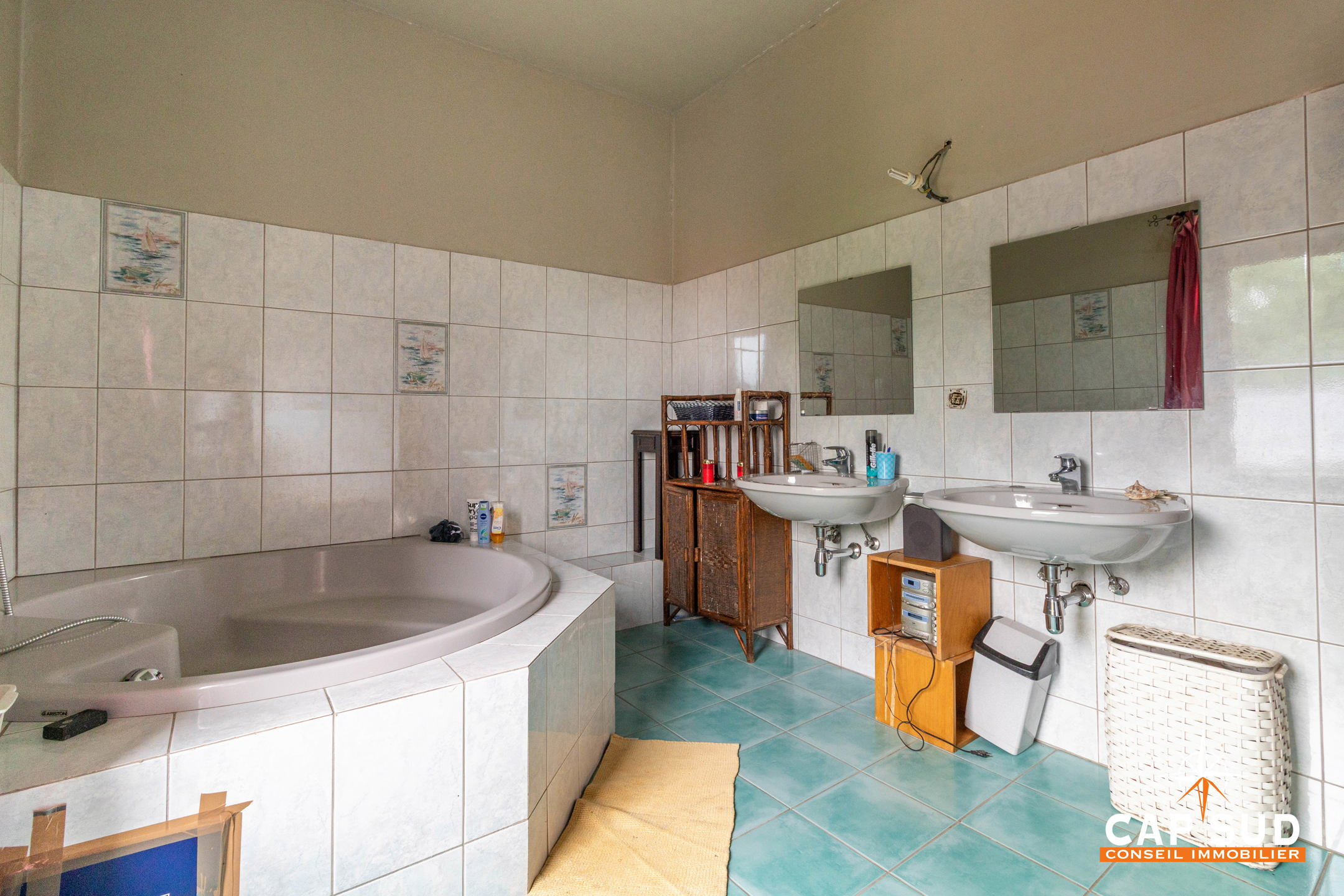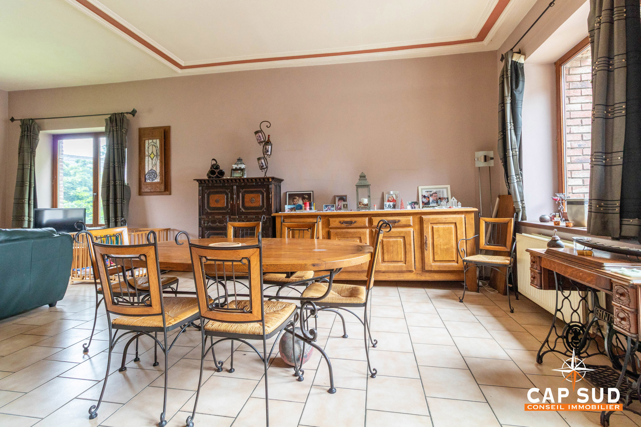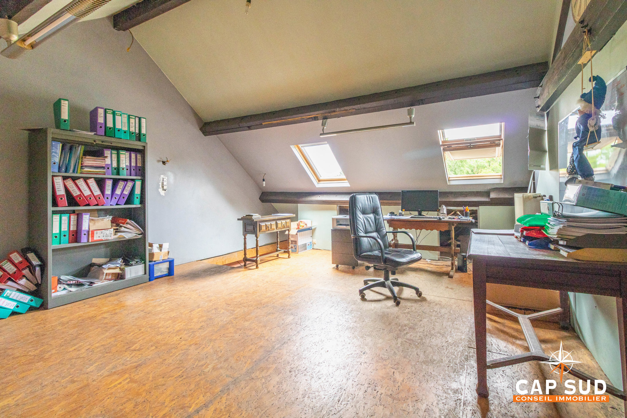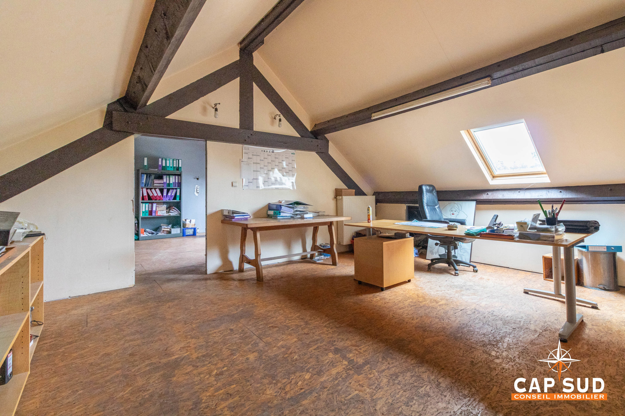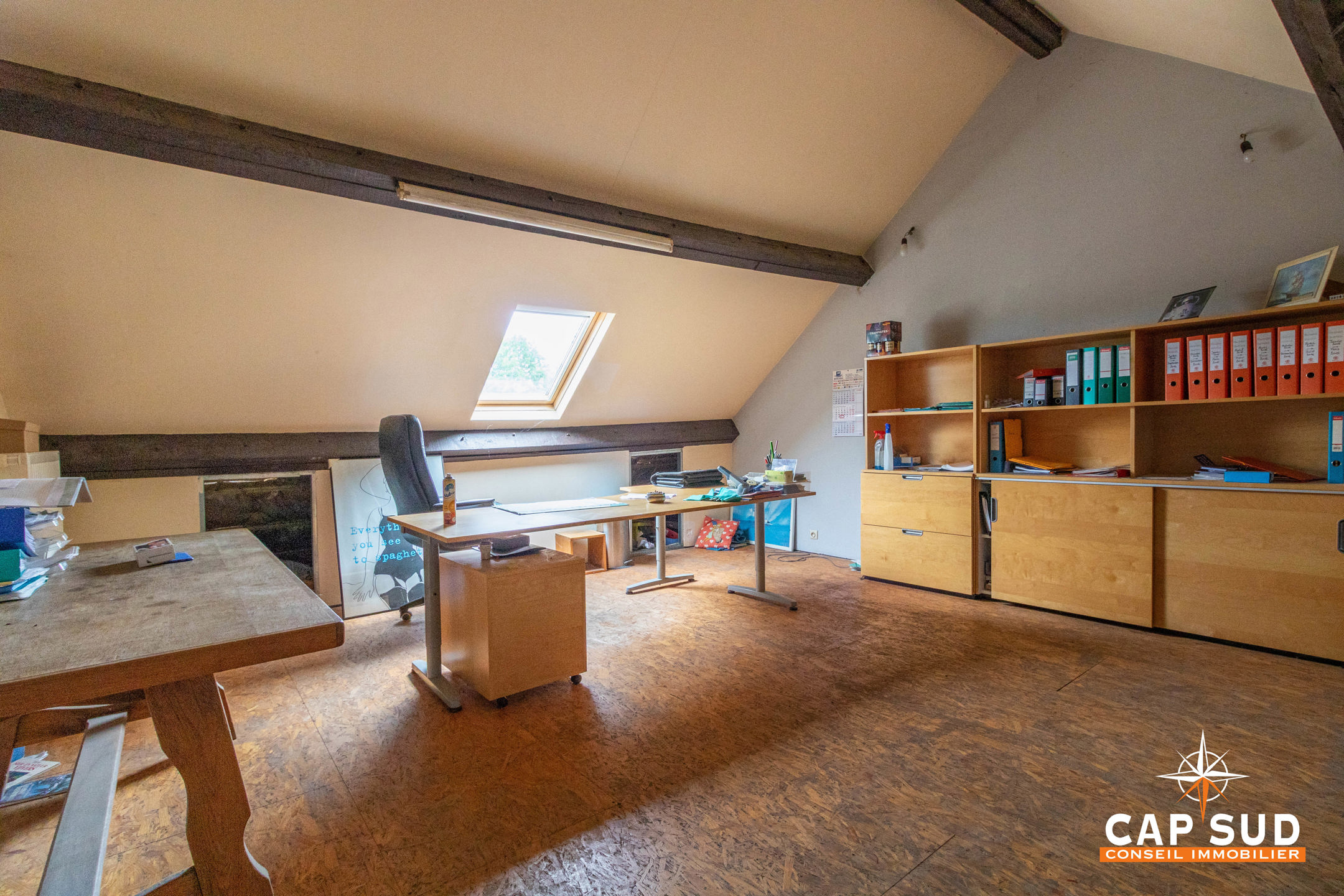 À l’extérieur, un entrepôt de ±200 m² vient compléter l’ensemble. Polyvalent, il peut servir d’atelier, d’espace de stockage ou accueillir un projet professionnel. Selon vos projets et sous réserve des autorisations nécessaires, il pourrait également être envisagé de le supprimer afin d’ouvrir la maison vers un grand jardin exposé sud-ouest, d’aménager une terrasse, une véranda ou une extension.