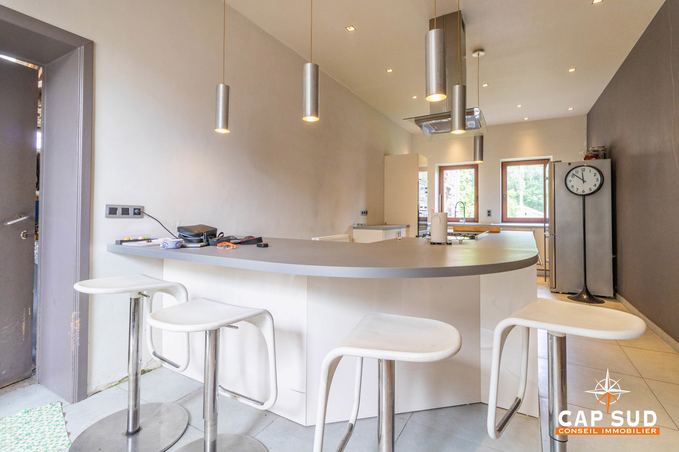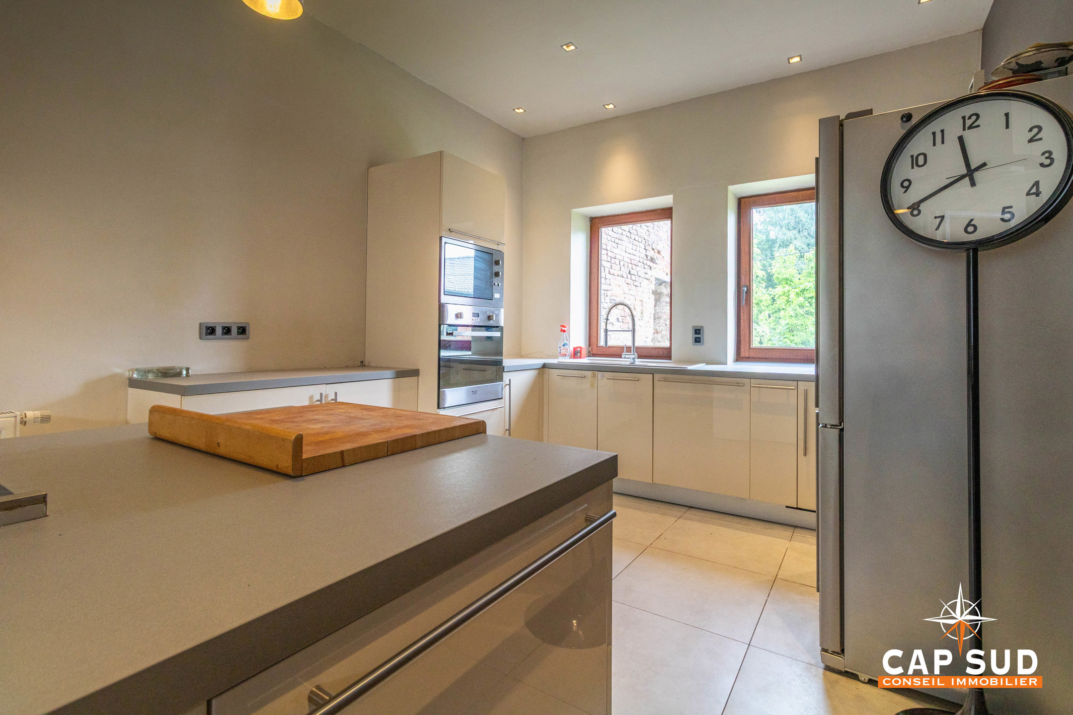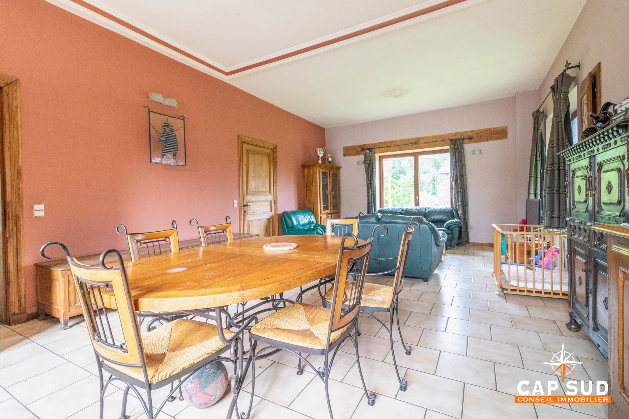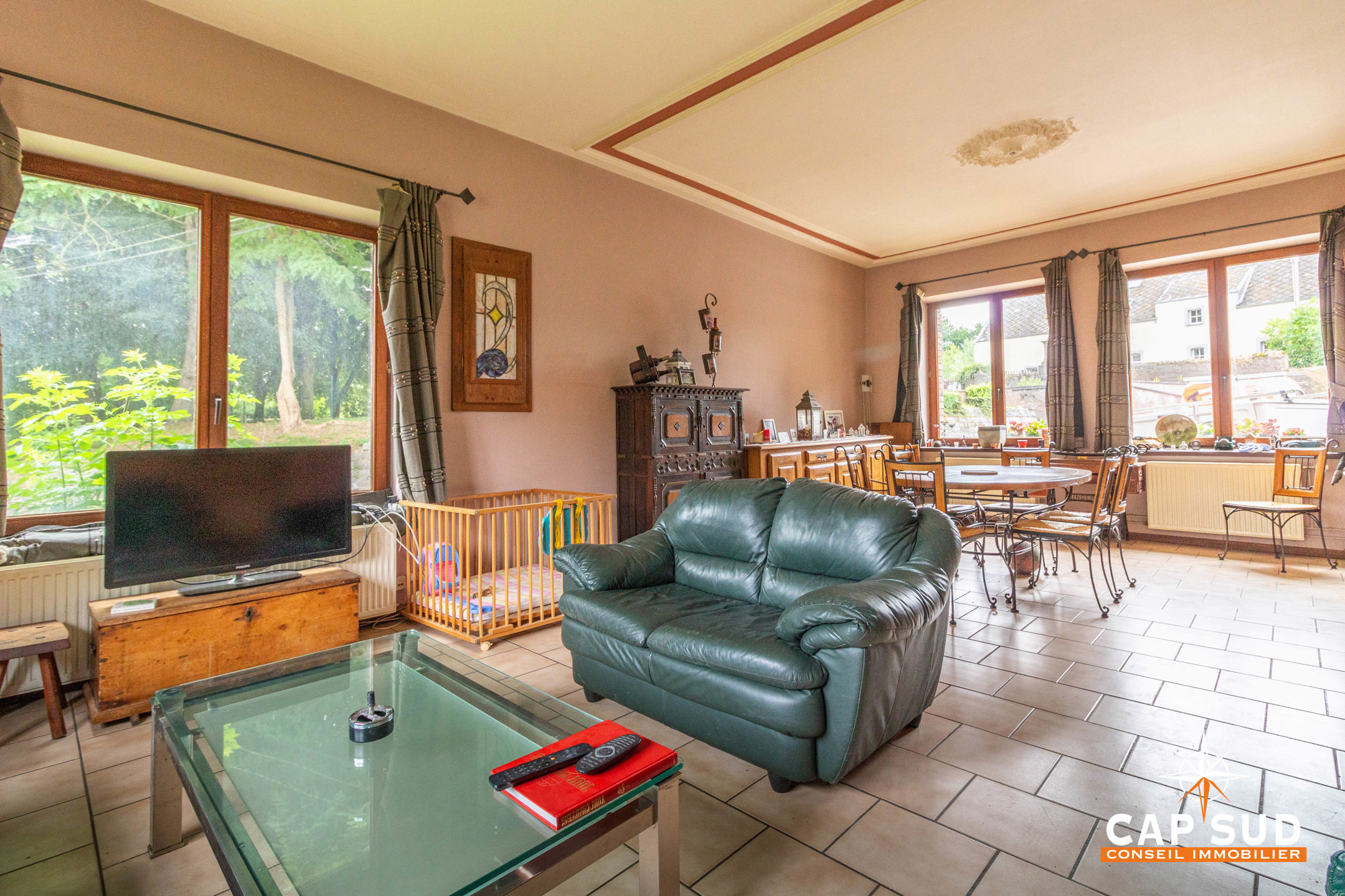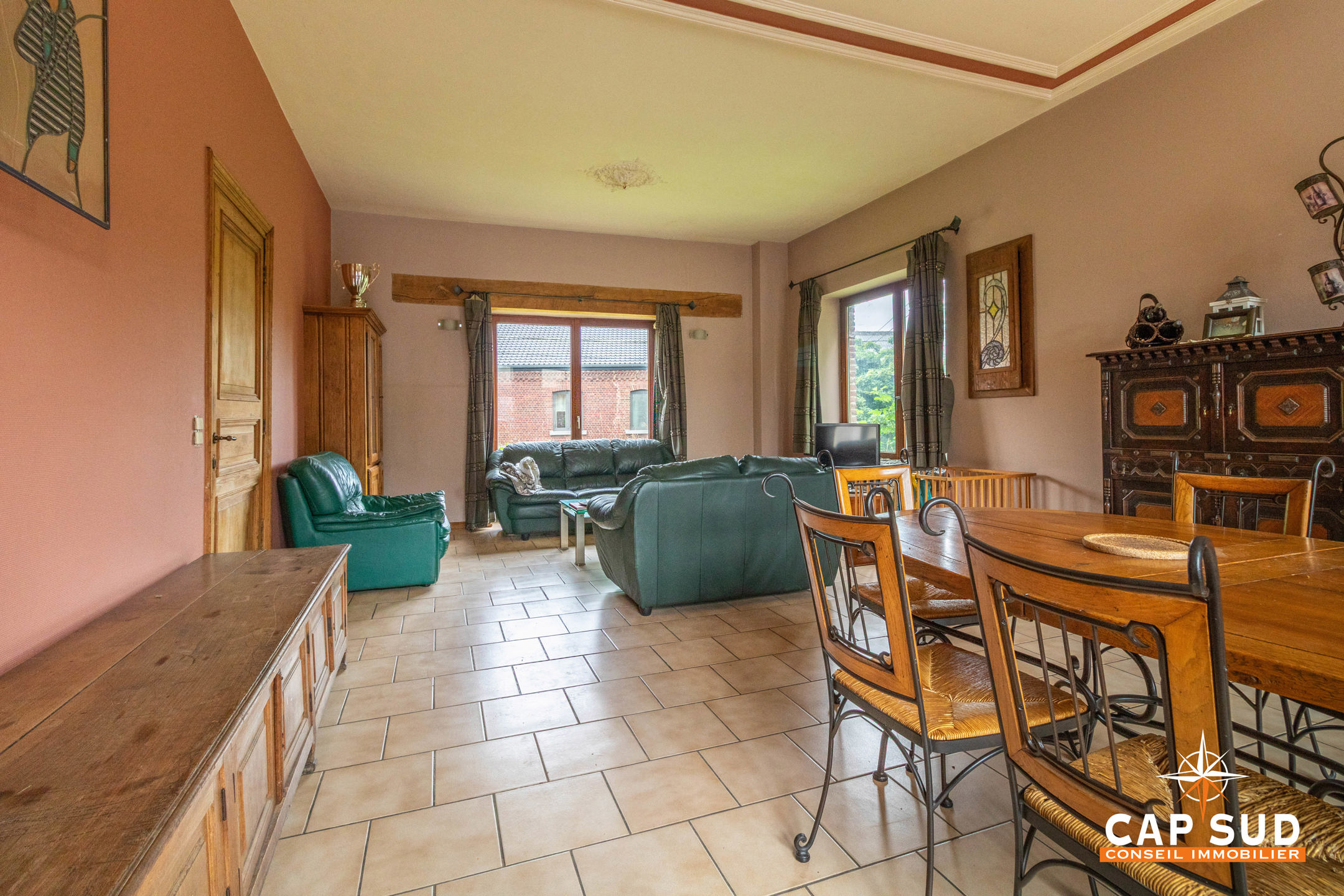 Avec une surface habitable d’environ 230 m², elle offre un cadre de vie chaleureux et un très beau potentiel d’aménagement. Le rez-de-chaussée comprend un séjour lumineux, une cuisine équipée et une toilette séparée. À l’étage, vous trouverez deux grandes chambres, une salle de bains ainsi qu’une buanderie. Le grenier aménagé accueille deux vastes pièces polyvalentes, idéales comme bureaux, chambres ou espace loisirs. La maison dispose également de caves voûtées, saines. Côté confort, on note la présence d’une chaudière à condensation et de châssis double vitrage.