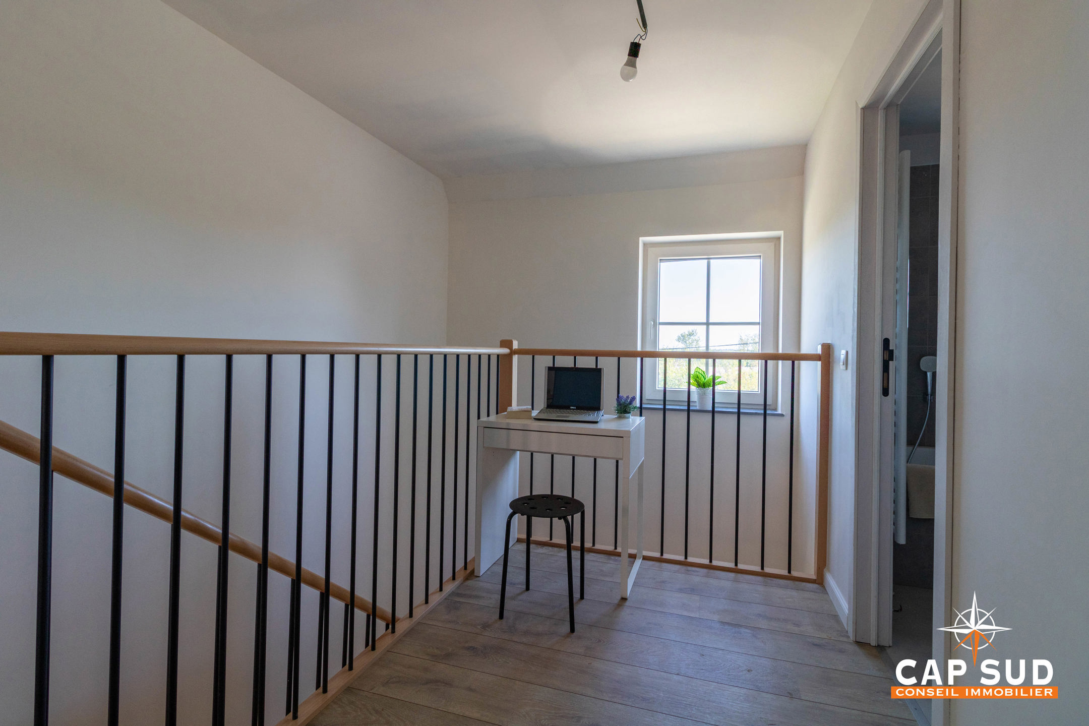 La maison offre une atmosphère contemporaine et chaleureuse, portée par des matériaux modernes et une excellente isolation. Sa performance énergétique est attestée par un PEB de classe A.