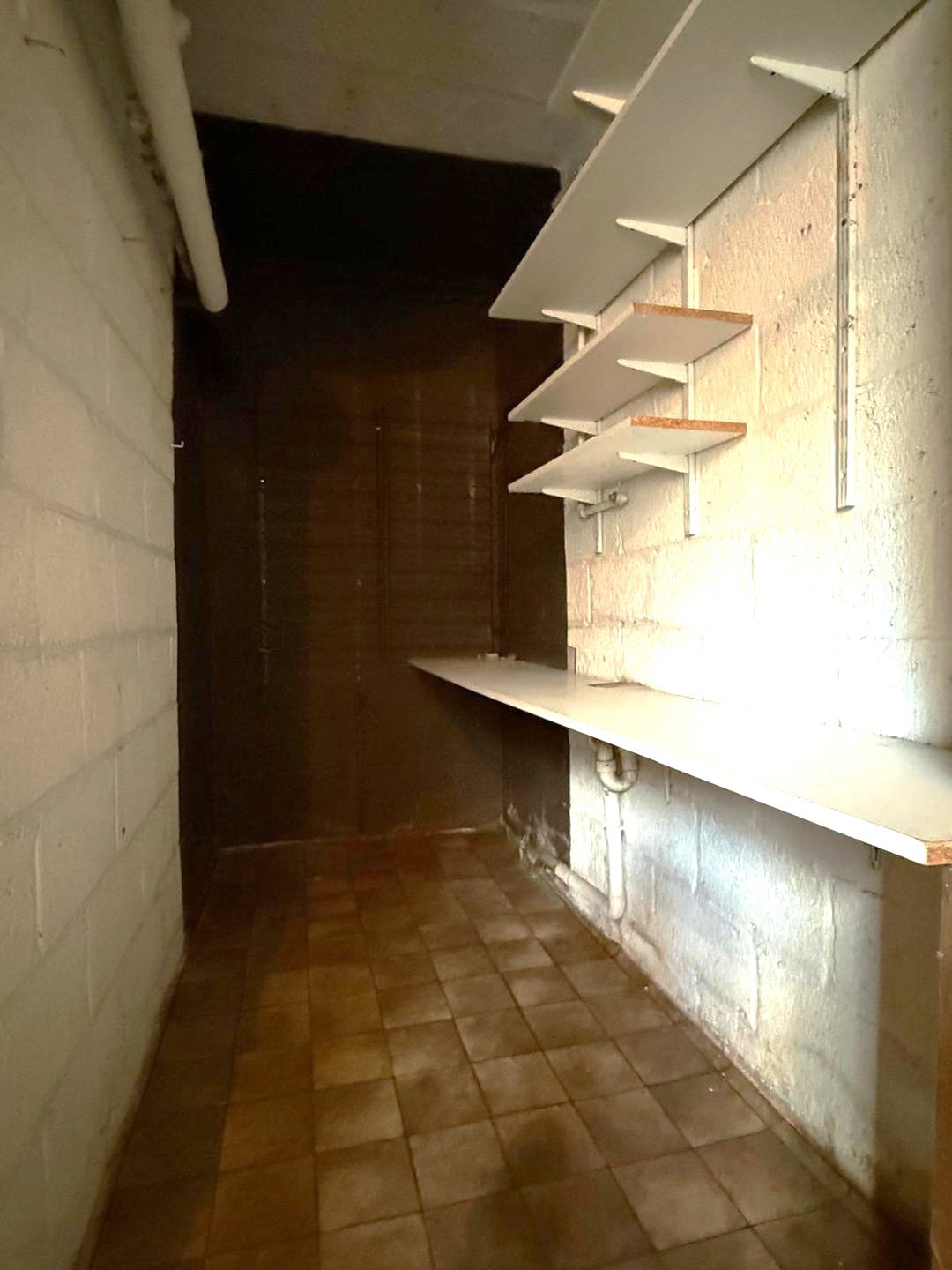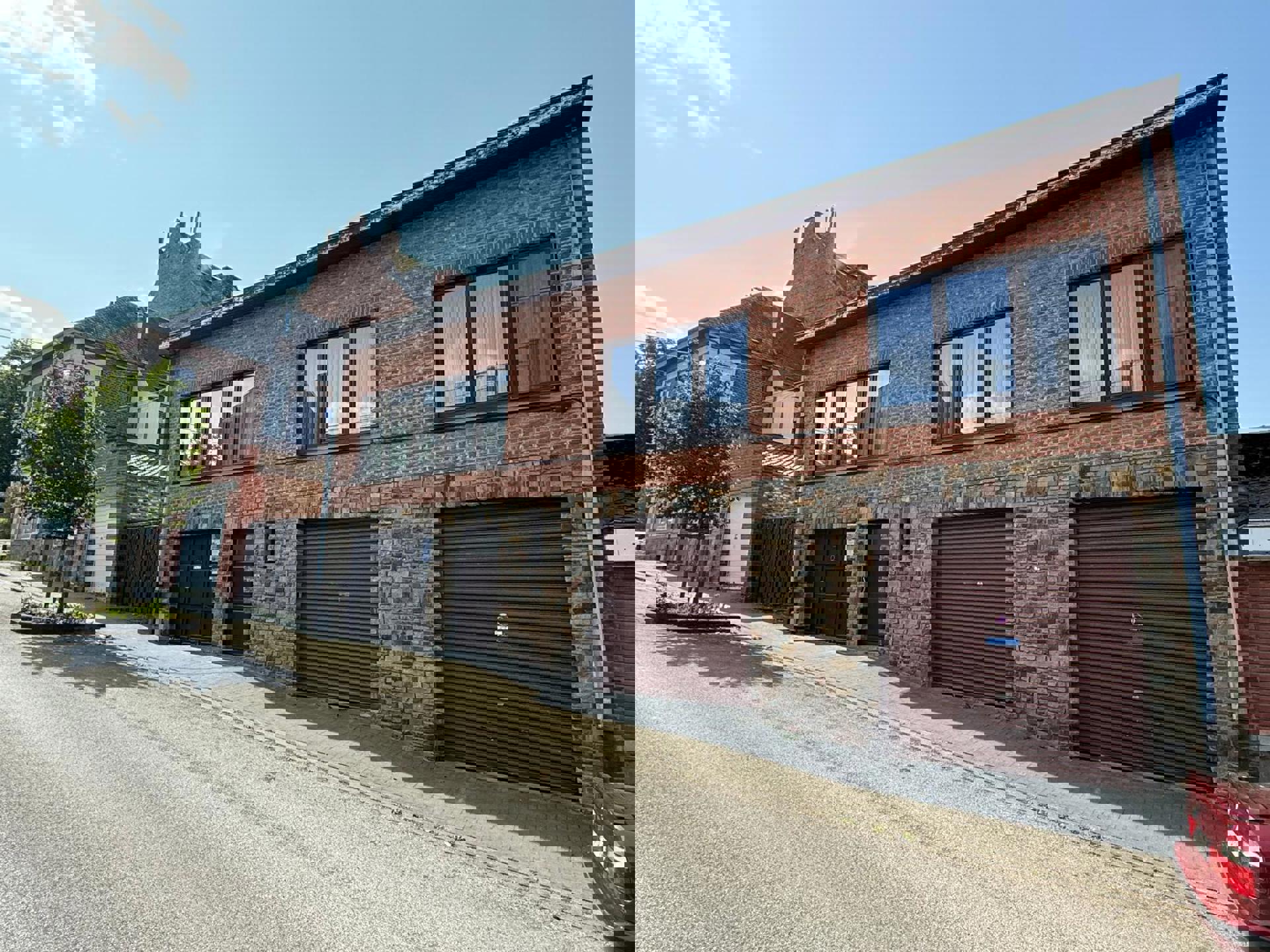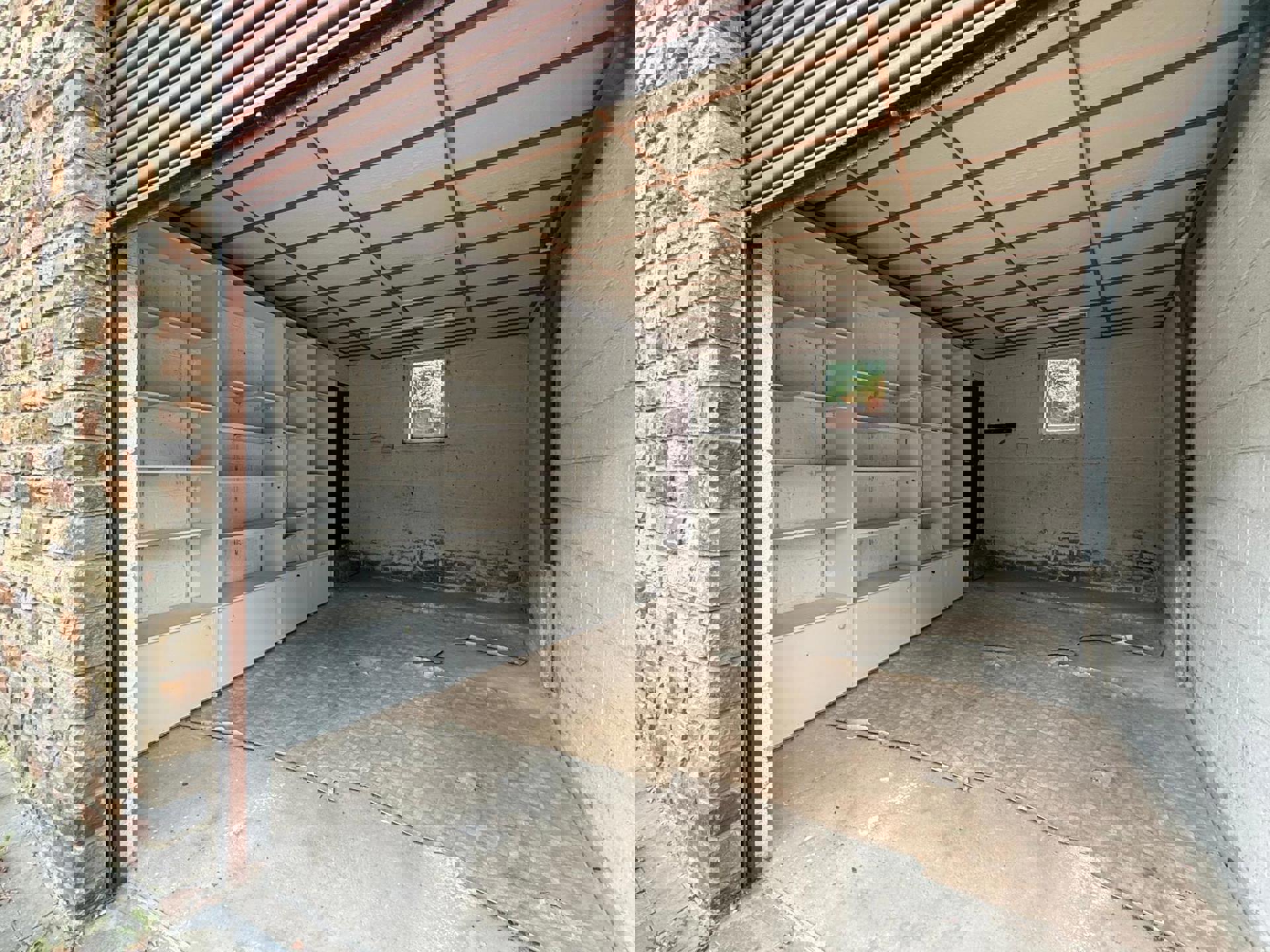 La maison est composée au rez d’un hall d’entrée avec wc, de 3 garages accessibles de l’intérieur, d’une chaufferie et de l’accès à la cour extérieure. Au 1er: un séjour avec feu ouvert, une cuisine avec coin à manger, une chambre et une la salle de douche avec wc.