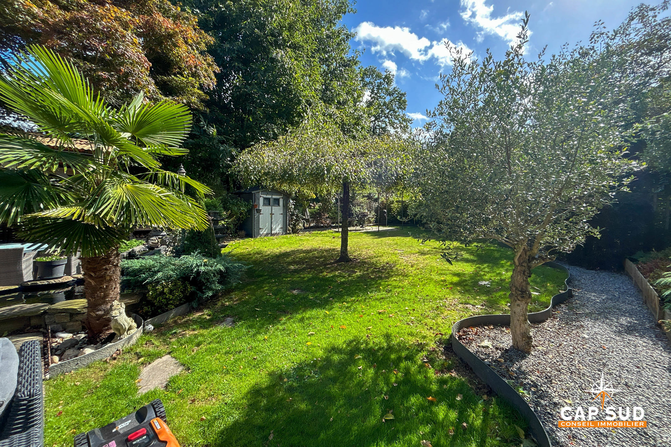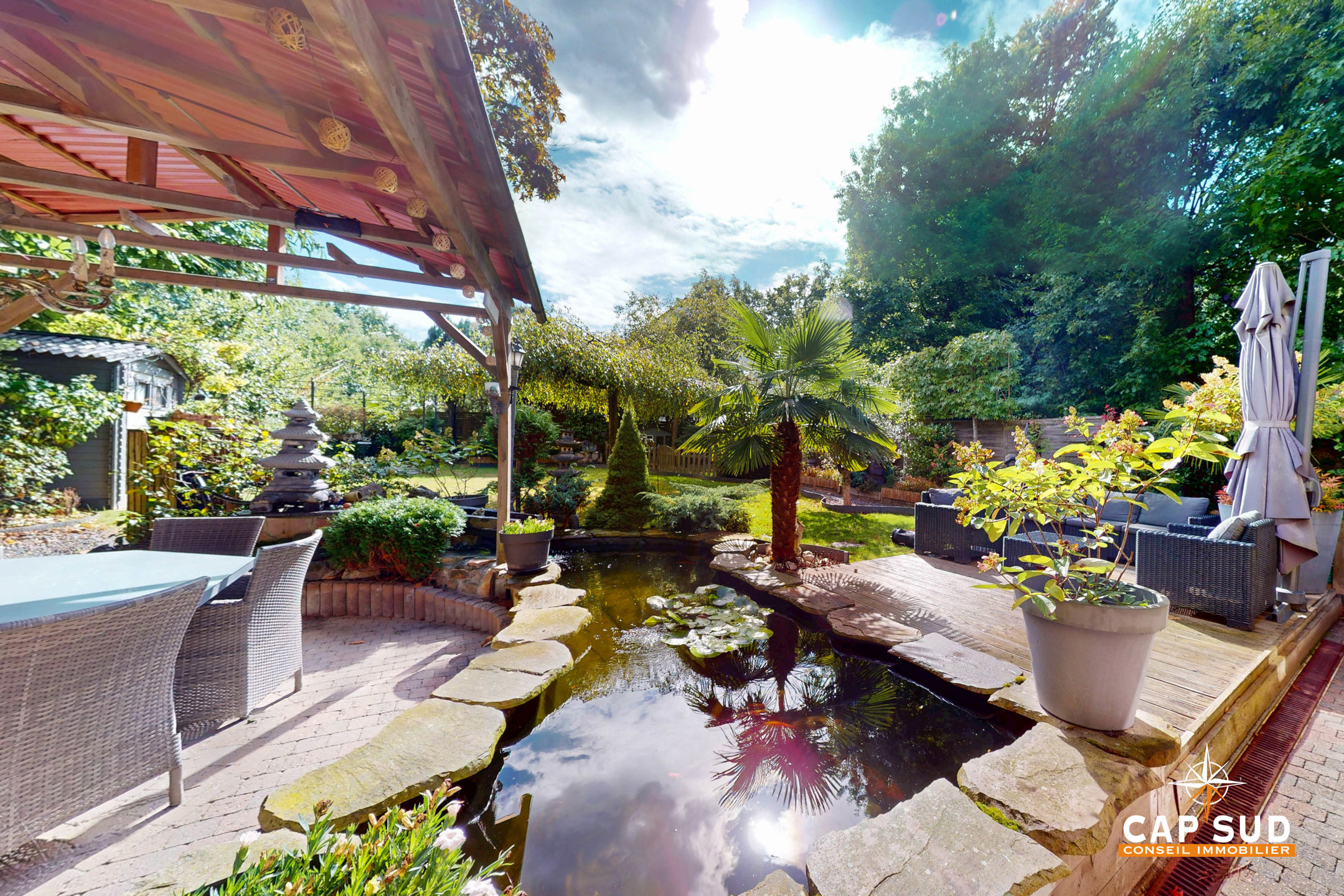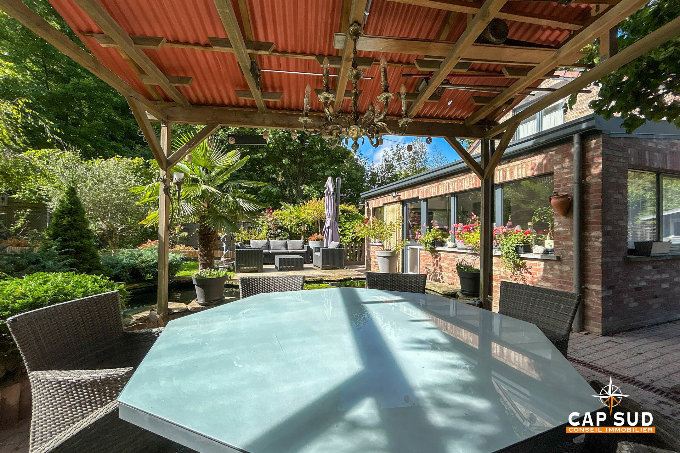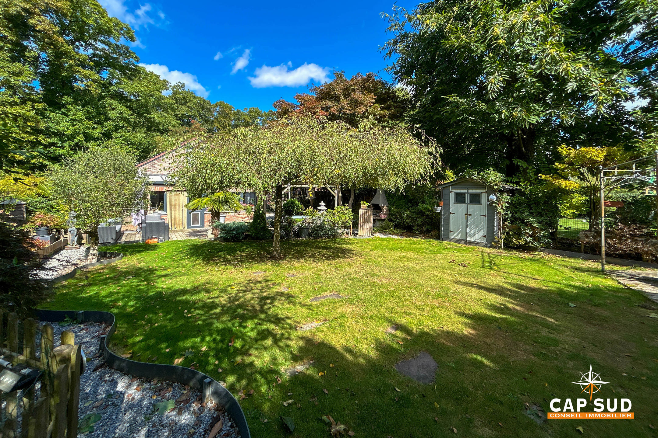 Le jardin magnifiquement aménagé est un véritable havre de paix, pensé avec soin pour créer différentes ambiances et profiter pleinement de chaque moment de la journée.