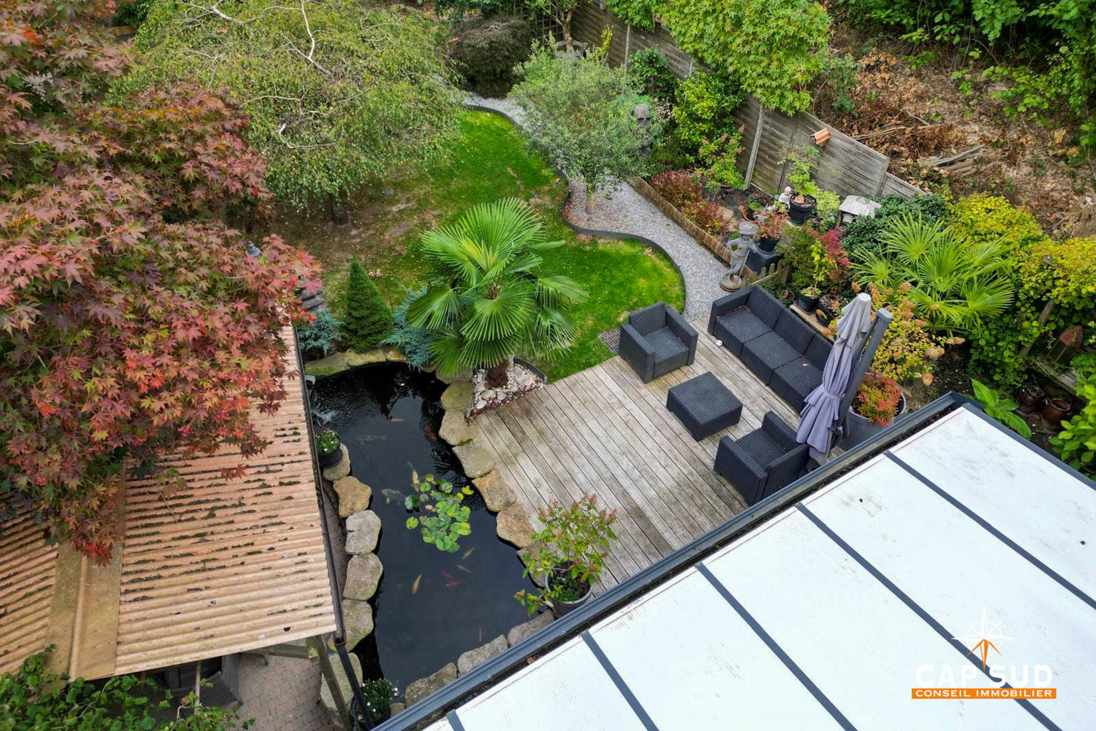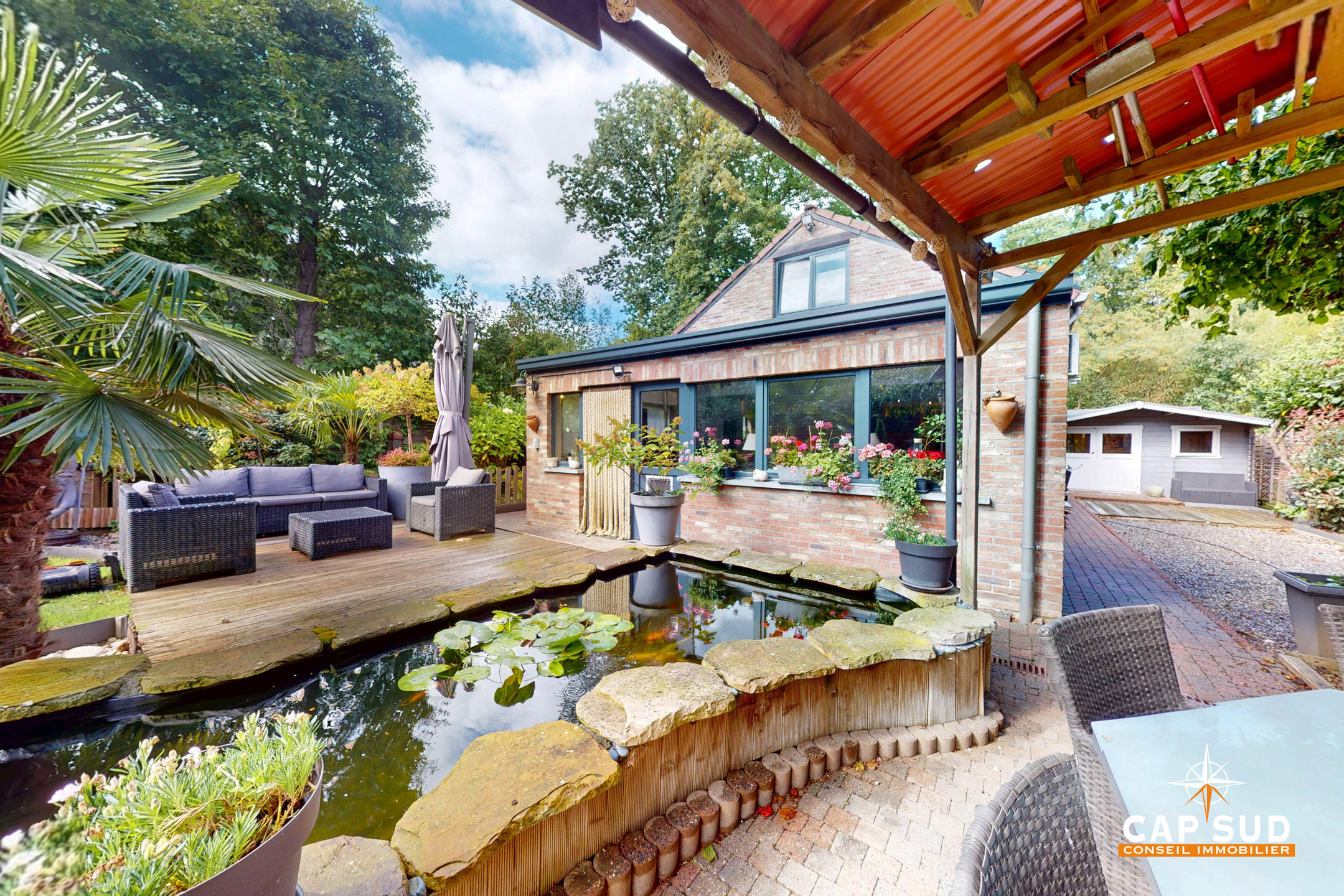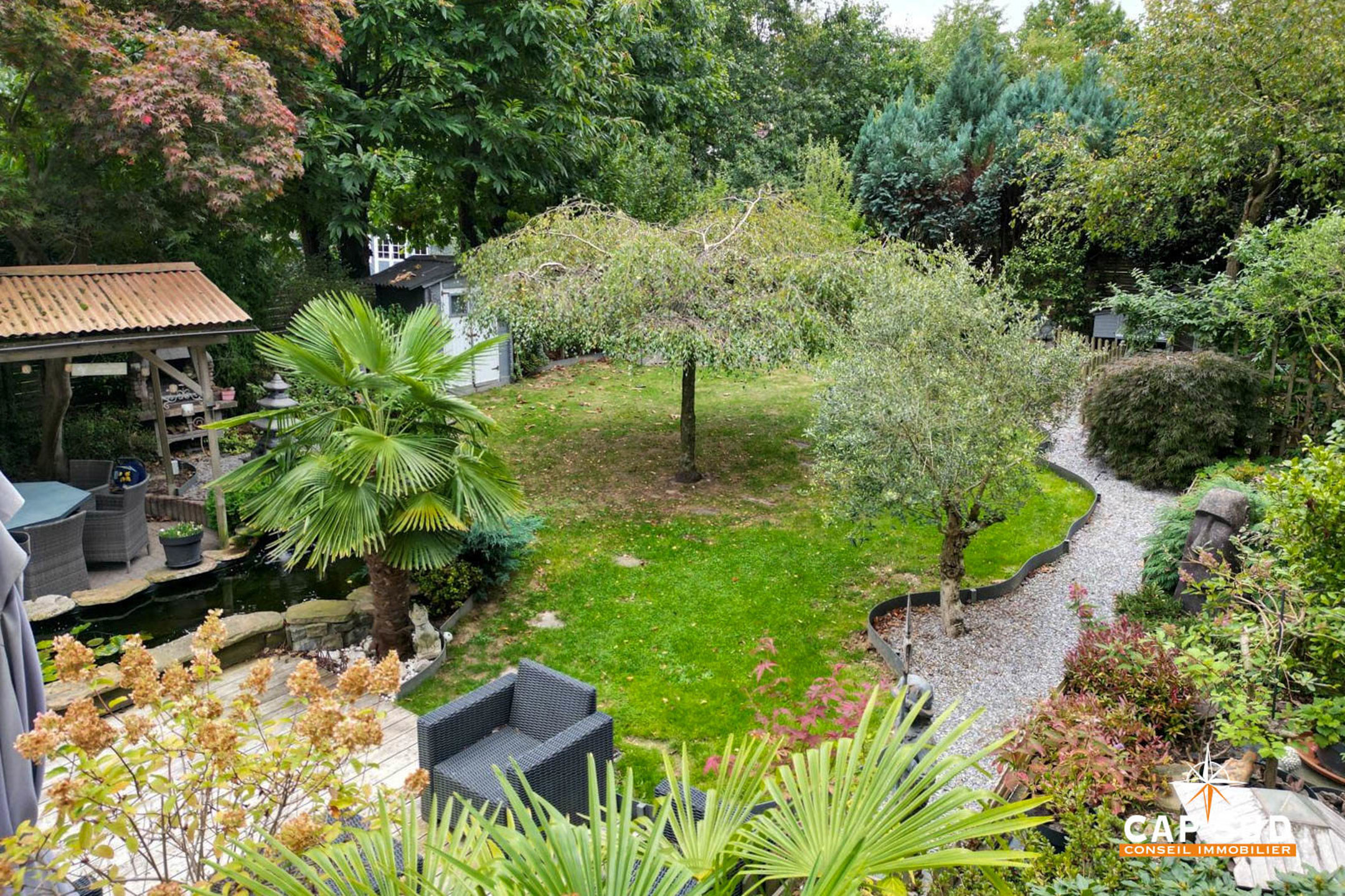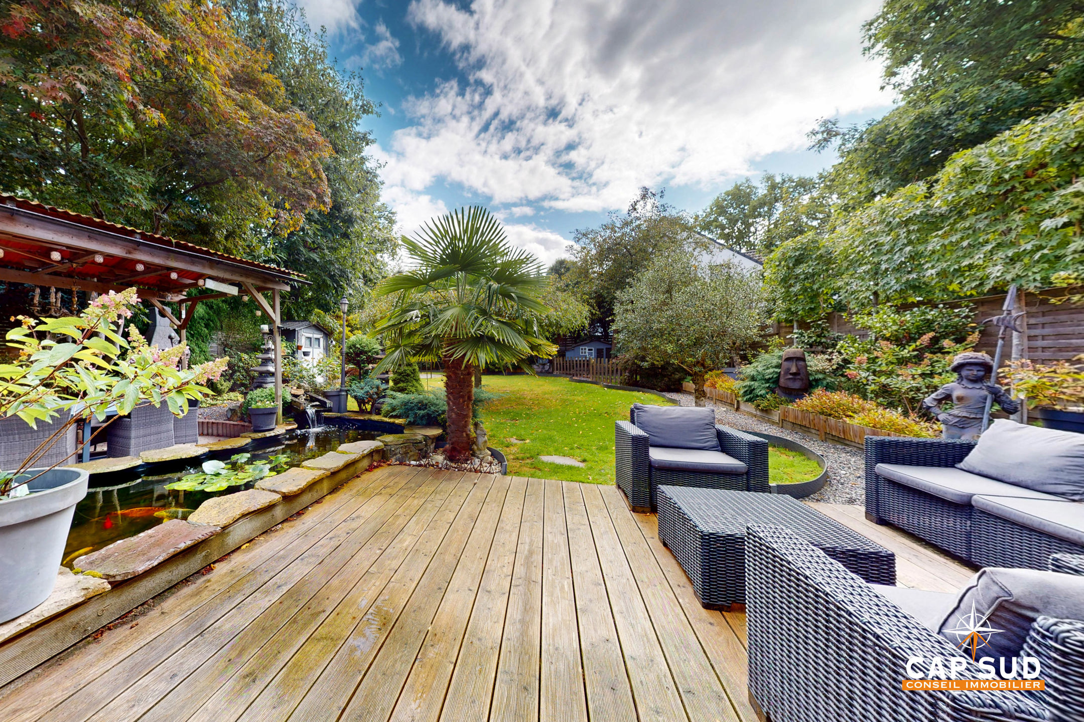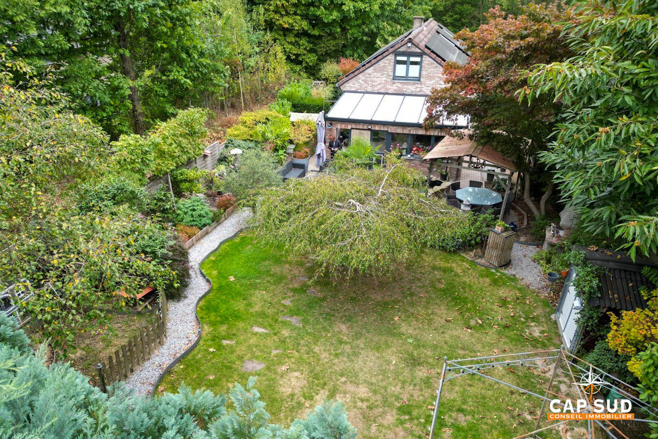 Le jardin magnifiquement aménagé est un véritable havre de paix, pensé avec soin pour créer différentes ambiances et profiter pleinement de chaque moment de la journée.