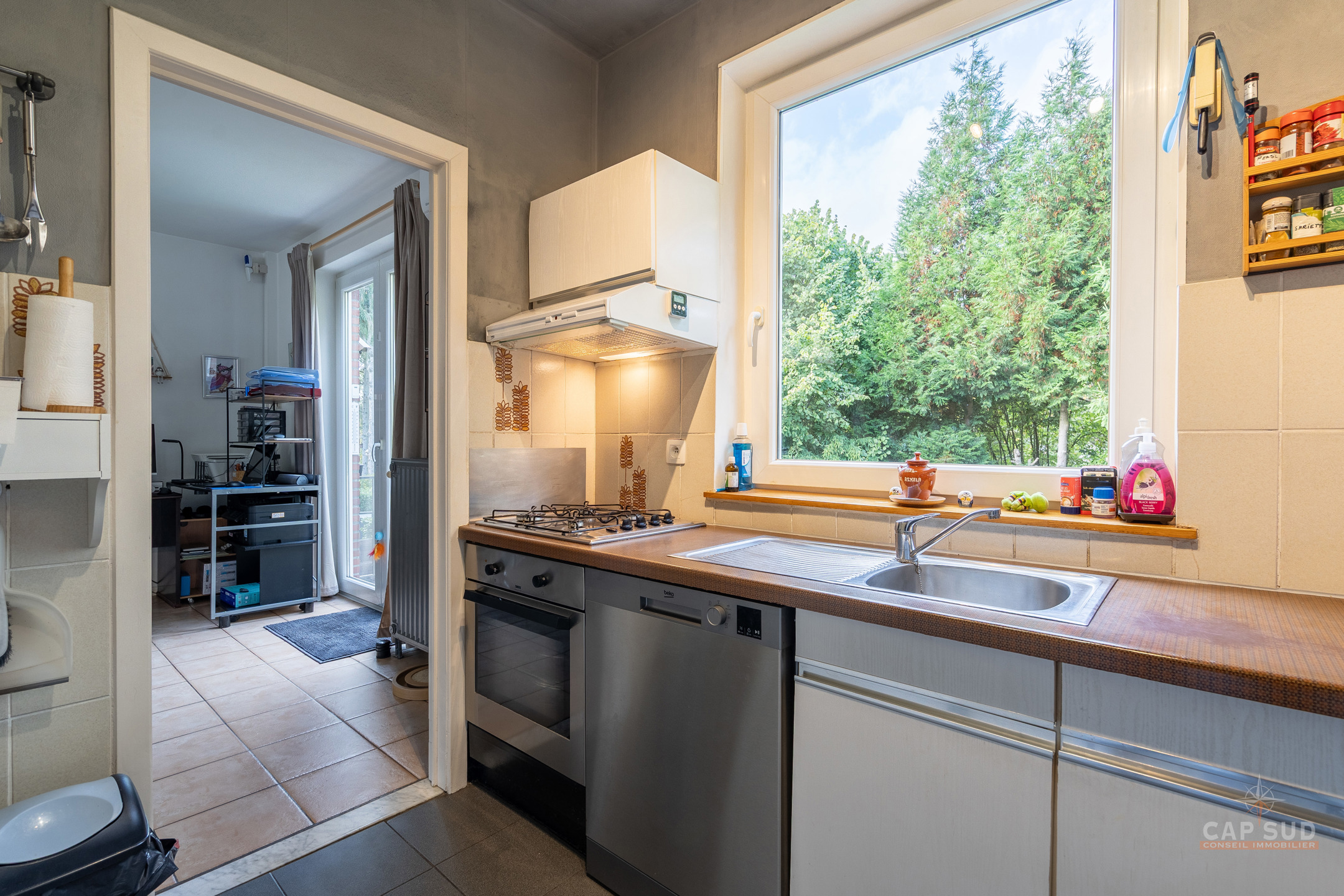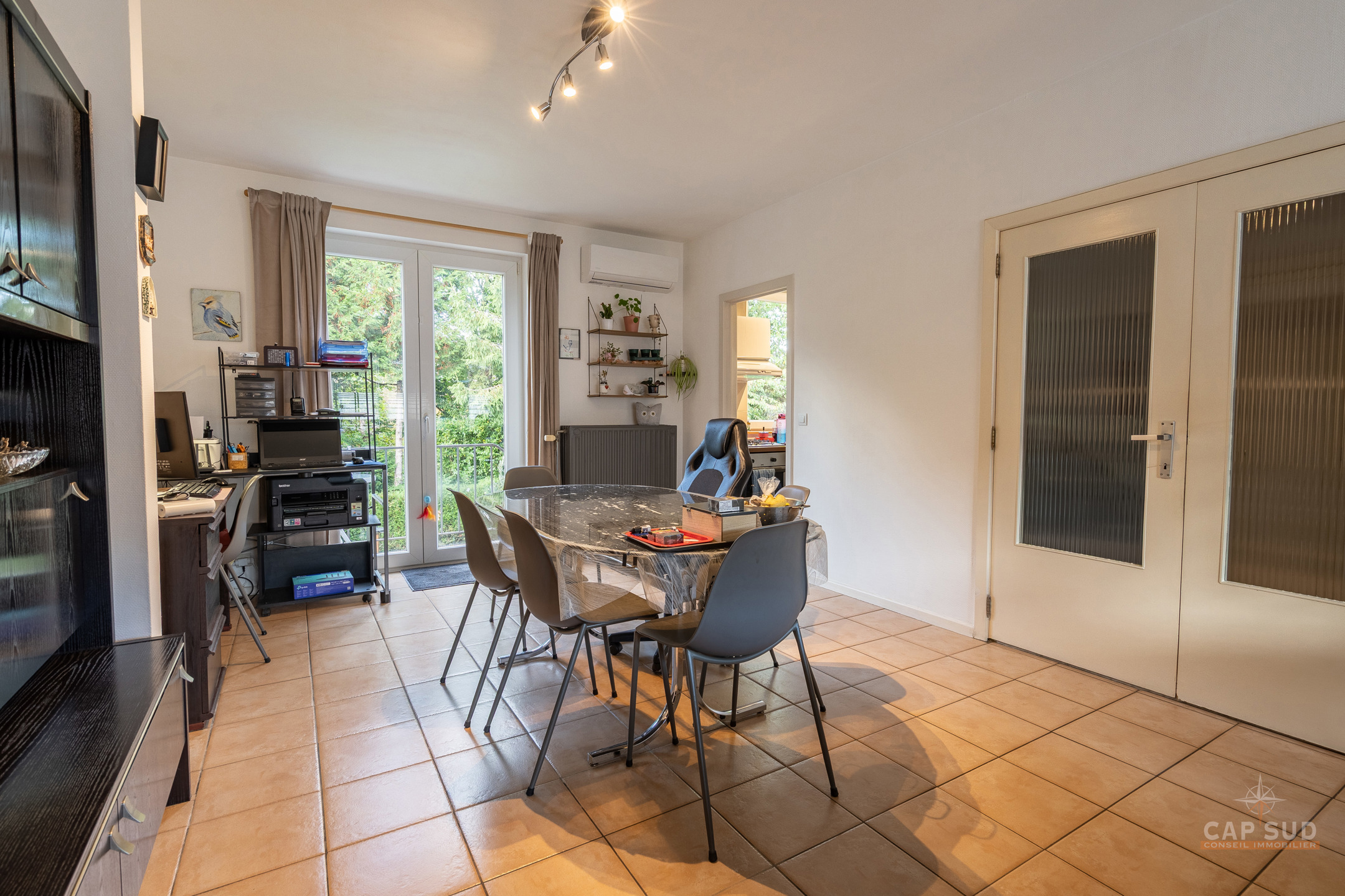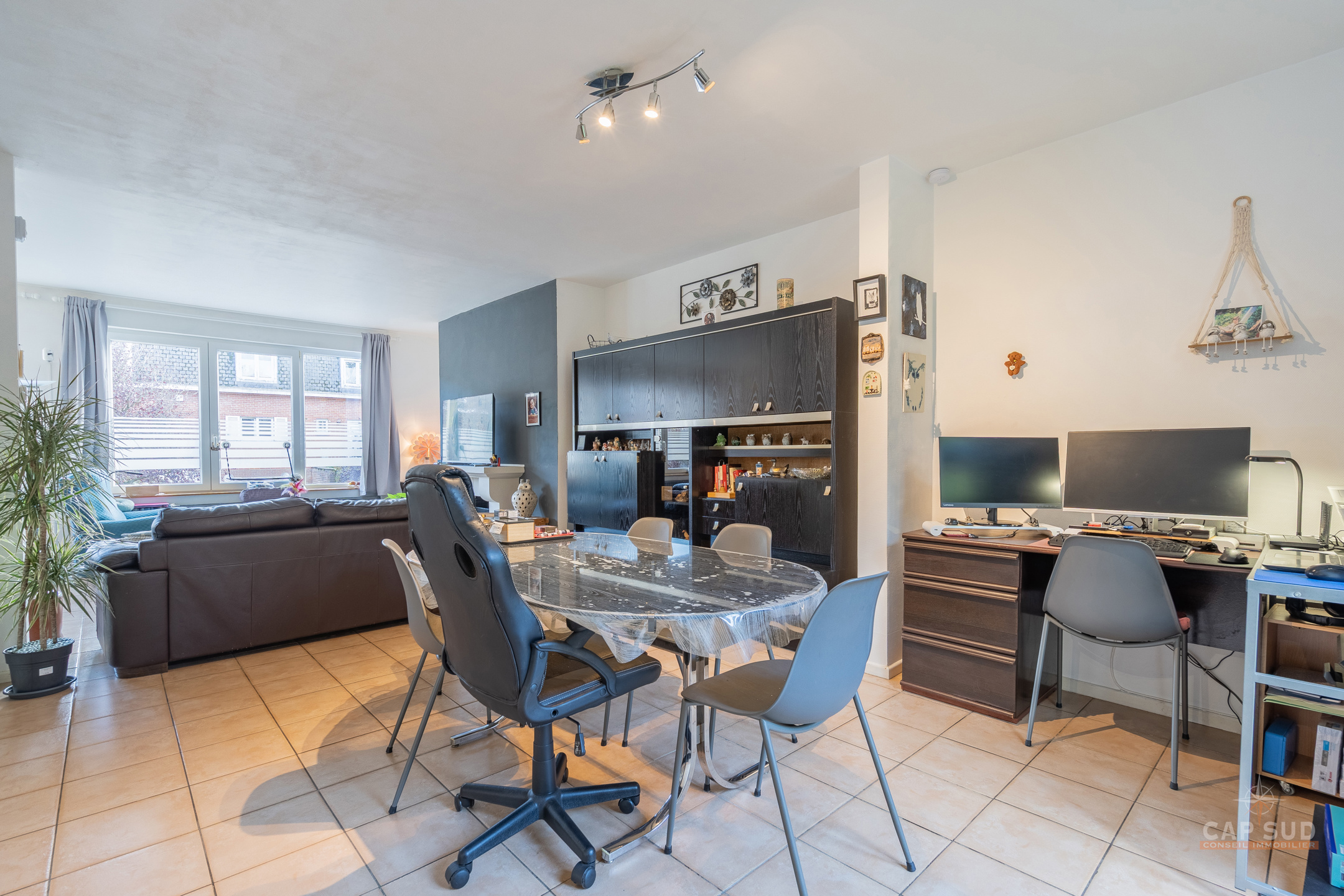 Waterloo – Dans un quartier calme et arboré du Chenois, à proximité de toutes facilités, CAP SUD vous propose cette jolie maison bel-étage de 180m2 sise sur un terrain de 1,95ares. Au rez-de-chaussée, vous trouverez un vaste hall d’entrée de 13m2 avec vestiaire et local WC, un bureau de 6m2 et un grand garage de 32m2 avec un espace buanderie. Au 1er, le hall dessert un lumineux living en L de 43m2 avec feu ouvert et une cuisine équipée de 6m2 donnant sur le jardin. Petit balcon menant au jardin via un escalier. Au 2ème, il y a le hall de nuit avec une salle de douche (comprenant WC, douche et lavabo) et 3 chambres de 12, 10 et 10m2 dont la plus grande dispose d’une salle de bains privative (2 lavabos et baignoire/douche). Grenier de rangement (accessible via trappe) isolé pour une superficie de 16m2. Deux parkings extérieurs, nombreux placards, nouveau compteur électrique triphasé, porte de garage automatique, châssis PVC DV de 2008, système d’alarme, airco dans le living, boiler de 150l… Venez la découvrir rapidement ! VISITE: PRISE DE RDV UNIQUEMENT PAR TELEPHONE.