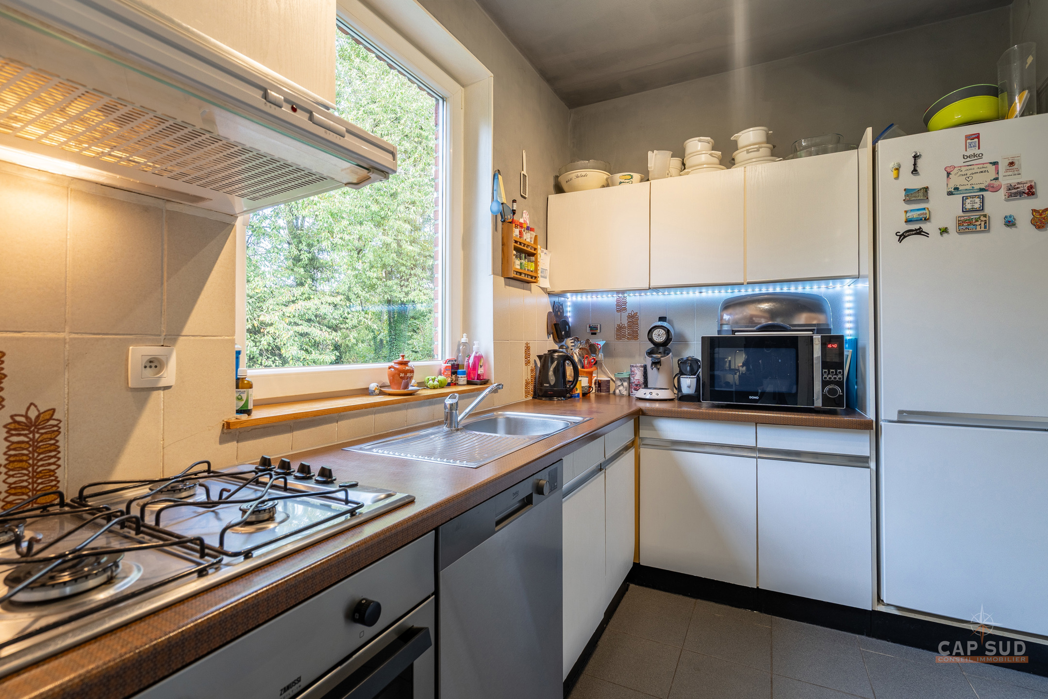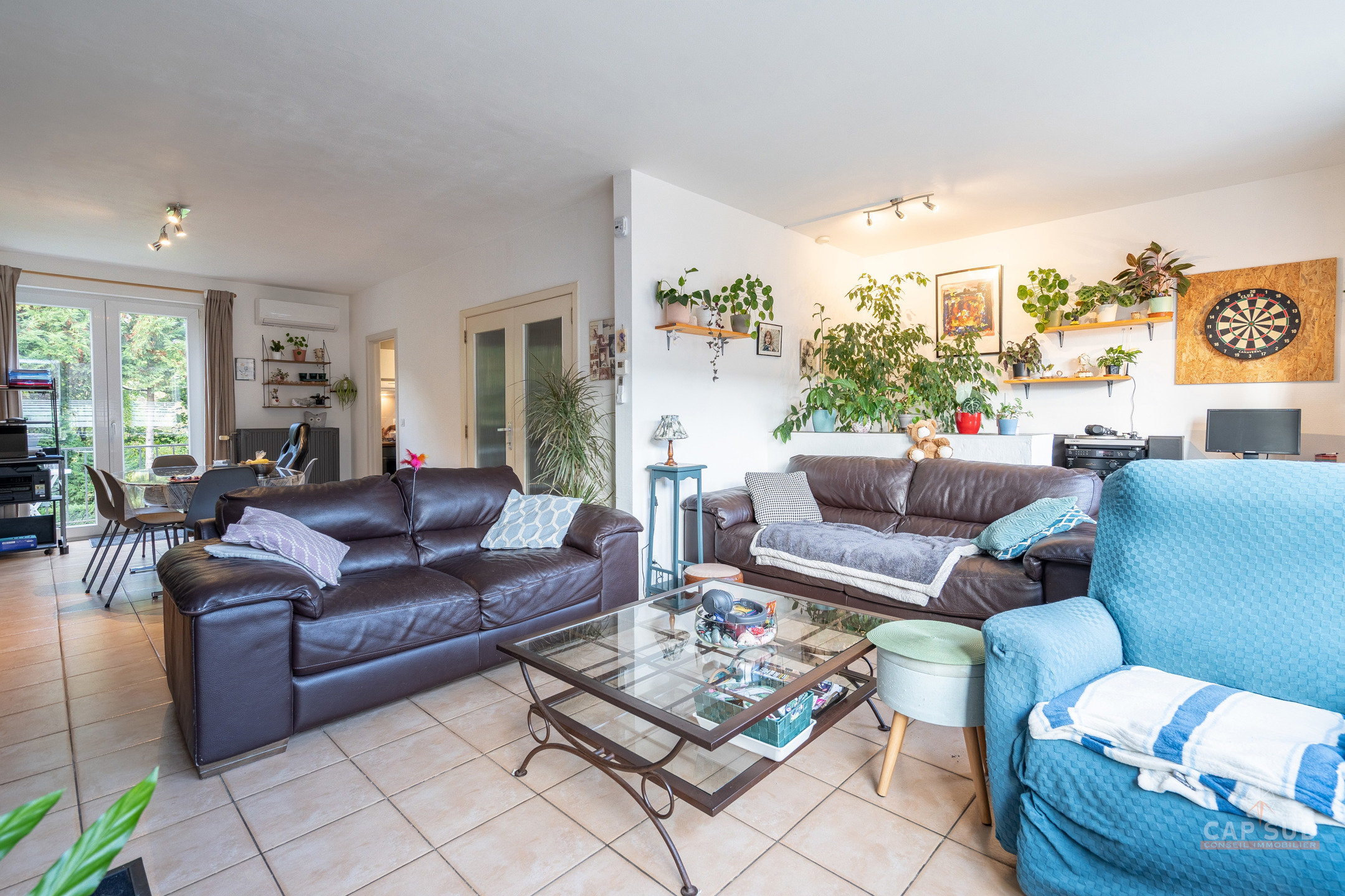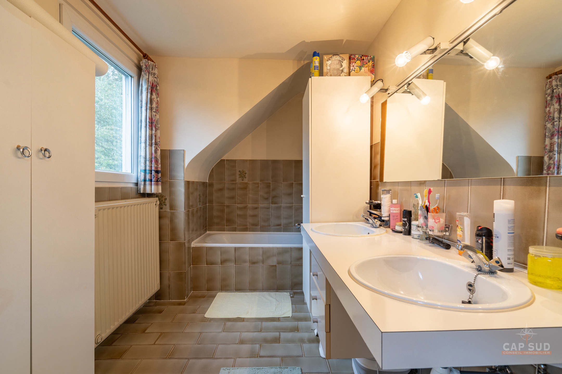 Waterloo – Dans un quartier calme et arboré du Chenois, à proximité de toutes facilités, CAP SUD vous propose cette jolie maison bel-étage de 180m2 sise sur un terrain de 1,95ares. Au rez-de-chaussée, vous trouverez un vaste hall d’entrée de 13m2 avec vestiaire et local WC, un bureau de 6m2 et un grand garage de 32m2 avec un espace buanderie. Au 1er, le hall dessert un lumineux living en L de 43m2 avec feu ouvert et une cuisine équipée de 6m2 donnant sur le jardin. Petit balcon menant au jardin via un escalier. Au 2ème, il y a le hall de nuit avec une salle de douche (comprenant WC, douche et lavabo) et 3 chambres de 12, 10 et 10m2 dont la plus grande dispose d’une salle de bains privative (2 lavabos et baignoire/douche). Grenier de rangement (accessible via trappe) isolé pour une superficie de 16m2. Deux parkings extérieurs, nombreux placards, nouveau compteur électrique triphasé, porte de garage automatique, châssis PVC DV de 2008, système d’alarme, airco dans le living, boiler de 150l… Venez la découvrir rapidement ! VISITE: PRISE DE RDV UNIQUEMENT PAR TELEPHONE.