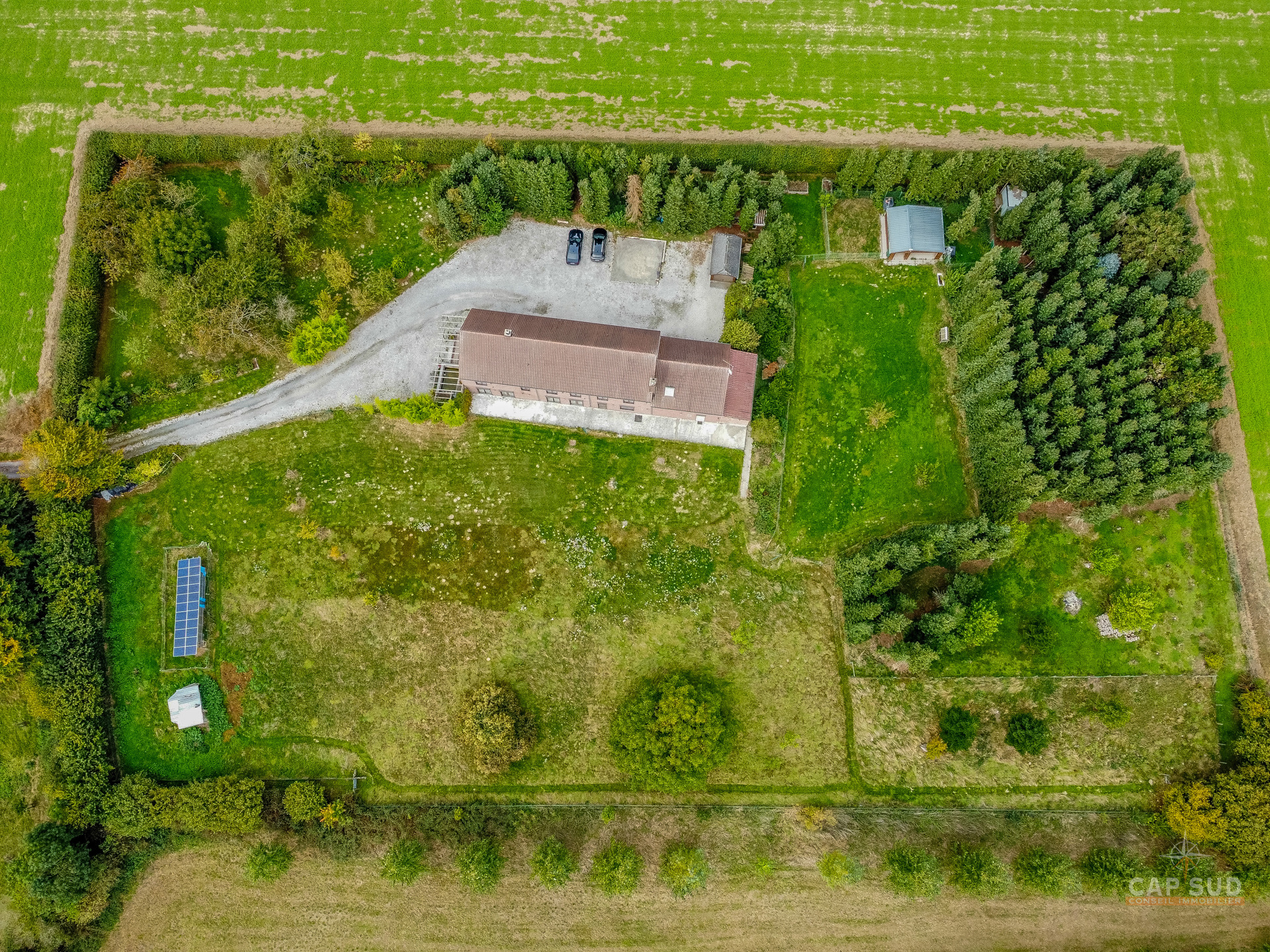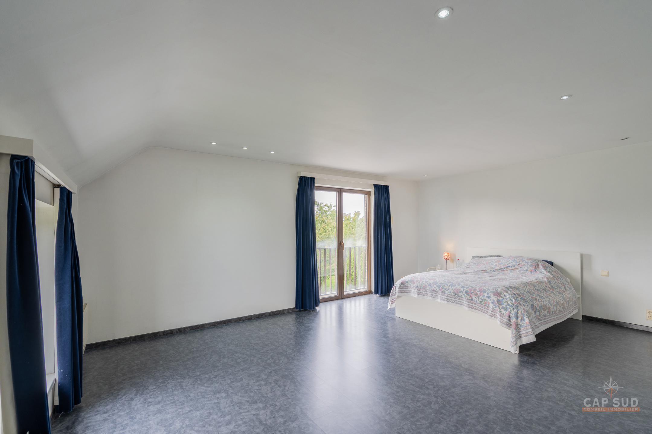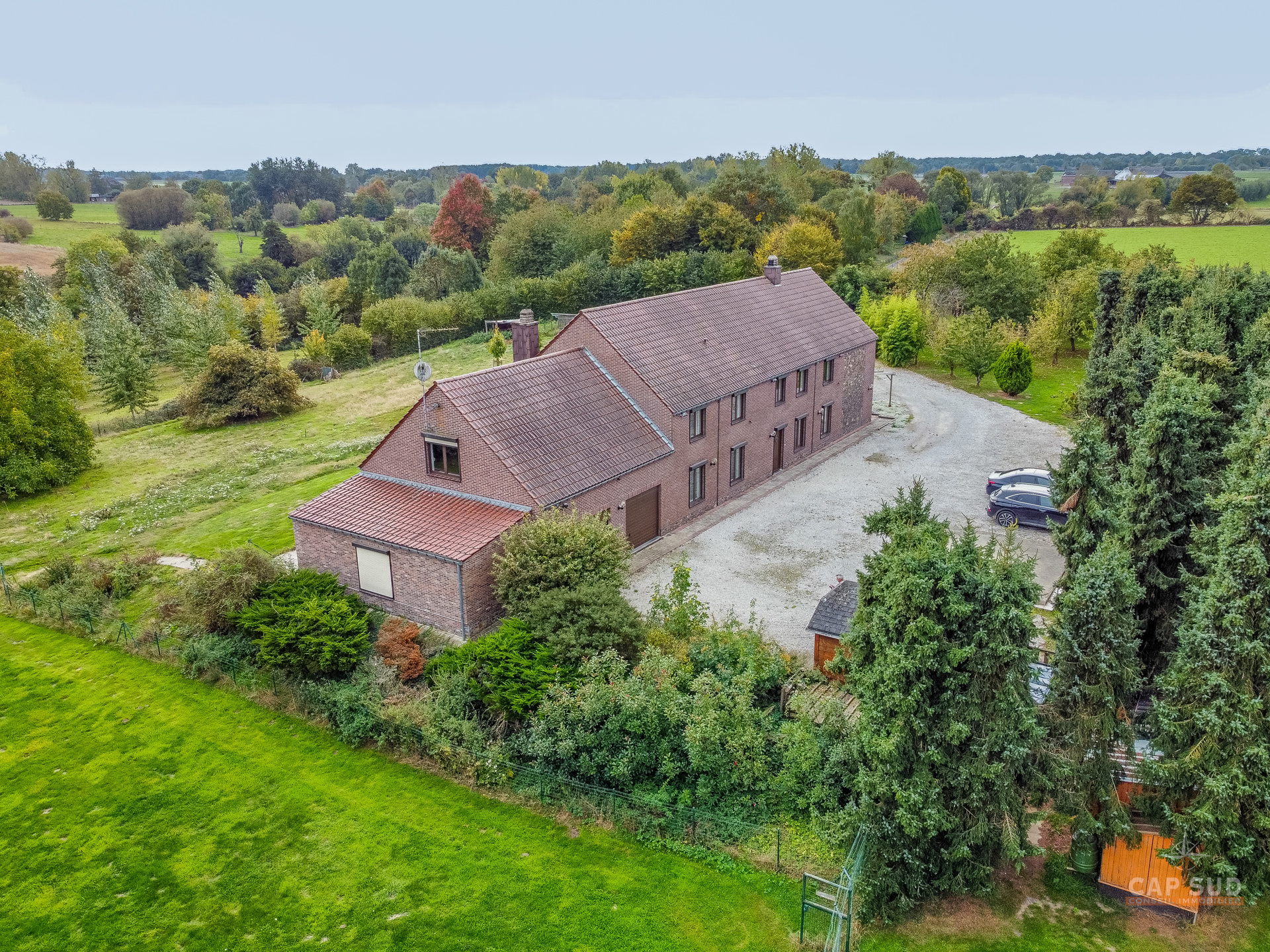 Buvrinnes – Au milieu de la campagne Binchoise, à l’abri des regards, au bout d’une allée privée, dans un cadre bucolique et à proximité de toutes facilités, CAP SUD vous présente cette superbe propriété de 650m2 sise sur un terrain de 1,27ha. Au rez-de-chaussée, vous trouverez un vaste hall d’entrée, un grand et lumineux living de 90m2 avec de grandes baies vitrées donnant sur le jardin (feu ouvert et poêle à pellet), un bureau de 13m2, une cuisine équipée de 22m2 et son arrière cuisine, une buanderie de 15m2, une pièce polyvalente de 23m2 et un double garage de 67m2 (portes automatiques). Au 1er étage, le hall de nuit dessert 4 chambres (possibilité 5 chambres) : une chambre de 27m2 qui donne accès à une chambre de 49m2 (possibilité salle d’eau), une chambre de 42m2 avec sa salle de douche et dressing, une chambre parentale de 64m2 avec hall privatif, dressing et une salle de bains complète. En toiture, vous trouverez un grenier (isolé) de rangement de 104m2 accessible via une trappe. Au sous-sol, il y a également une cave voutée avec une température constante, idéale pour le vin. Splendide jardin arboré et bien orienté, agréable verger avec essences multiples, bois de sapins, bergerie et immense parking. Bel espace pour vos animaux de compagnie et pourquoi pas…des chevaux. Possibilité de profession libérale. Portail, système d’alarme, volets partout, citerne d’eau de pluie de 40.000L raccordée, 22 panneaux solaires, très bonne isolation PEB B : 144kWh/m2.an,…Pour les amateurs de calme et de bien-être, venez vite la découvrir…c’est un véritable havre de paix !