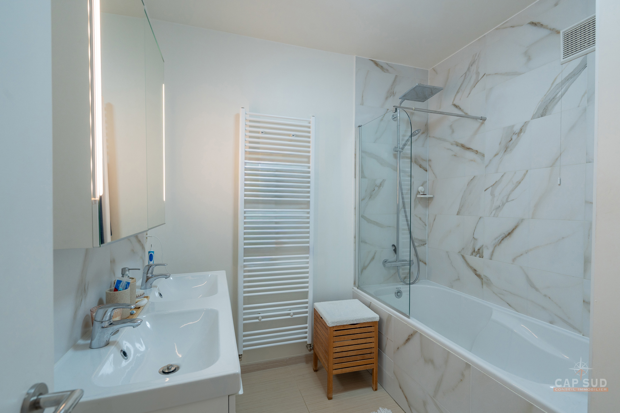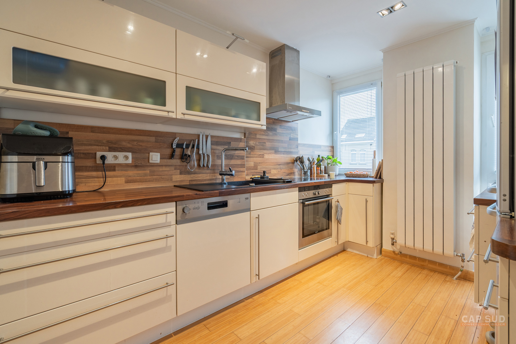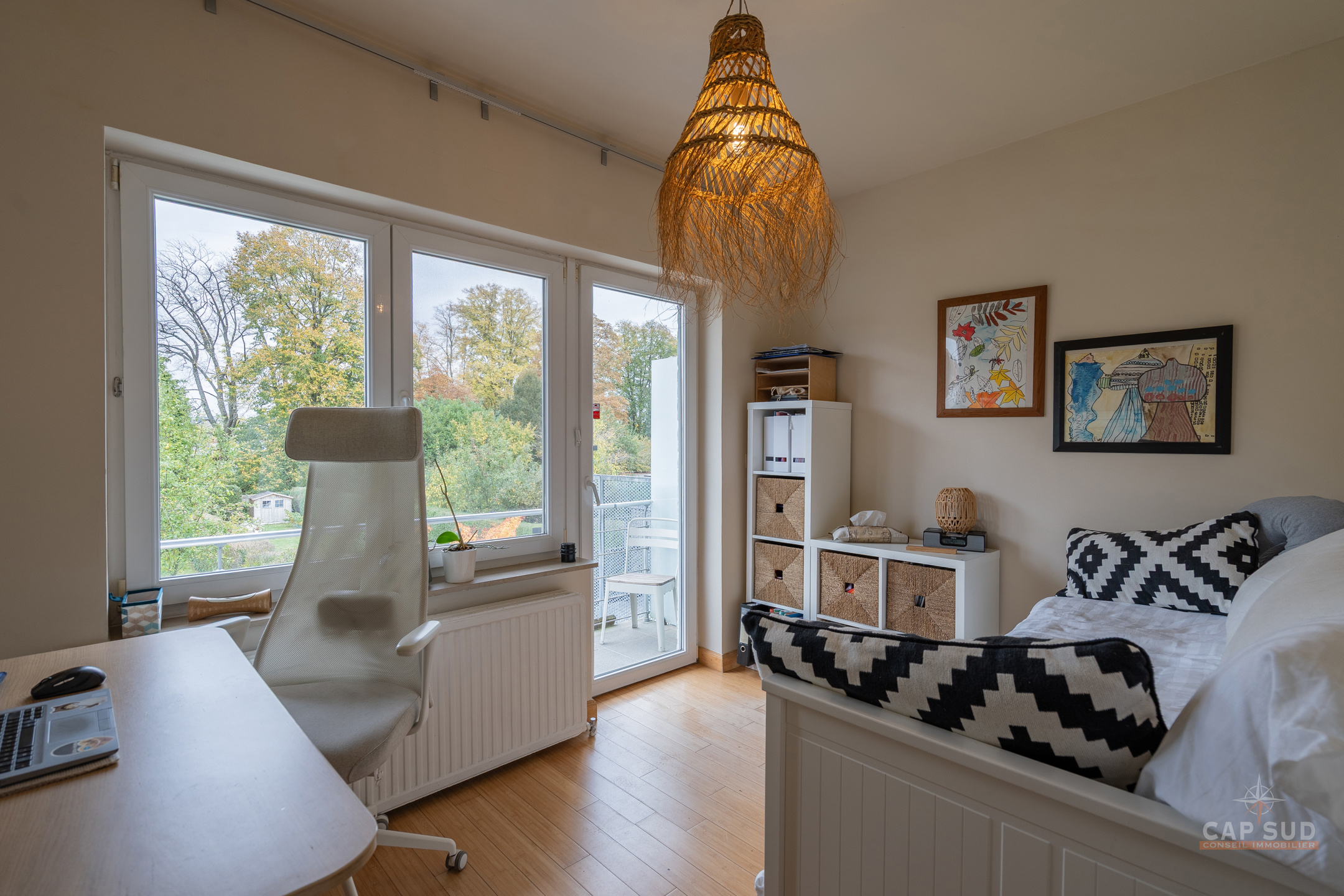 WATERLOO – CAP SUD vous propose un lumineux appartement avec MOBILIER ET ELECTROMENAGER À DISPOSITION. Il se situe à deux pas du centre, de la gare, proche des écoles et des grands axes. Vous y trouverez un hall d’entrée, un WC séparé, un séjour de +- 31m2, une cuisine super-équipée, un hall de nuit desservant une chambre de +- 14m2, un bureau de +- 9m2 avec sa terrasse, une salle de bains (bain, 2 lavabos).