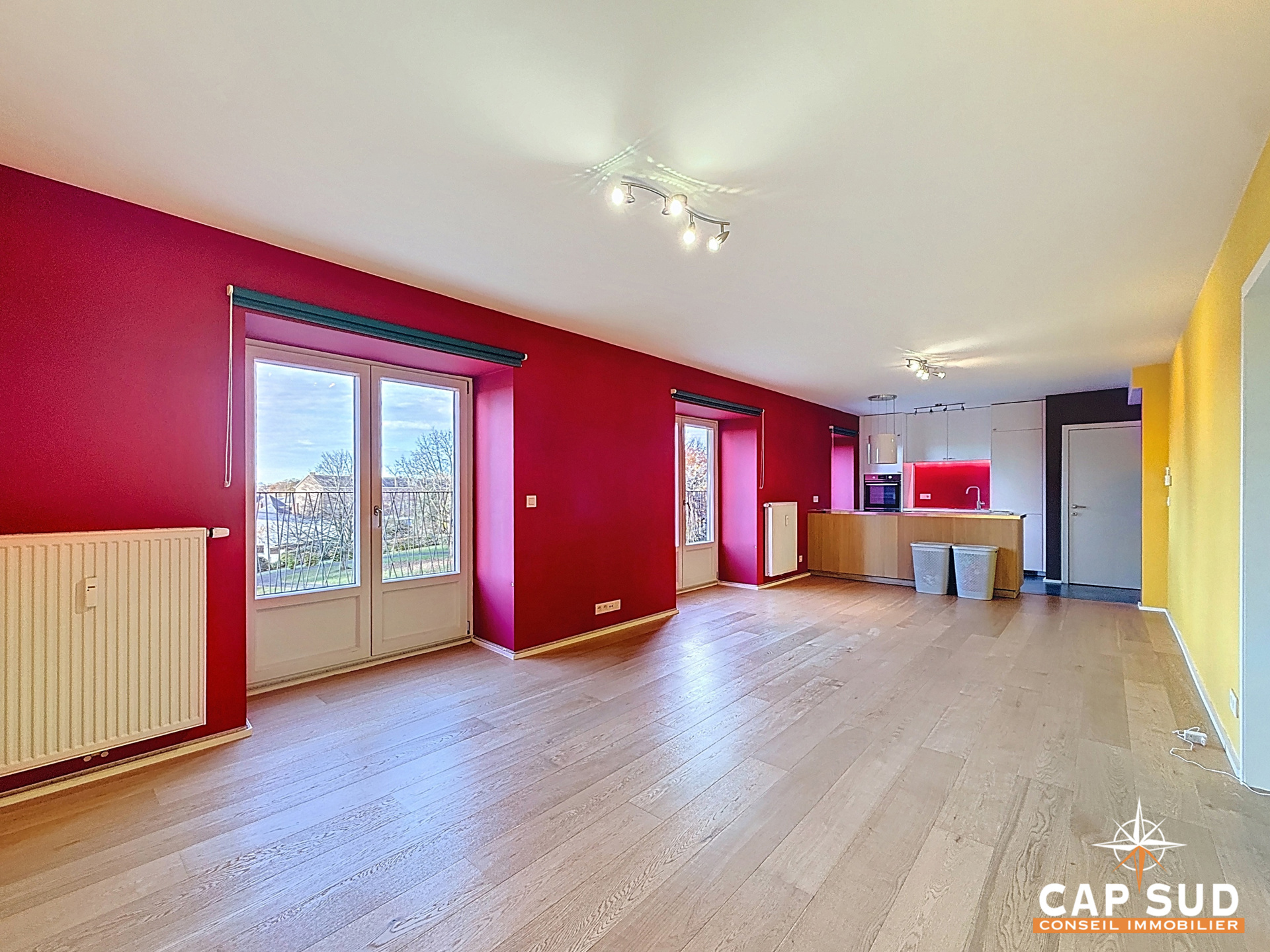 Cap-Sud Namur vous propose ce superbe appartement bénéficiant d’une vue sur la Citadelle. Situé dans un clos très calme de Bouge avec un vaste jardin commun, il offre un cadre de vie agréable et verdoyant à deux pas du centre de Namur. Cet appartement lumineux se compose d’un hall d’entrée, d’une cuisine équipée ouverte, d’un grand séjour avec parquet, deux chambres, une salle de douche, une buanderie, un wc séparé, une cave (une privée et une commune pour la recharge des vélos électriques) et un parking. L’appartement possède une large terrasse bénéficiant d’une vue sur Namur et sur le jardin commun.