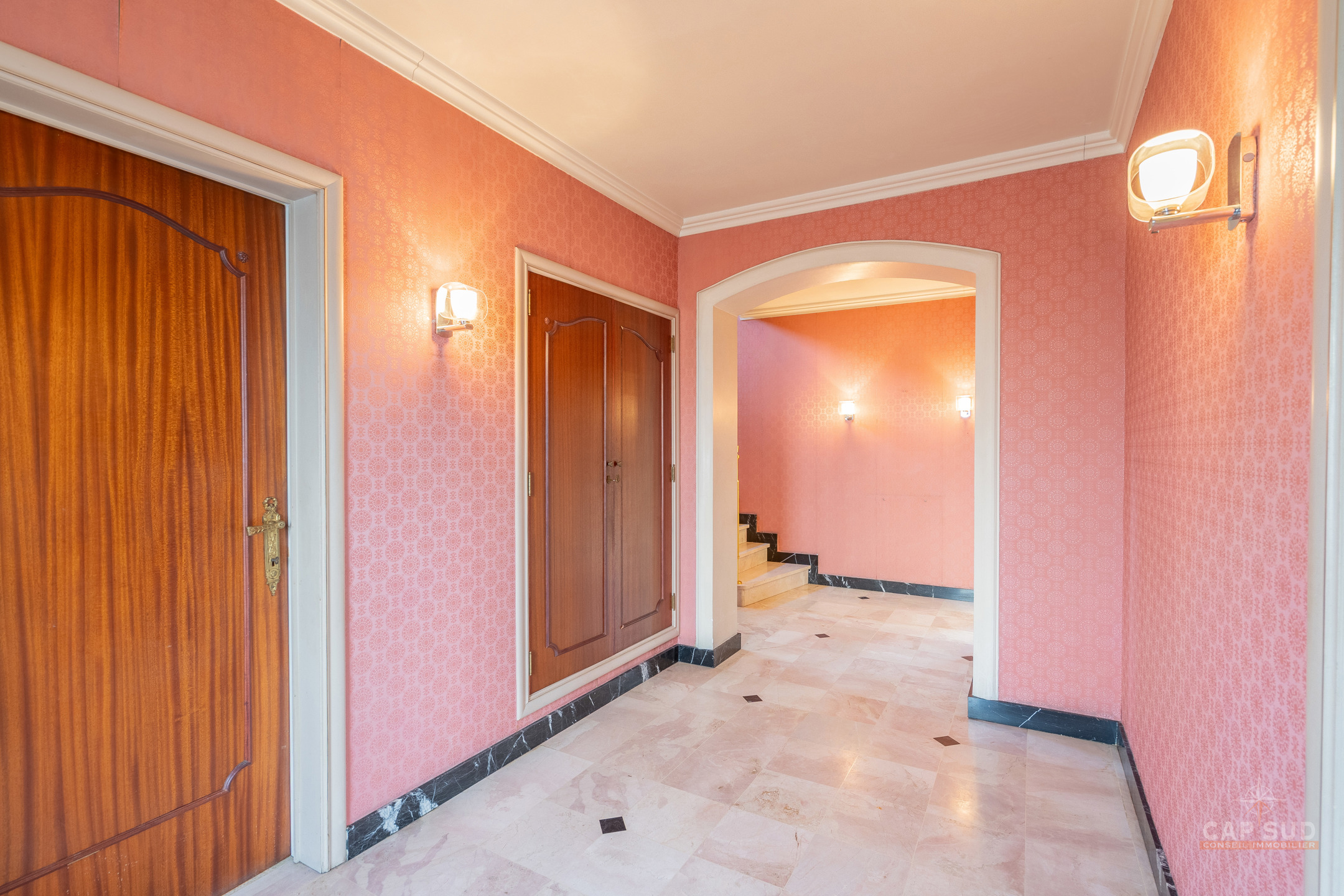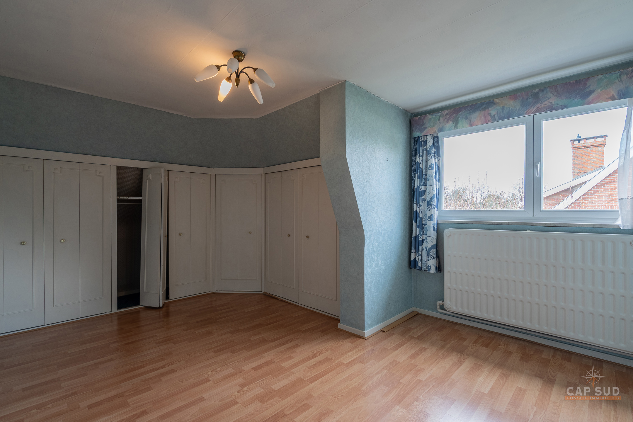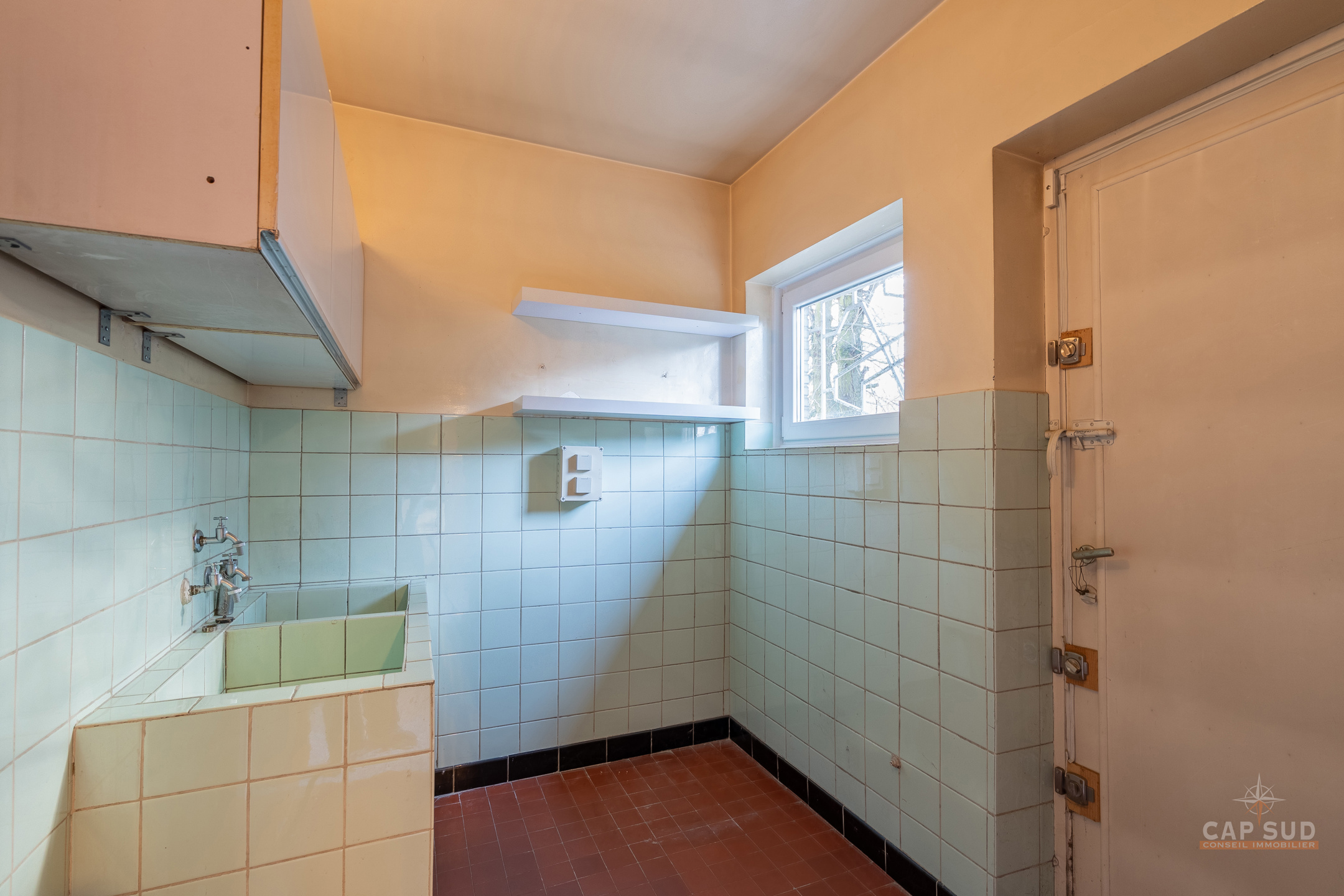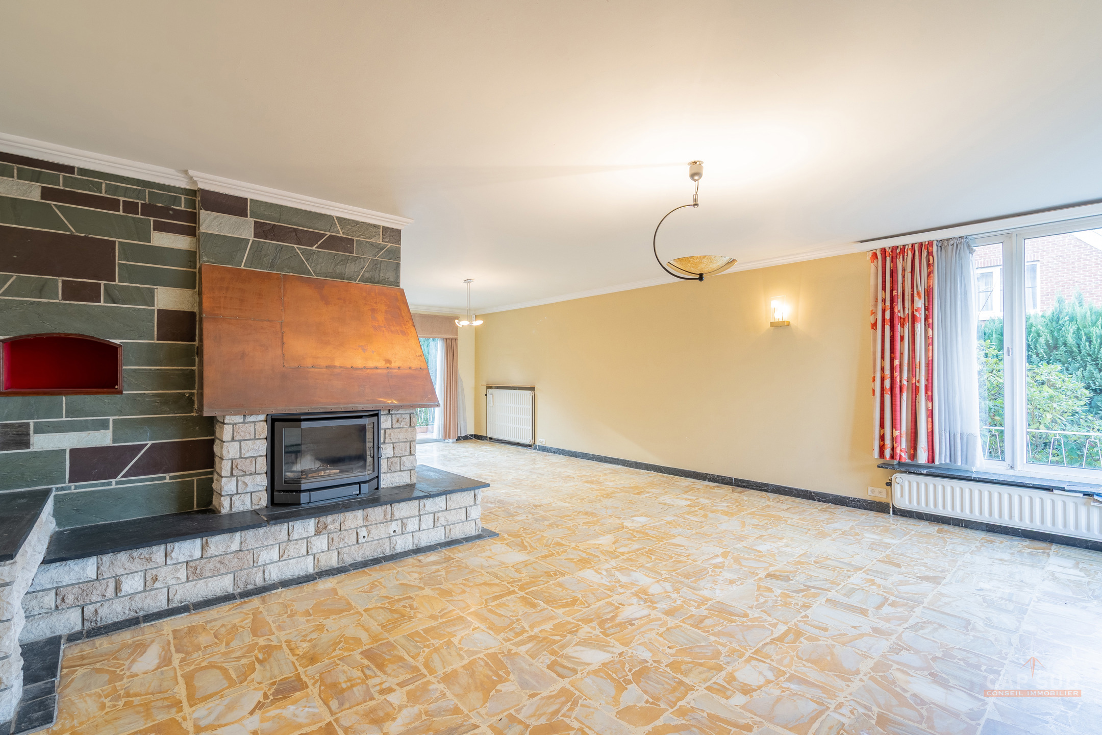Waterloo – Quartier VERSAILLES – Idéalement située à proximité de toutes facilités (transports, écoles, commerces), CAP SUD vous propose cette grande villa familiale A RENOVER de 420m2 (dont 220m2 habitables actuellement) sise sur un terrain de 6,61ares orienté Ouest. Vous trouverez au rez-de-chaussée, un vaste hall d’entrée avec toutes ses commodités, un lumineux living de 47m2 avec feu ouvert (K7), un bureau (ou chambre) de 14m2, une cuisine équipée de 12m2 donnant sur le jardin, une arrière cuisine ainsi qu’une buanderie. Au 1er étage, le hall de nuit dessert 3 belles chambres de 23, 20 et 16m2, une salle de bains de 12m2 et un grenier (possibilité chambre) de 15m2. Au 2ème étage, il y a un grand grenier aménageable de 50m2 sous pentes. Toute la villa est sous caves et garage (2 voitures) pour une superficie totale de 130m2. Terrasse arrière de 50m2 donnant sur le jardin sans vis-à-vis. NOUVELLE toiture (et isolation) de 2015, châssis en PVC de 2011, NOUVELLE chaudière Vaillant de 2020, PEB C : 234kWh/an.m2, système d’alarme, volets automatiques, adoucisseur, parking extérieur… Vous recherchez de grands espaces? Venez la découvrir rapidement !