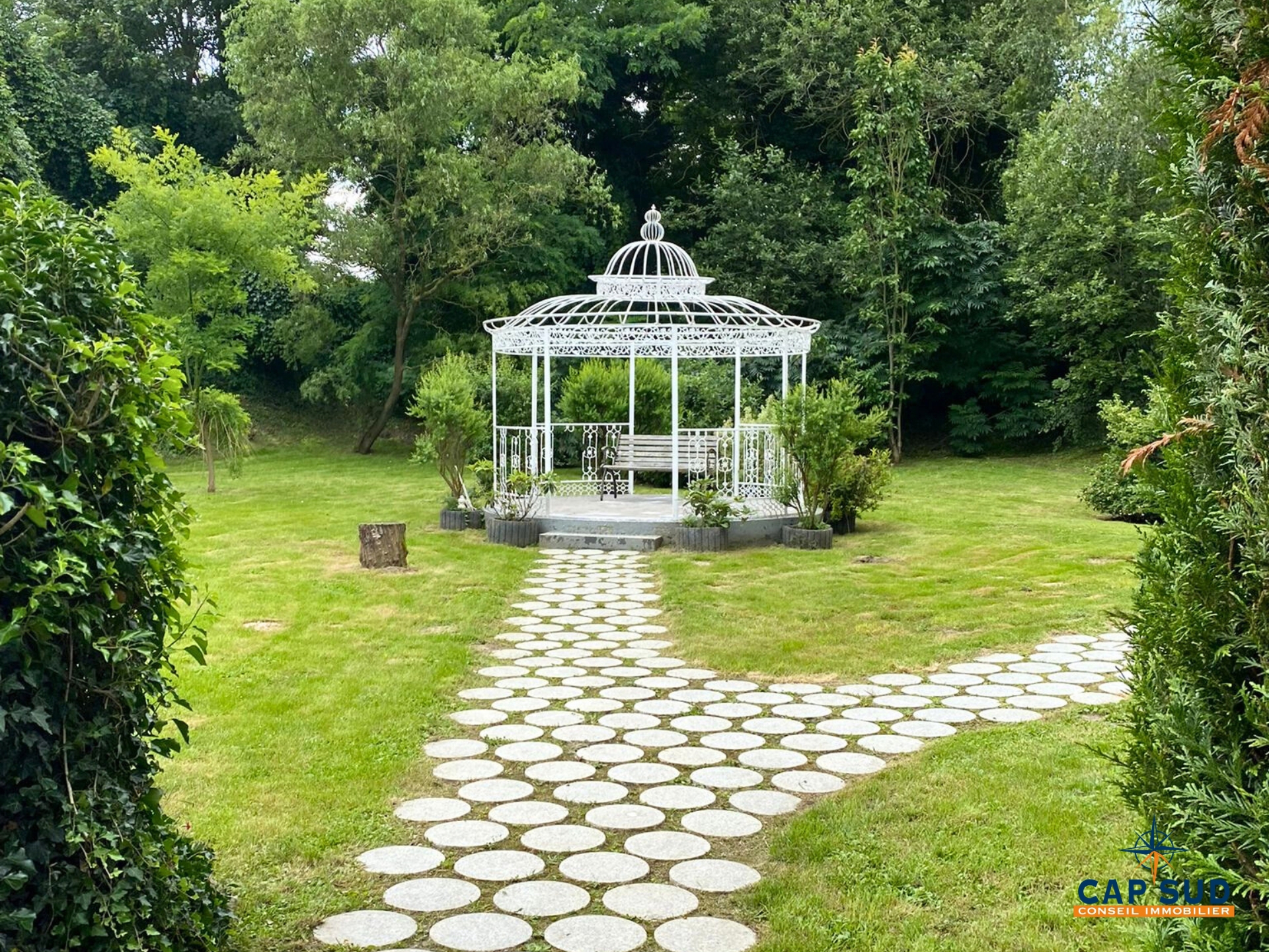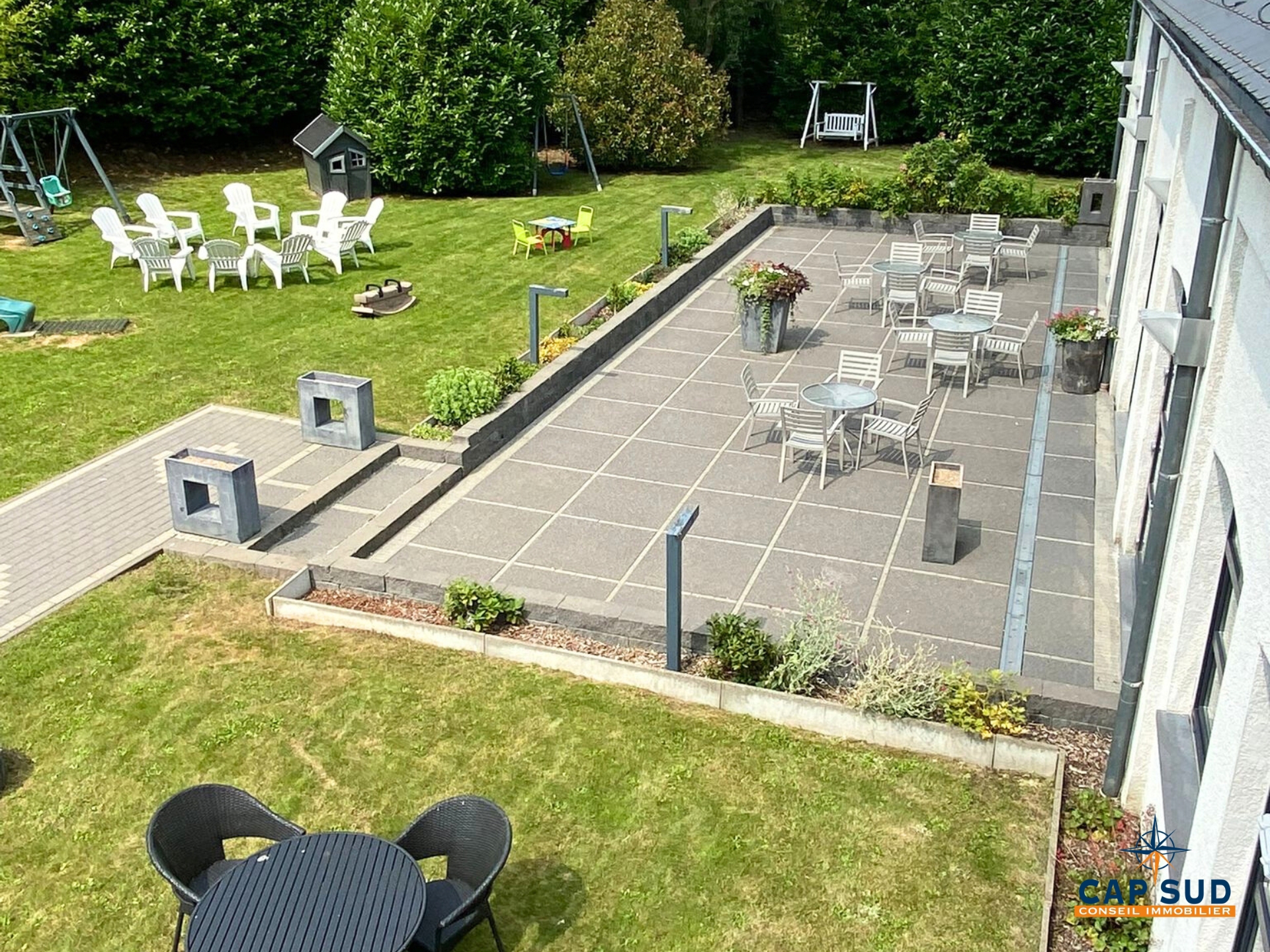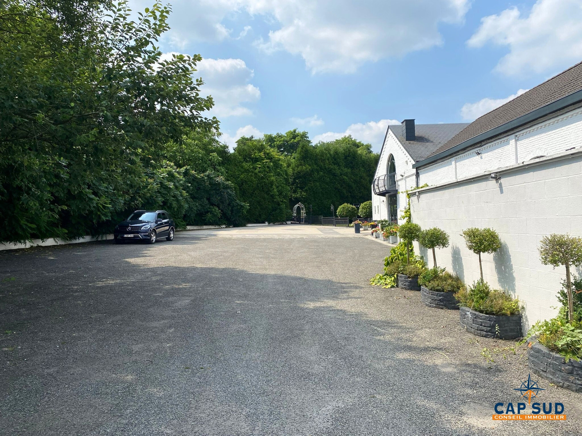 Les espaces extérieurs, soigneusement aménagés, offrent un cadre verdoyant idéal pour cérémonies ou réceptions en plein air.