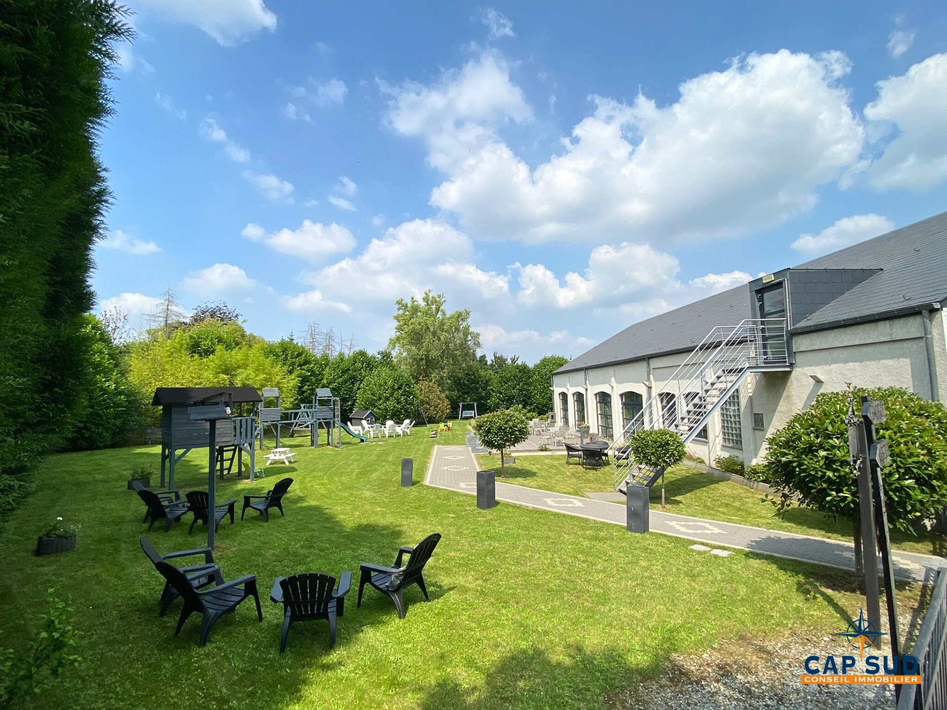 Implantée sur un terrain de plus de 46 ares, cette propriété en excellent état développe une surface utile d’environ 600 m² et séduit par son architecture, ses volumes généreux et son ambiance chaleureuse.